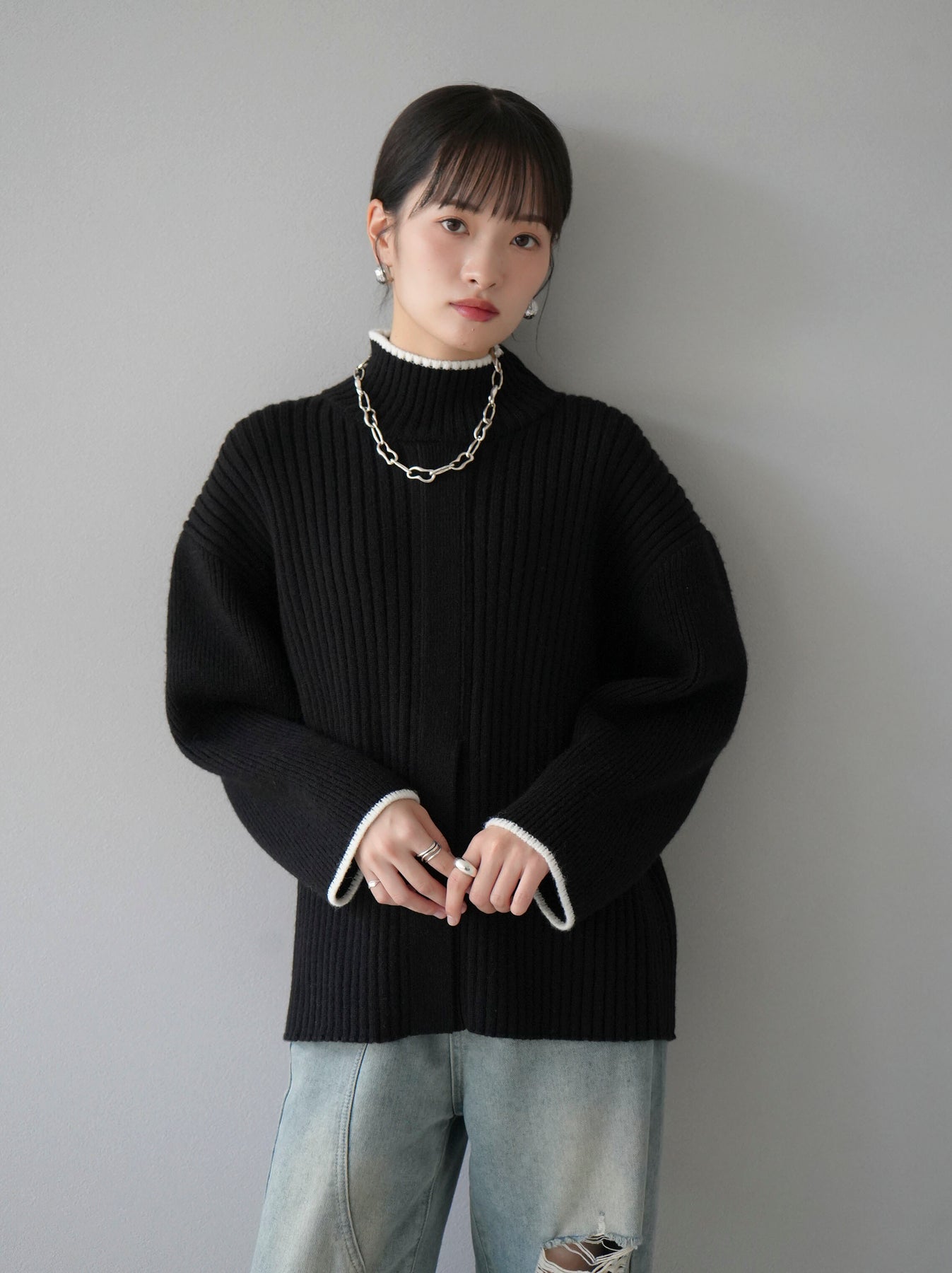 [預訂] 搜尋雙色前開立高領針織衫相關商品 ↓