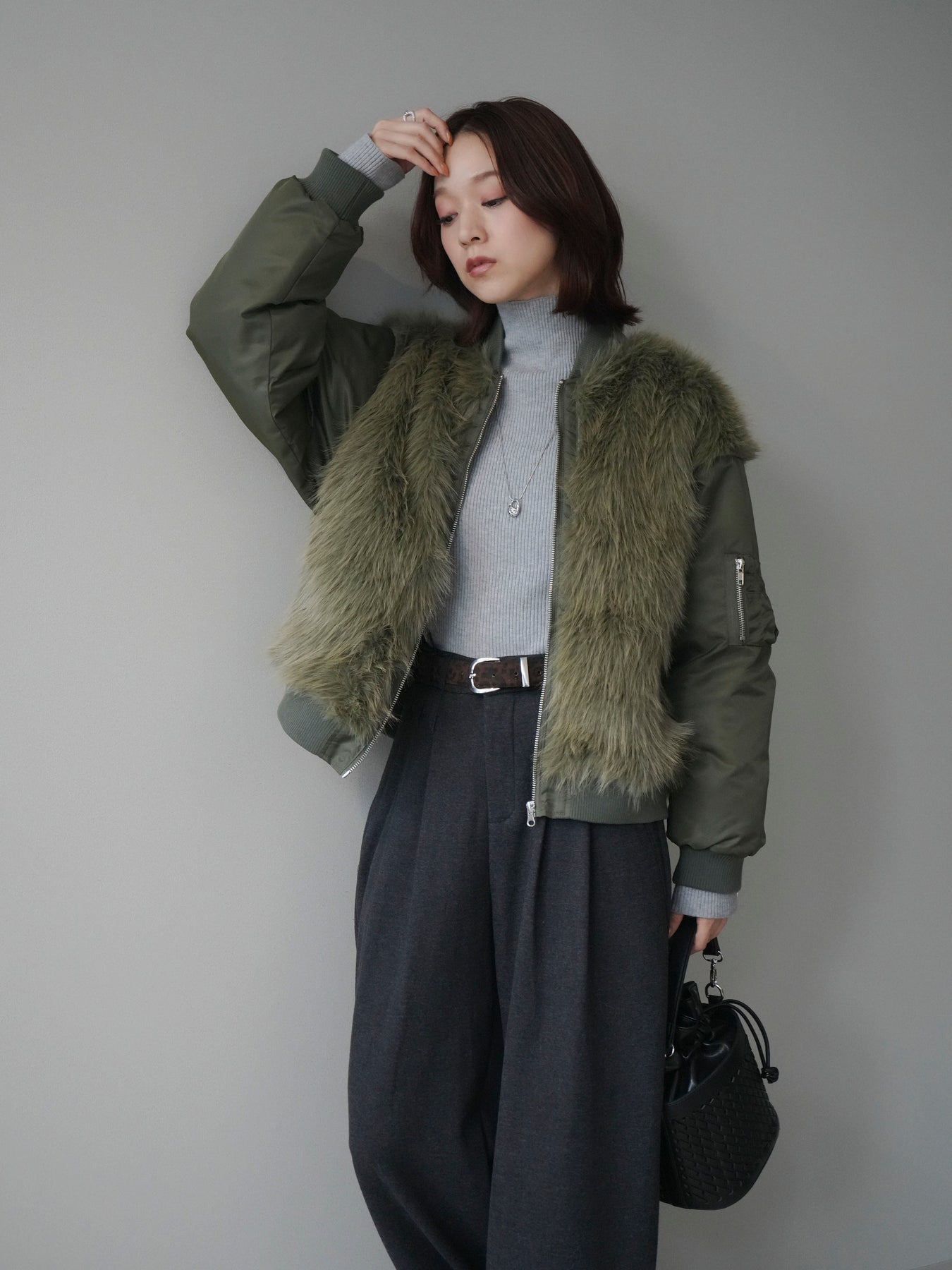 一種人造毛皮組合 MA-1,採用不同的材質進行迷人的組合。 MA-1 典型的大量人造毛皮和軍事細節營造出獨特而時尚的效果。它休閒又引人注目,是秋冬季節完美的外套。 ※除下裝、吊帶背心(內衣)以外的所有商品均不包含內衣。