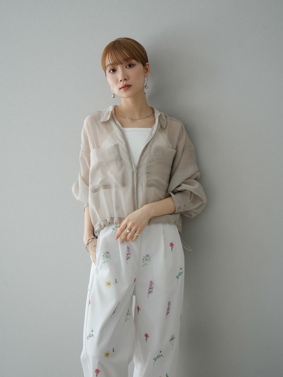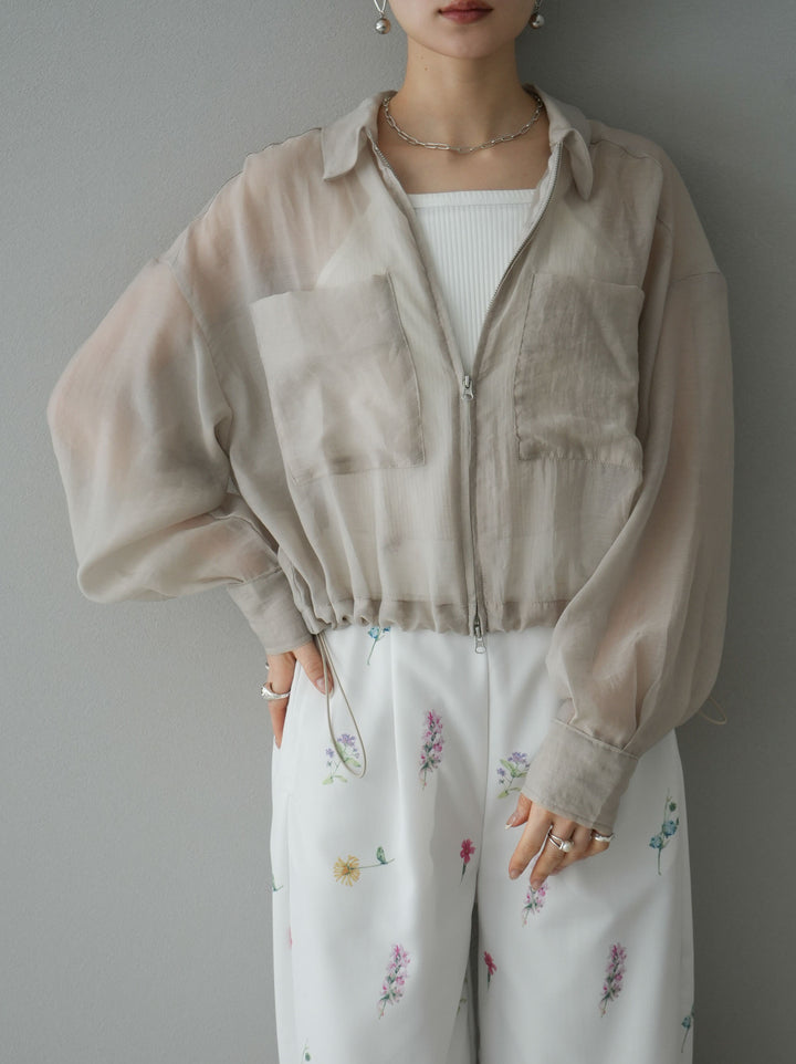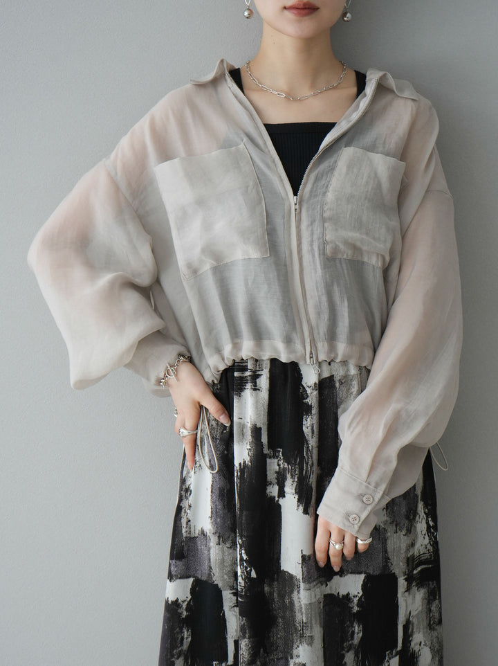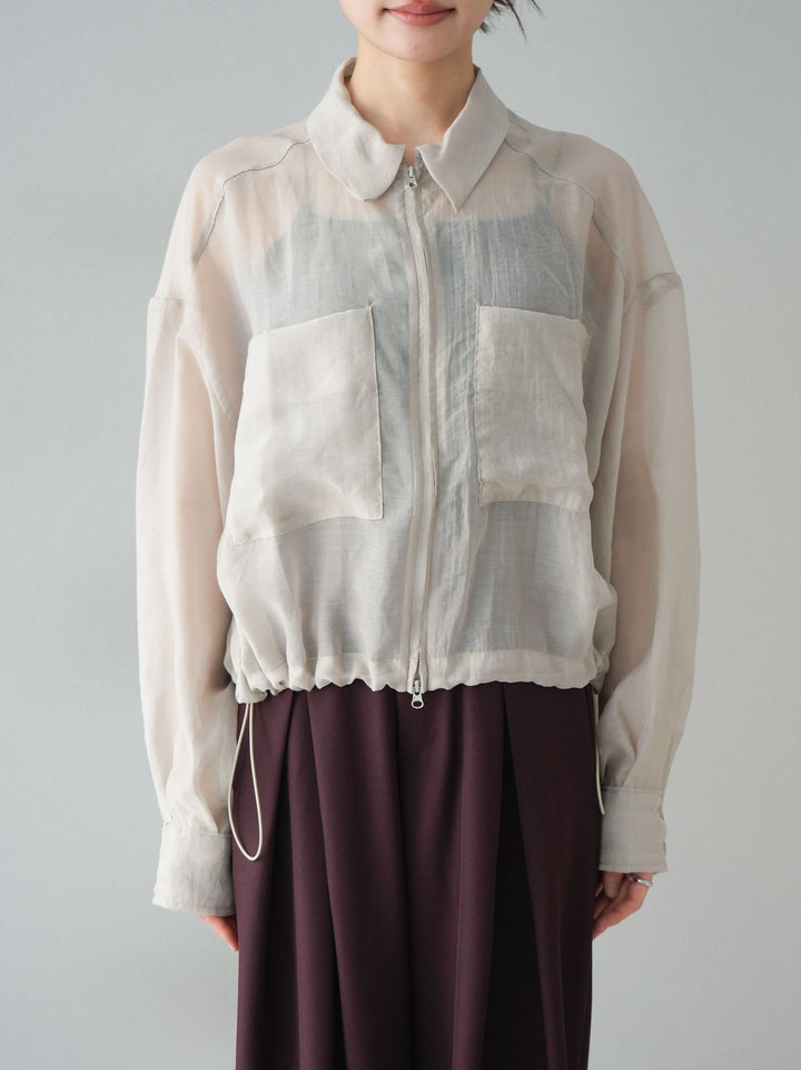 這款輕質拉鍊夾克採用流行的透明材料製成。透明的設計營造出輕鬆的外觀,給人一種休閒而又精緻的印象。下擺的抽繩可讓您調整輪廓,使其適合多種風格。只需將這件衣服套在 T 卹或背心上即可營造出精緻的外觀。 ※除下裝、吊帶背心(內衣)以外的商品均為標準品,不含內衣。