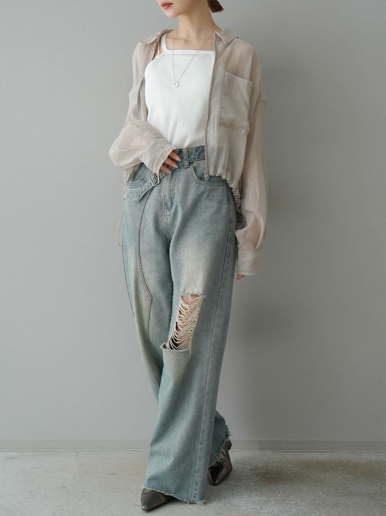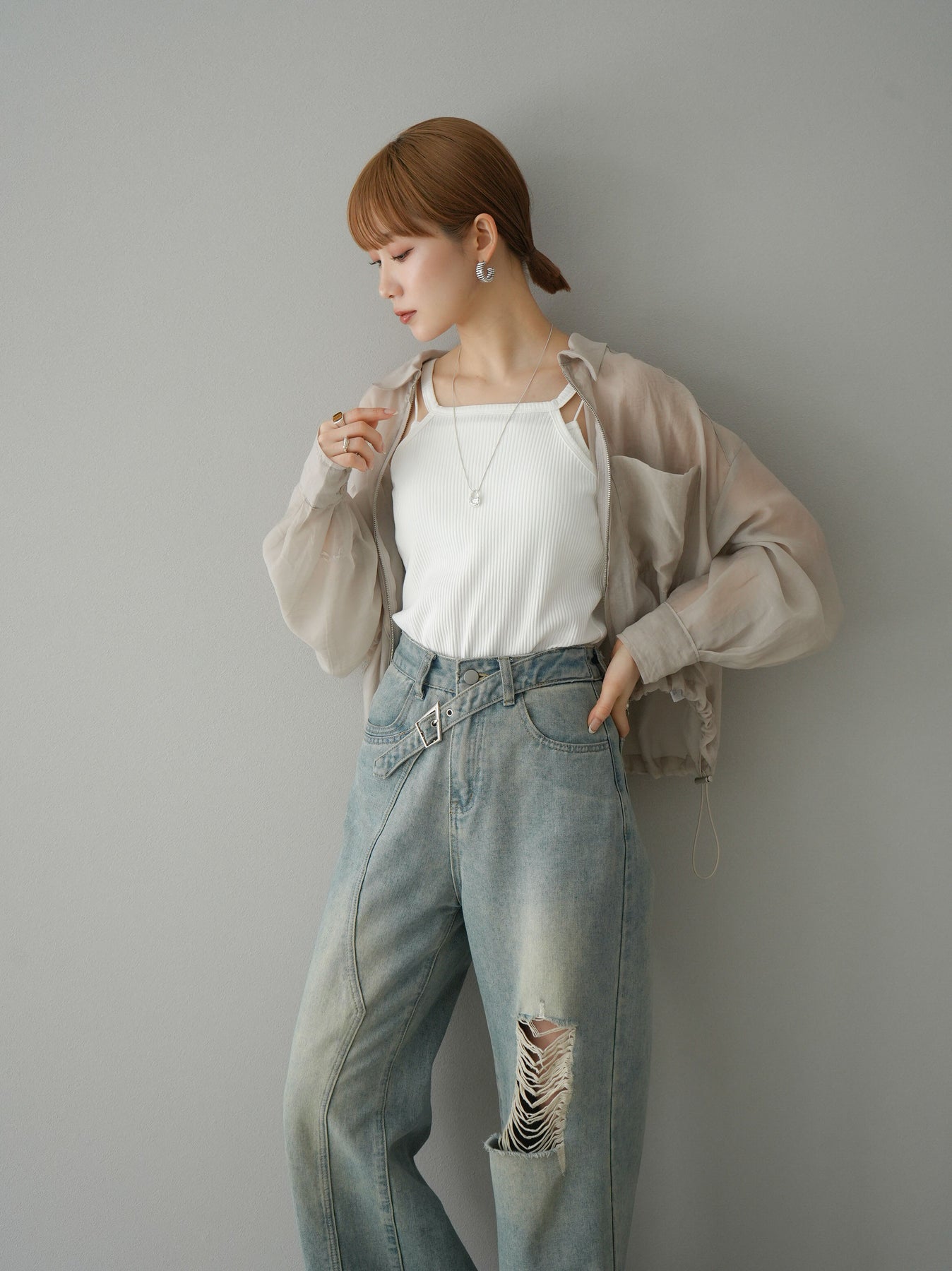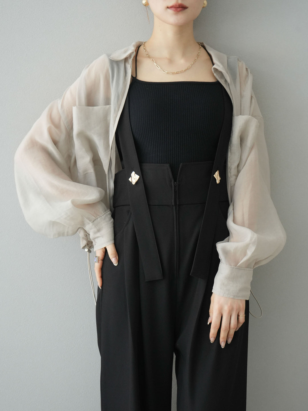這款輕質拉鍊夾克採用流行的透明材料製成。透明的設計營造出輕鬆的外觀,給人一種休閒而又精緻的印象。下擺的抽繩可讓您調整輪廓,使其適合多種風格。只需將這件衣服套在 T 卹或背心上即可營造出精緻的外觀。 ※除下裝、吊帶背心(內衣)以外的商品均為標準品,不含內衣。