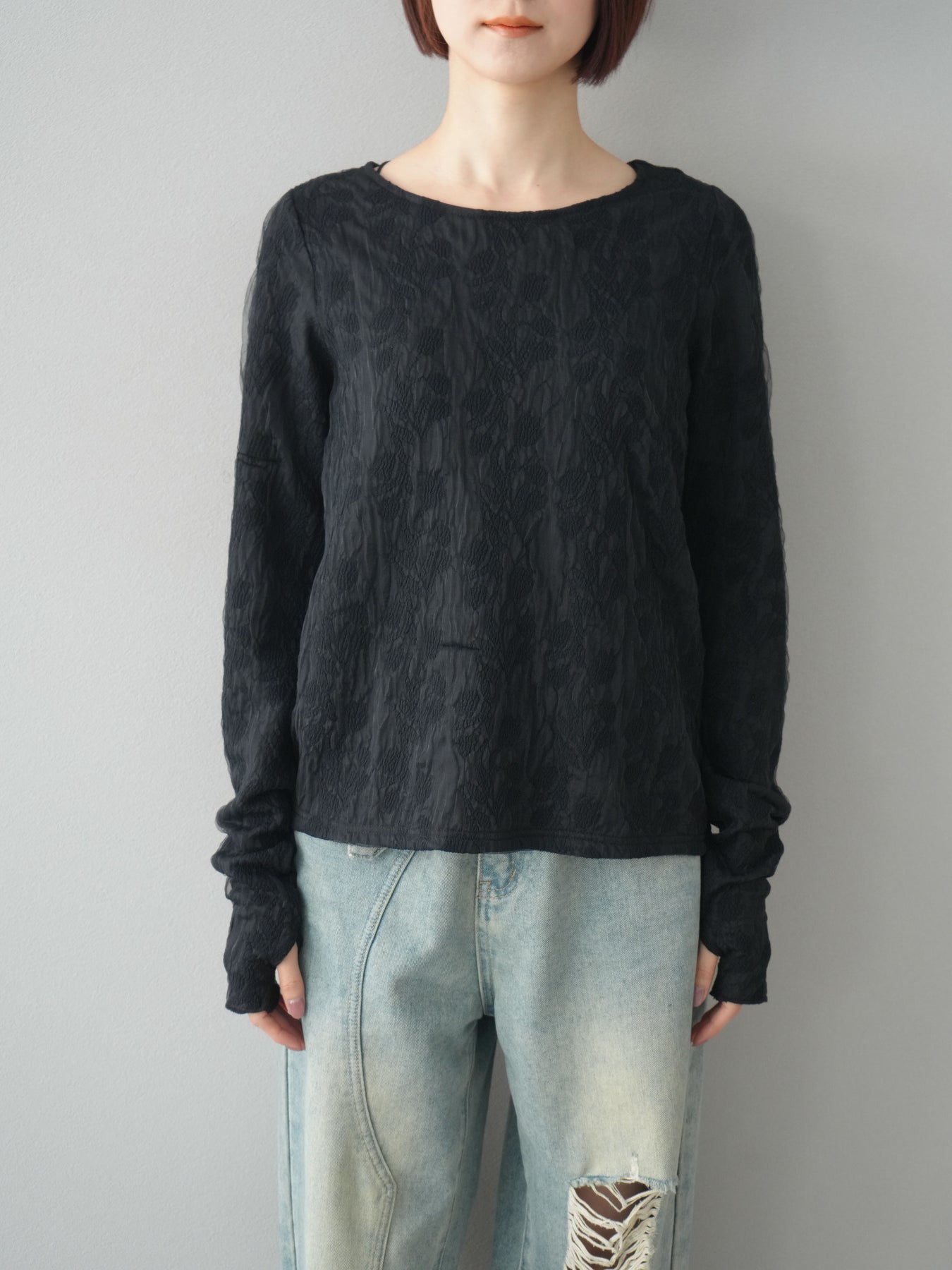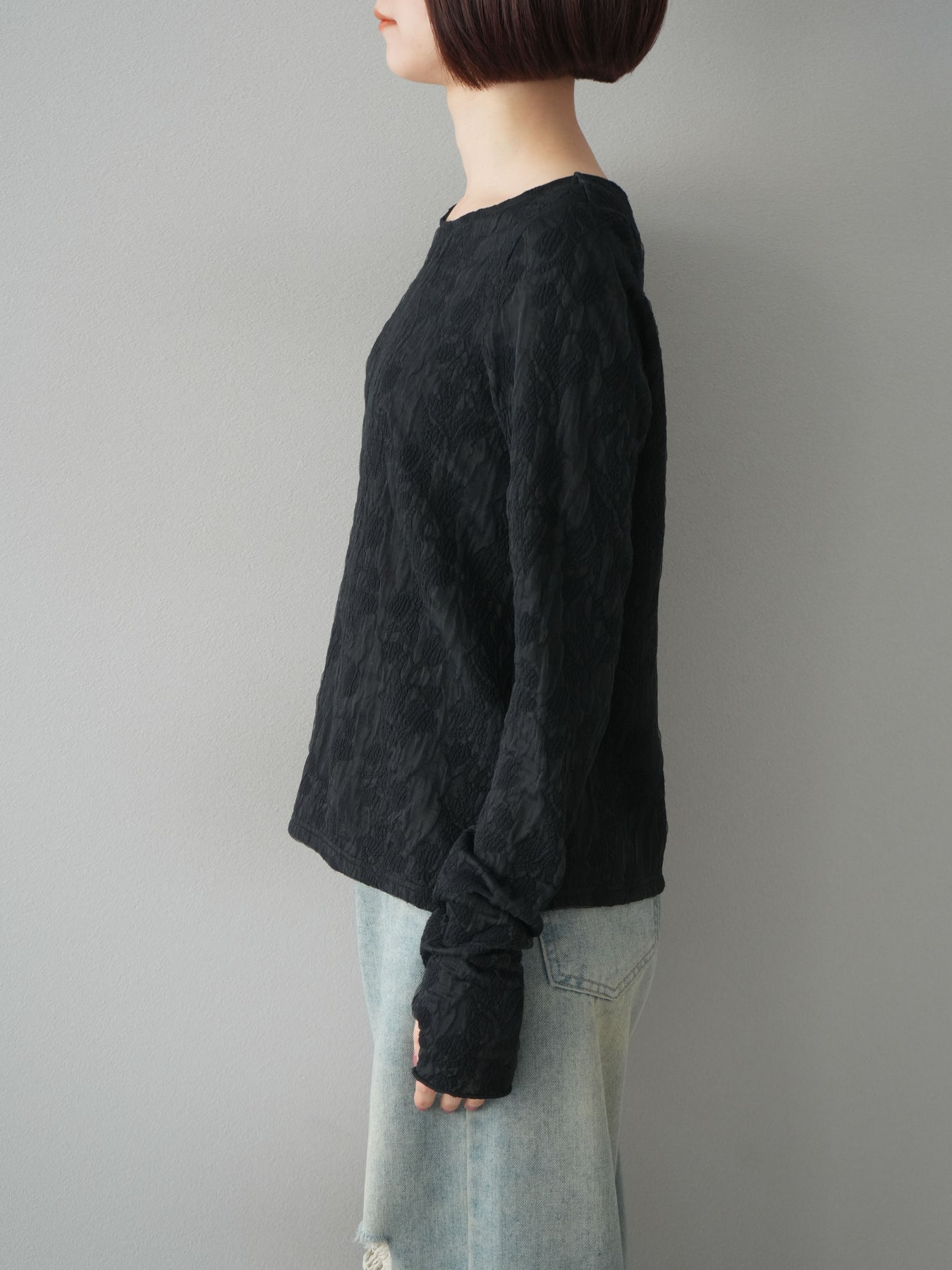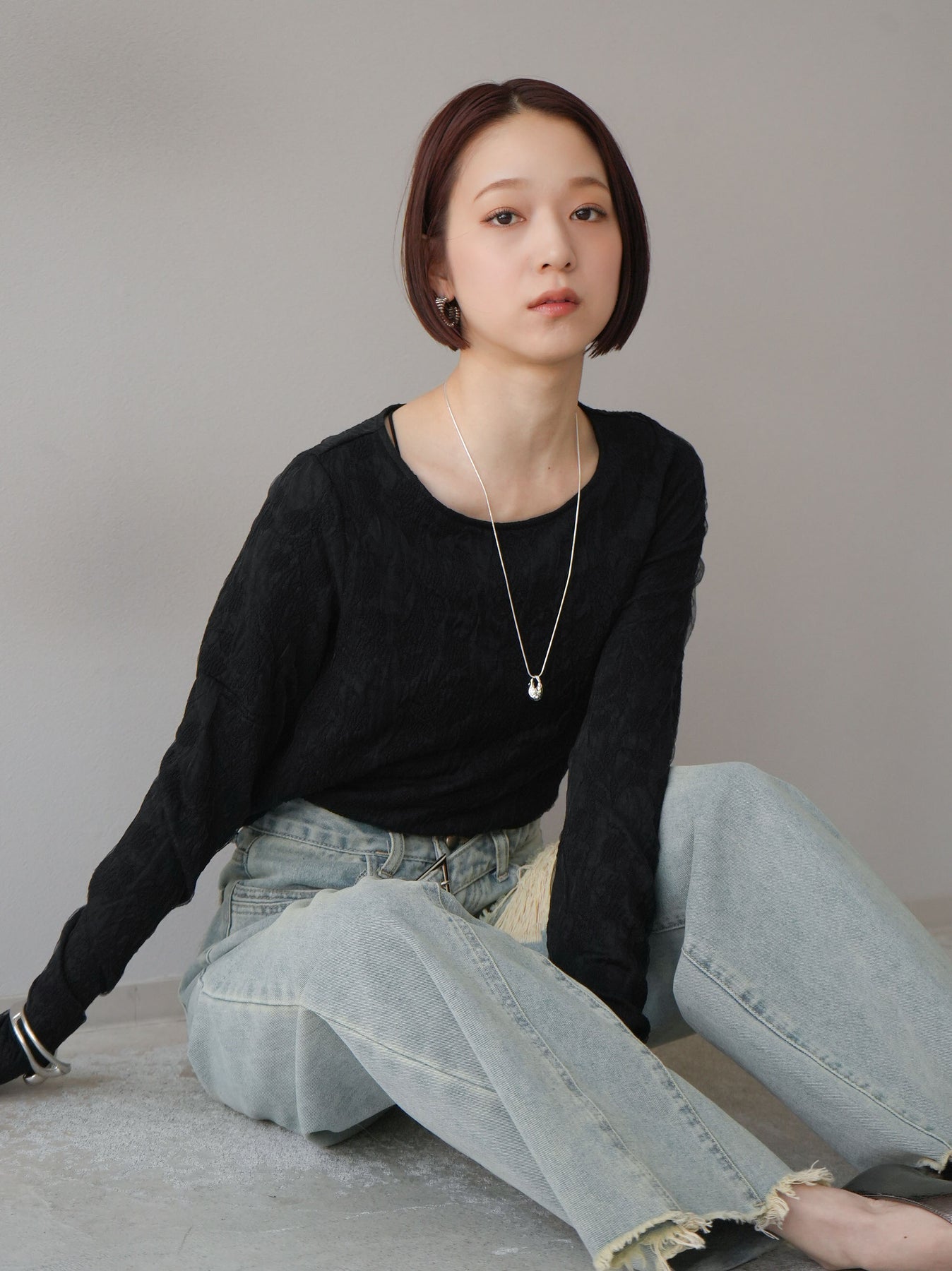 這款上衣採用時尚的雙層紗布提花面料製成。自然的紋理凸顯了精緻的圖案,並具有適度的透明度。寬鬆的輪廓和長袖帶來舒適的穿著體驗。無論是搭配休閒牛仔褲或是充滿女性氣息的半身裙,都能帶來多種造型選擇。也推薦用於疊穿。 ※除下裝、吊帶背心(內衣)以外的商品均為標準品,不含內衣。