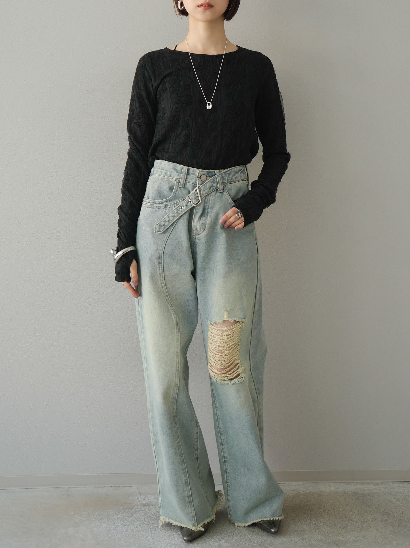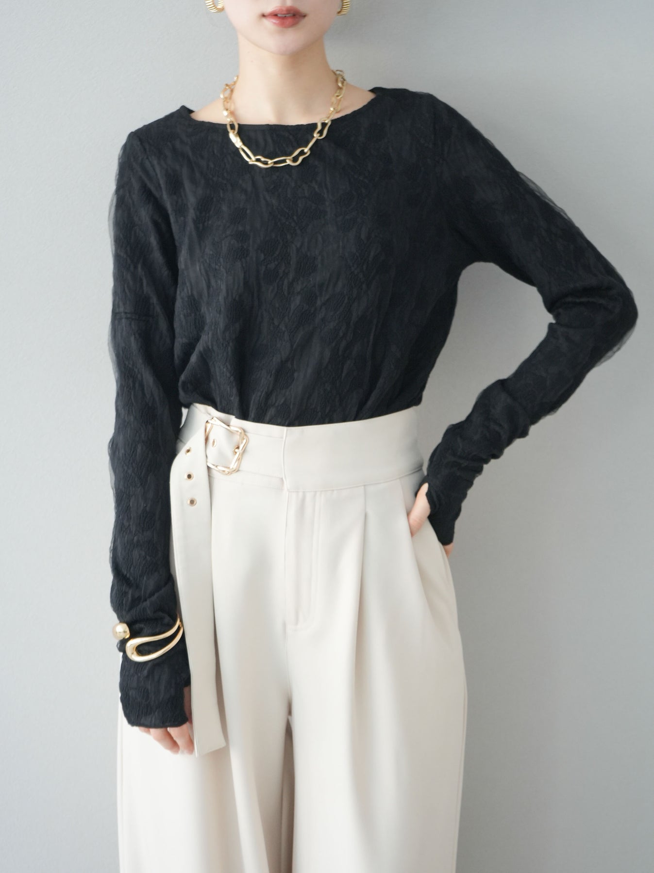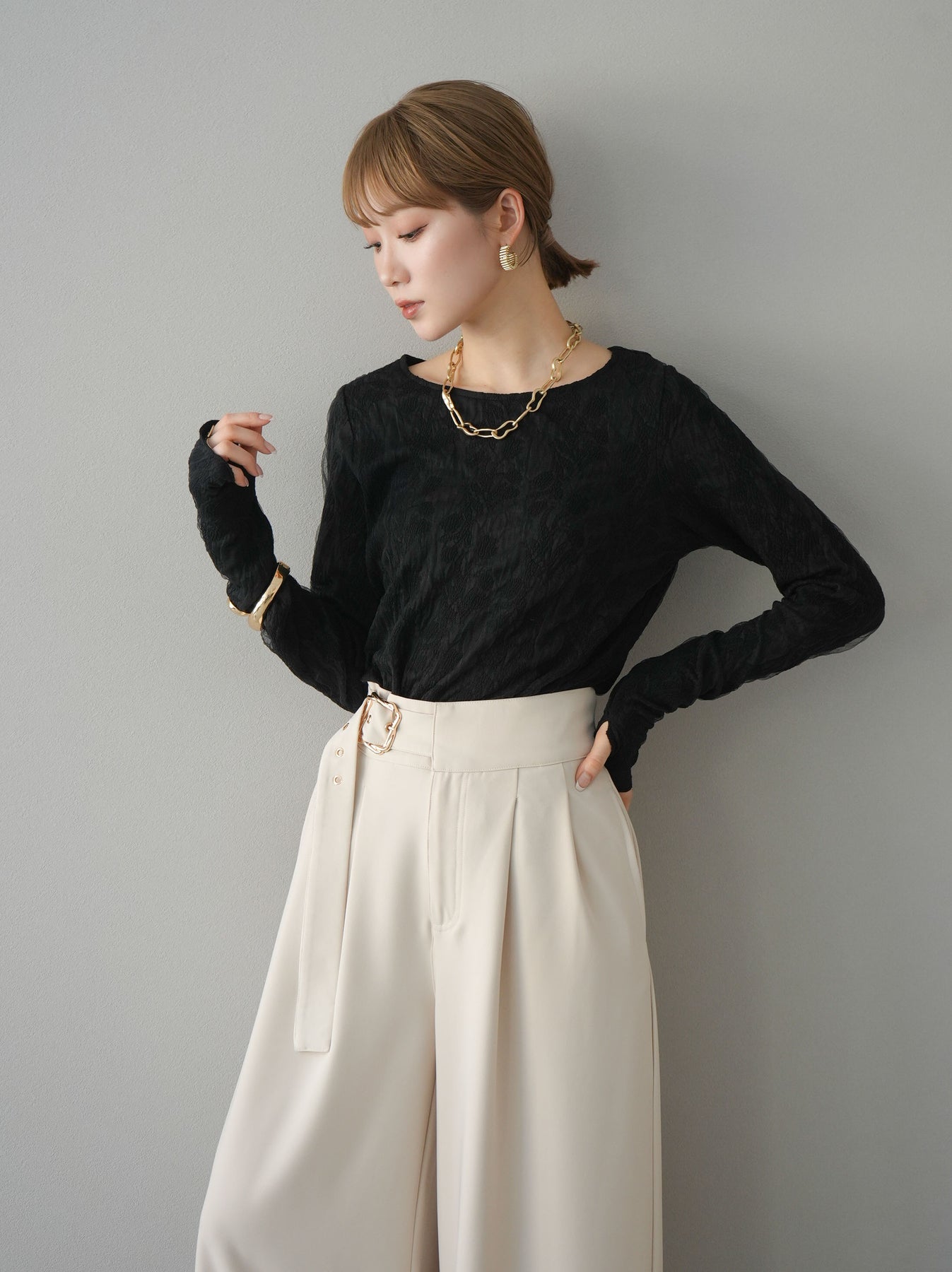 這款上衣採用時尚的雙層紗布提花面料製成。自然的紋理凸顯了精緻的圖案,並具有適度的透明度。寬鬆的輪廓和長袖帶來舒適的穿著體驗。無論是搭配休閒牛仔褲或是充滿女性氣息的半身裙,都能帶來多種造型選擇。也推薦用於疊穿。 ※除下裝、吊帶背心(內衣)以外的商品均為標準品,不含內衣。