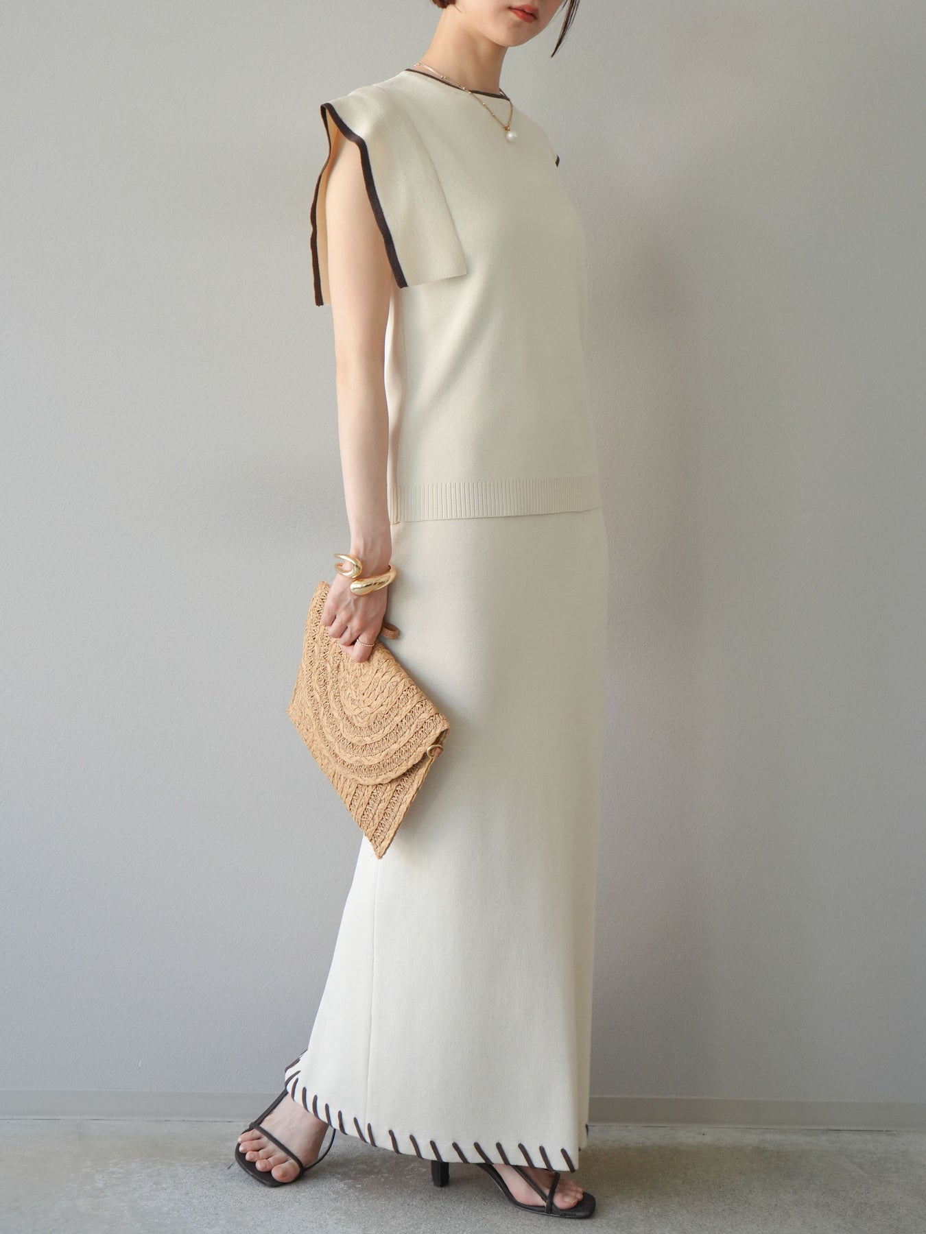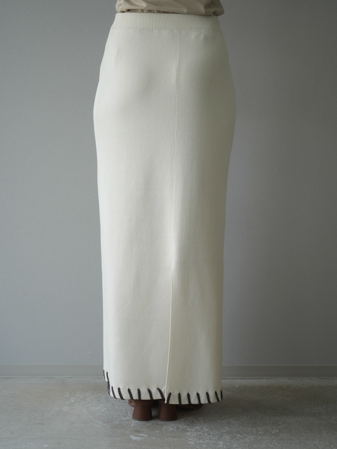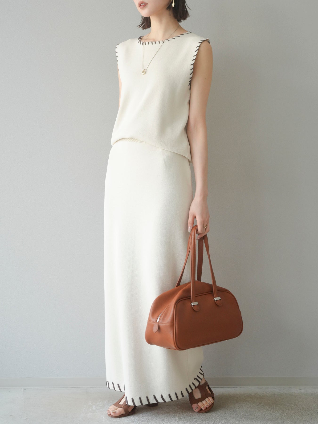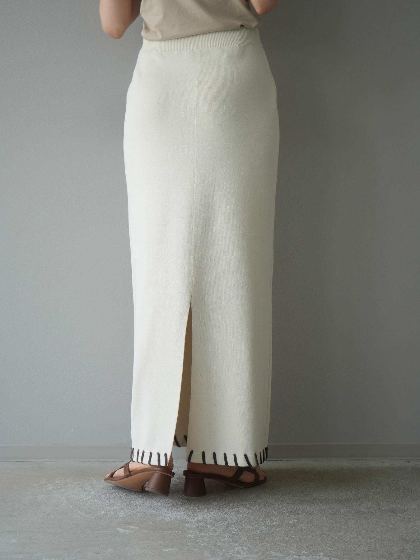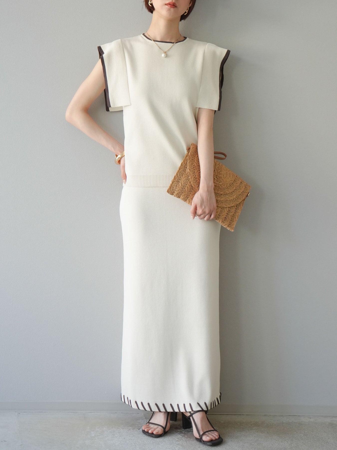 【預購】亞麻質感手縫針織緊身裙/象牙白