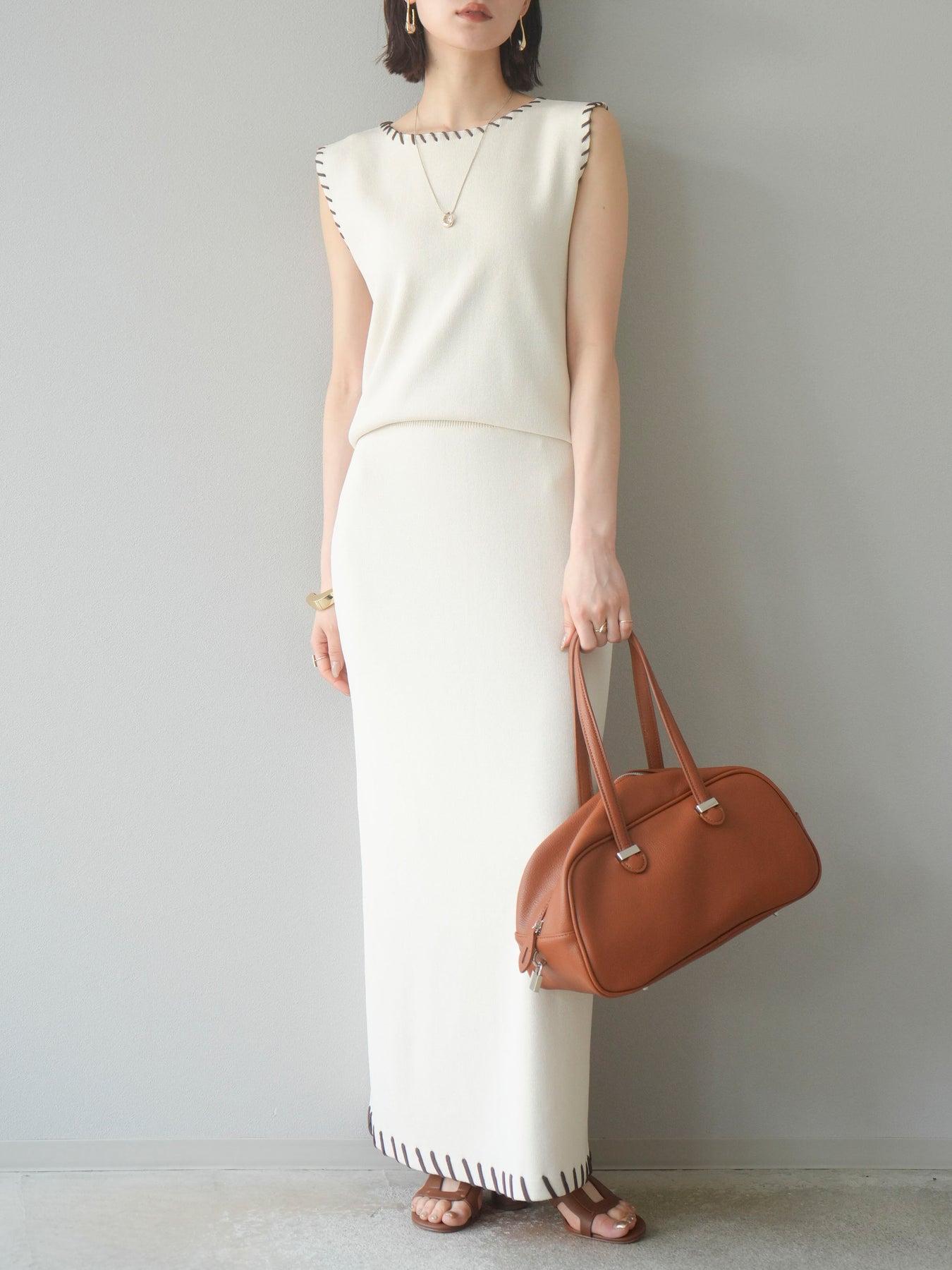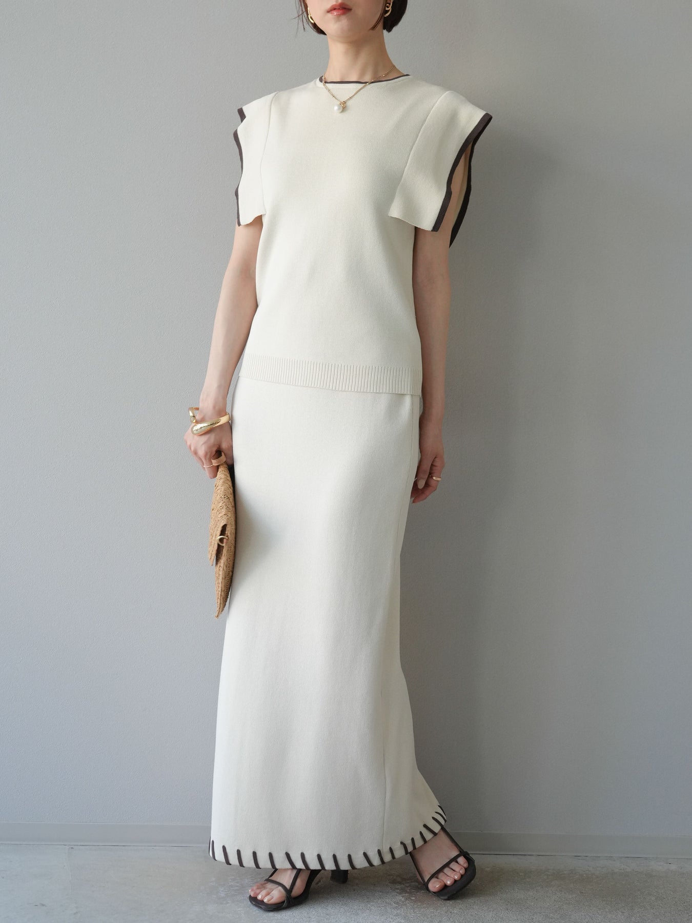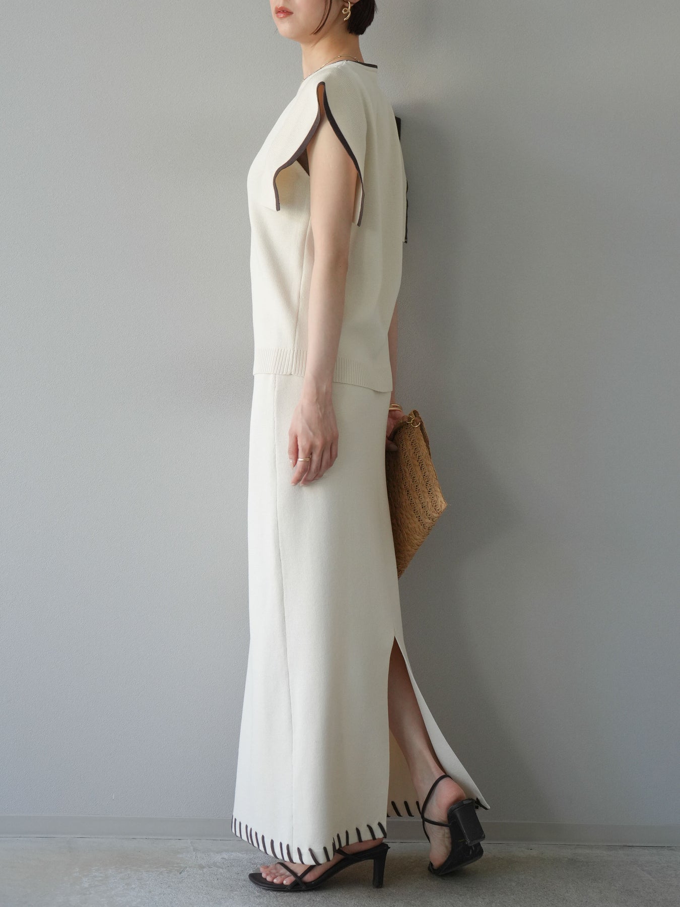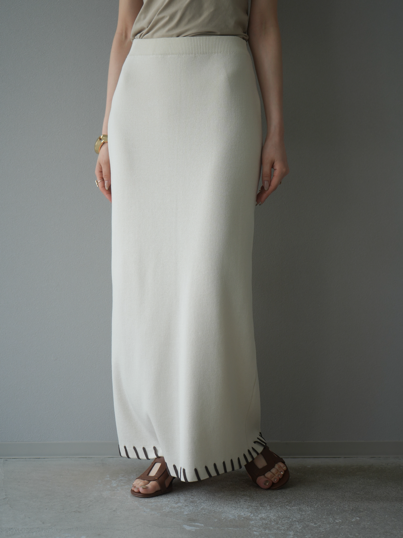 【預購】亞麻質感手縫針織緊身裙/象牙白