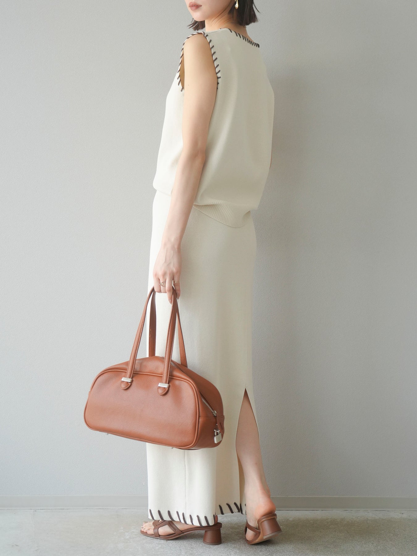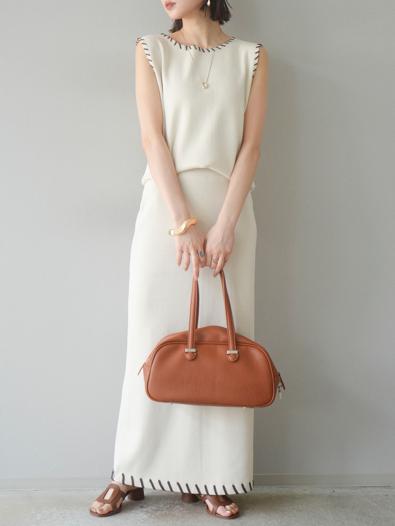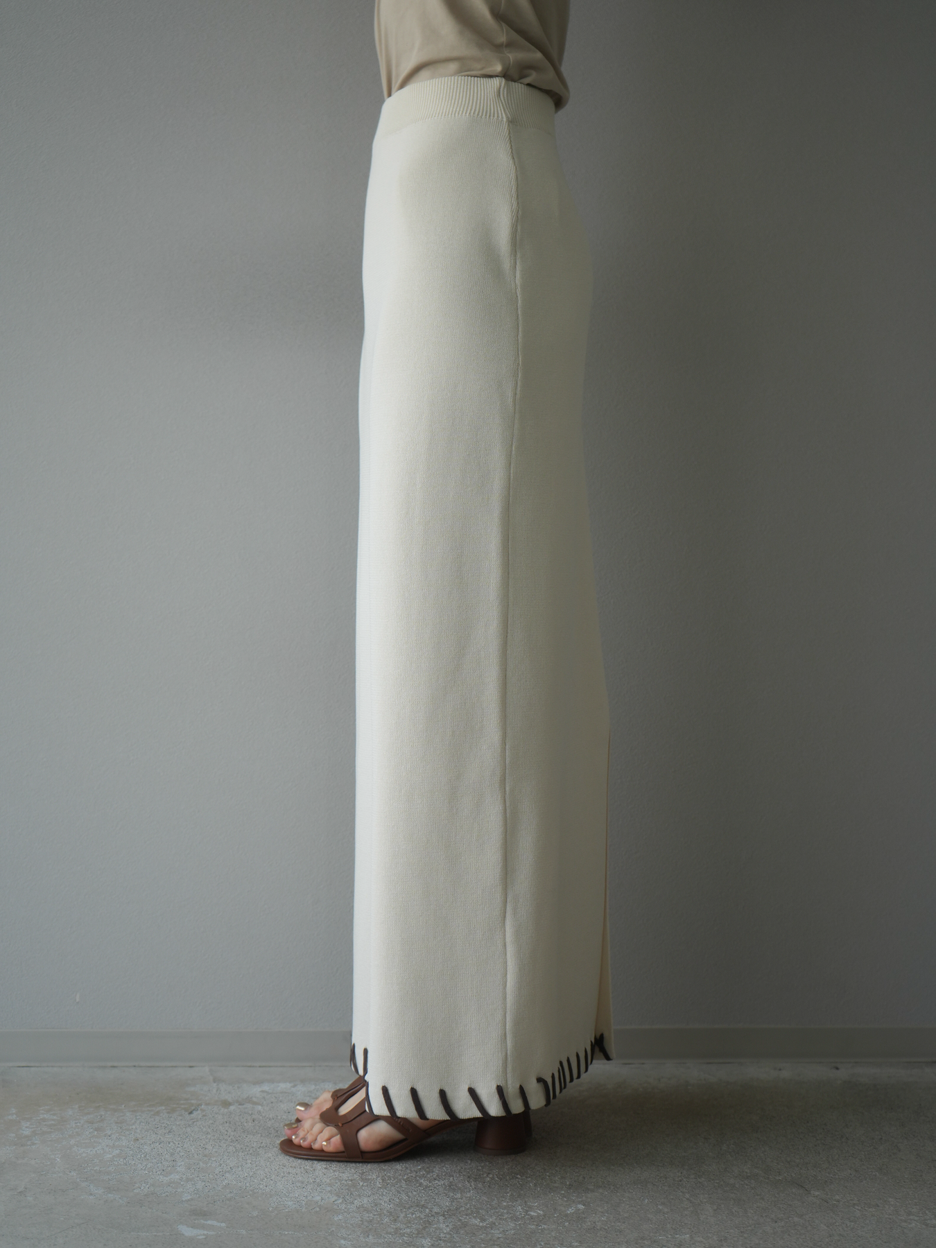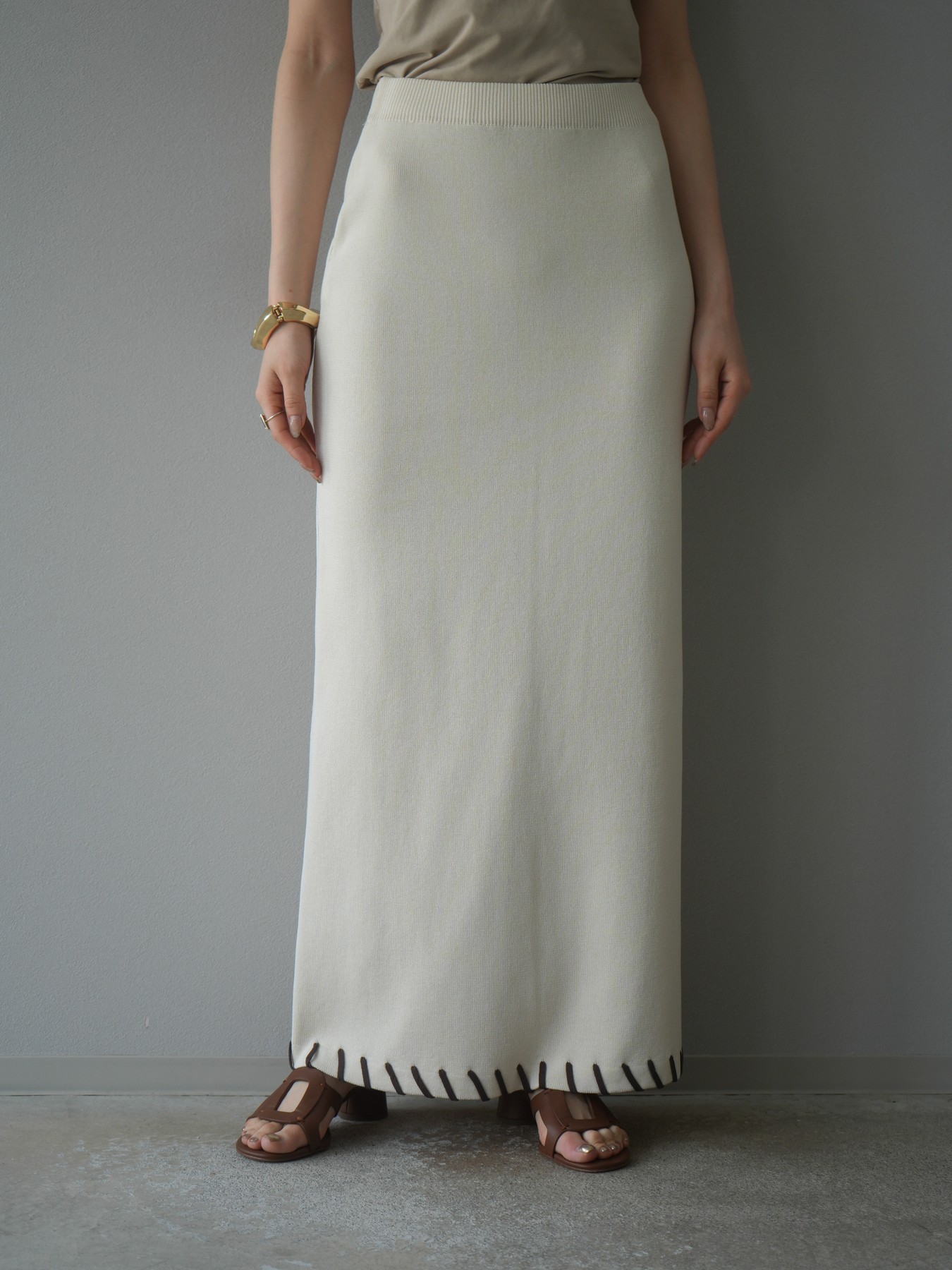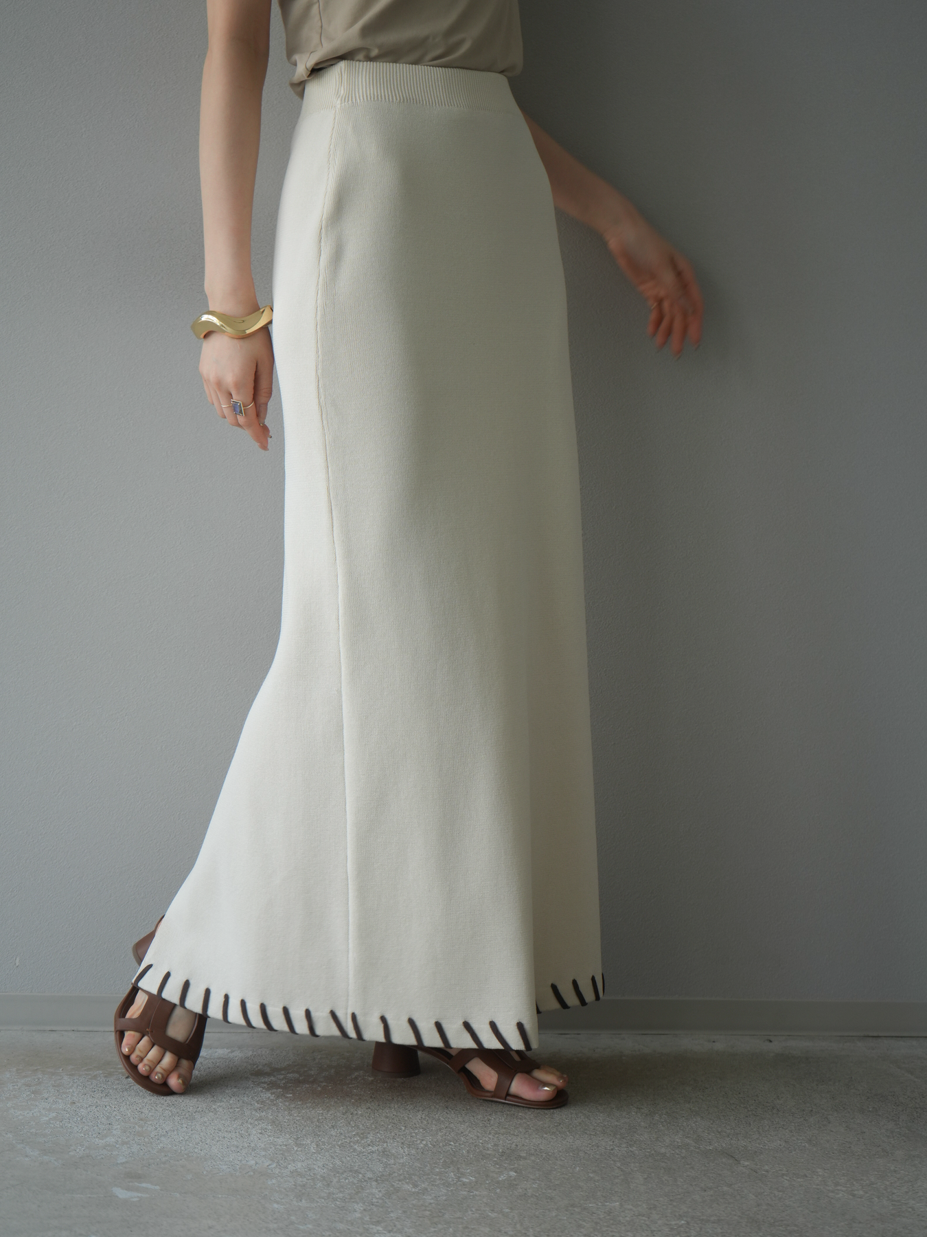 【預購】亞麻質感手縫針織緊身裙/象牙白