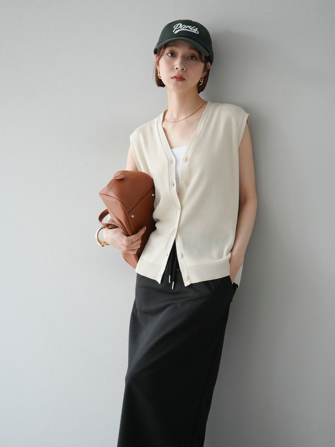 【預購】V領人造絲針織背心/象牙白