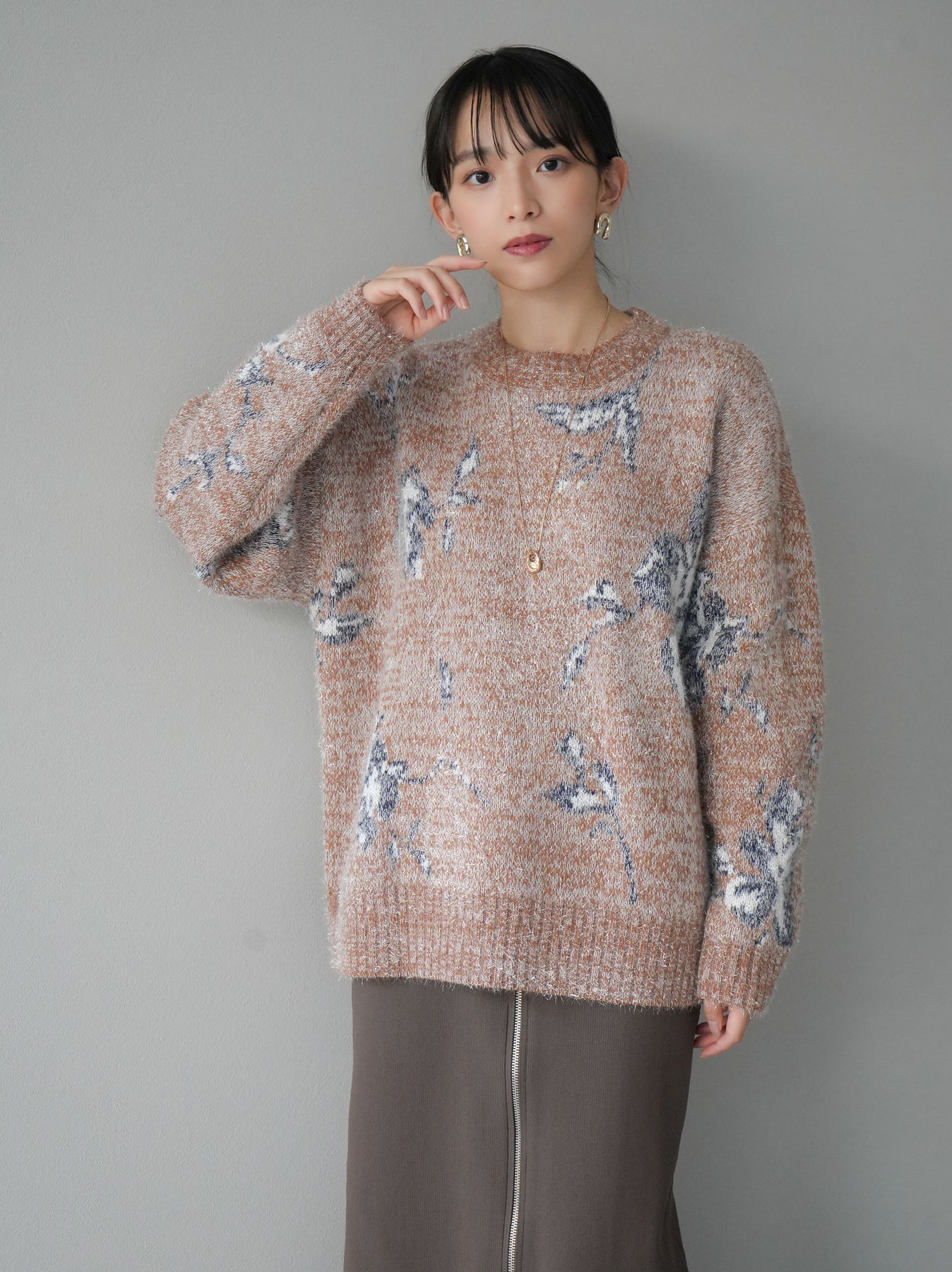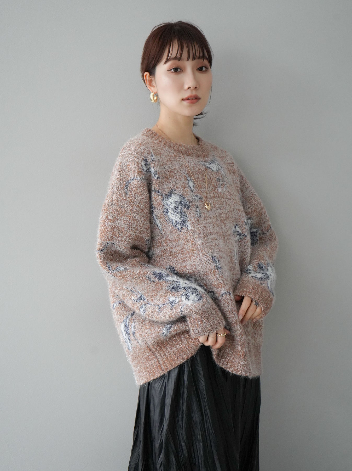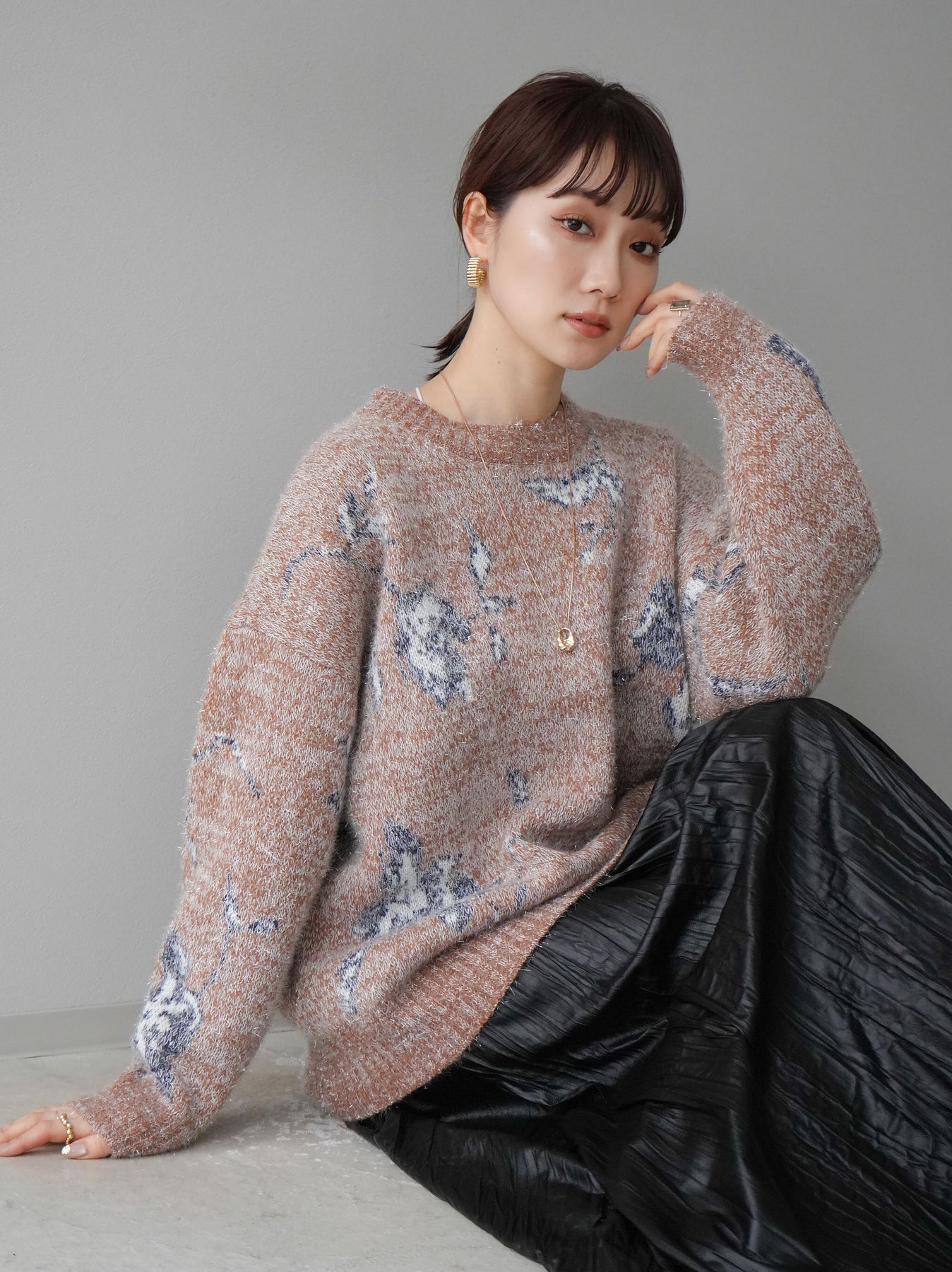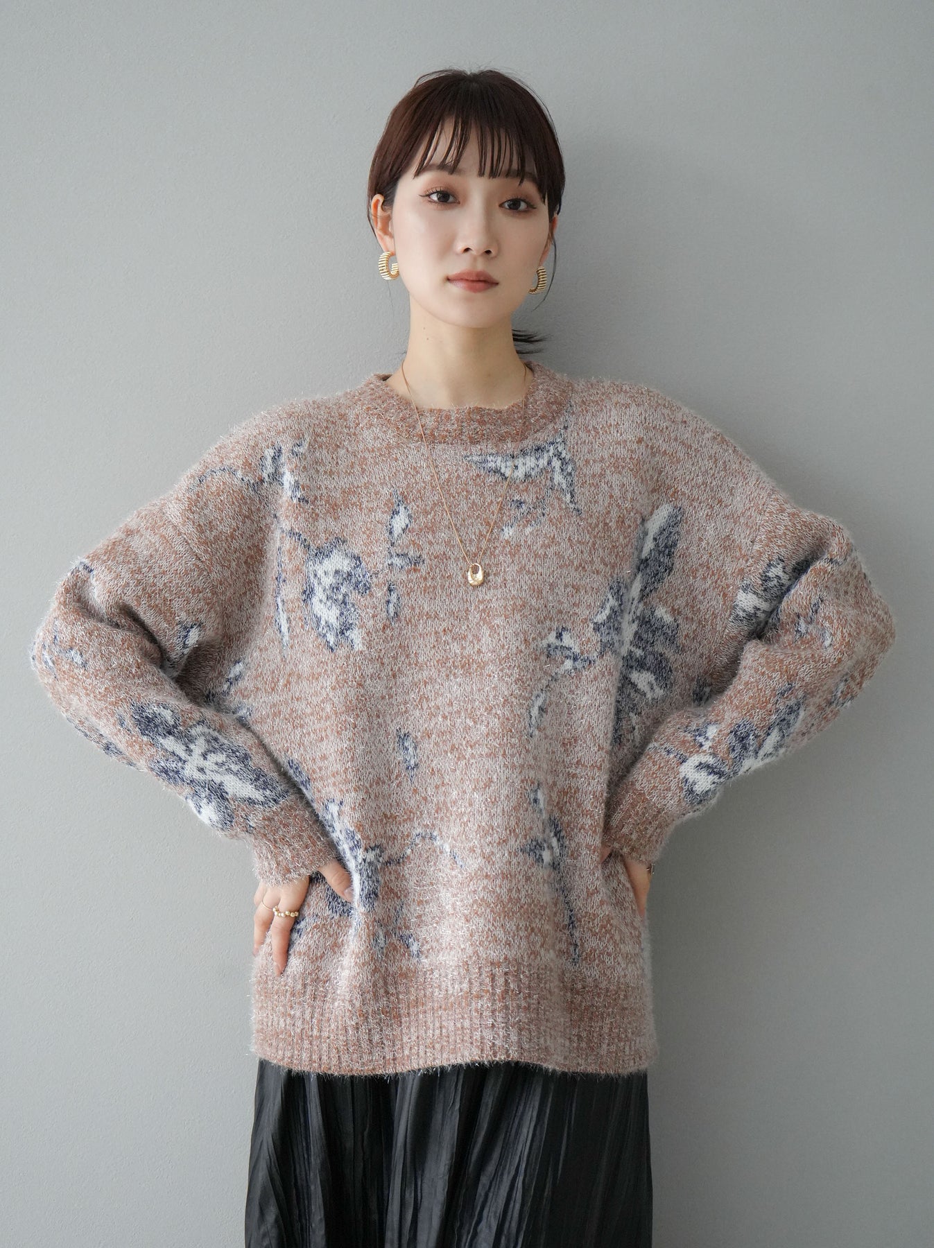 針織套頭衫,採用流行花卉提花和閃亮紗線製成,散發出精緻的光芒。適度寬鬆的輪廓營造出輕鬆的貼身感,同時仍散發出精緻的外觀。這件作品色彩華麗而柔和,適合成人風格。 ※除下裝、吊帶背心(內衣)以外的所有商品均不包含內衣。