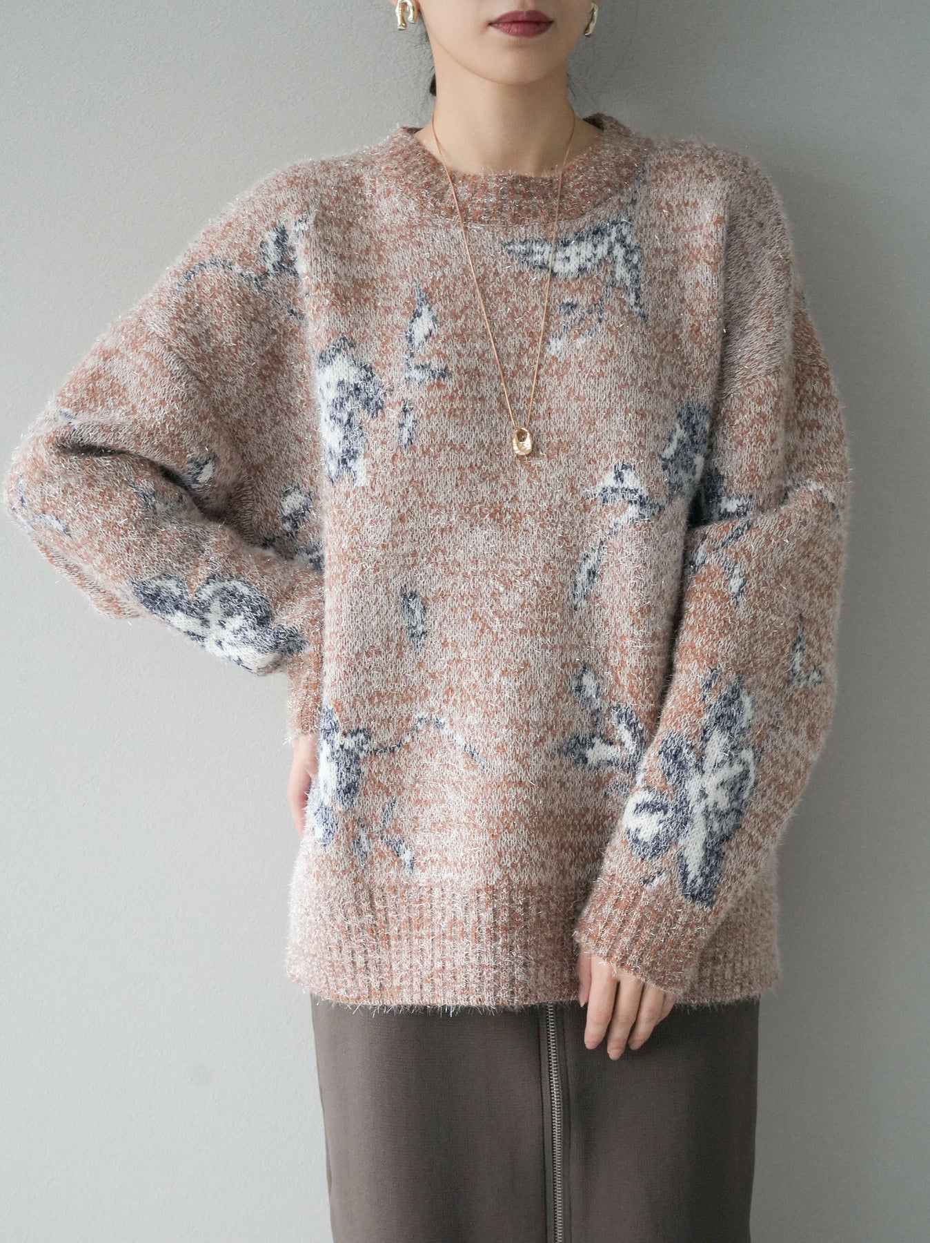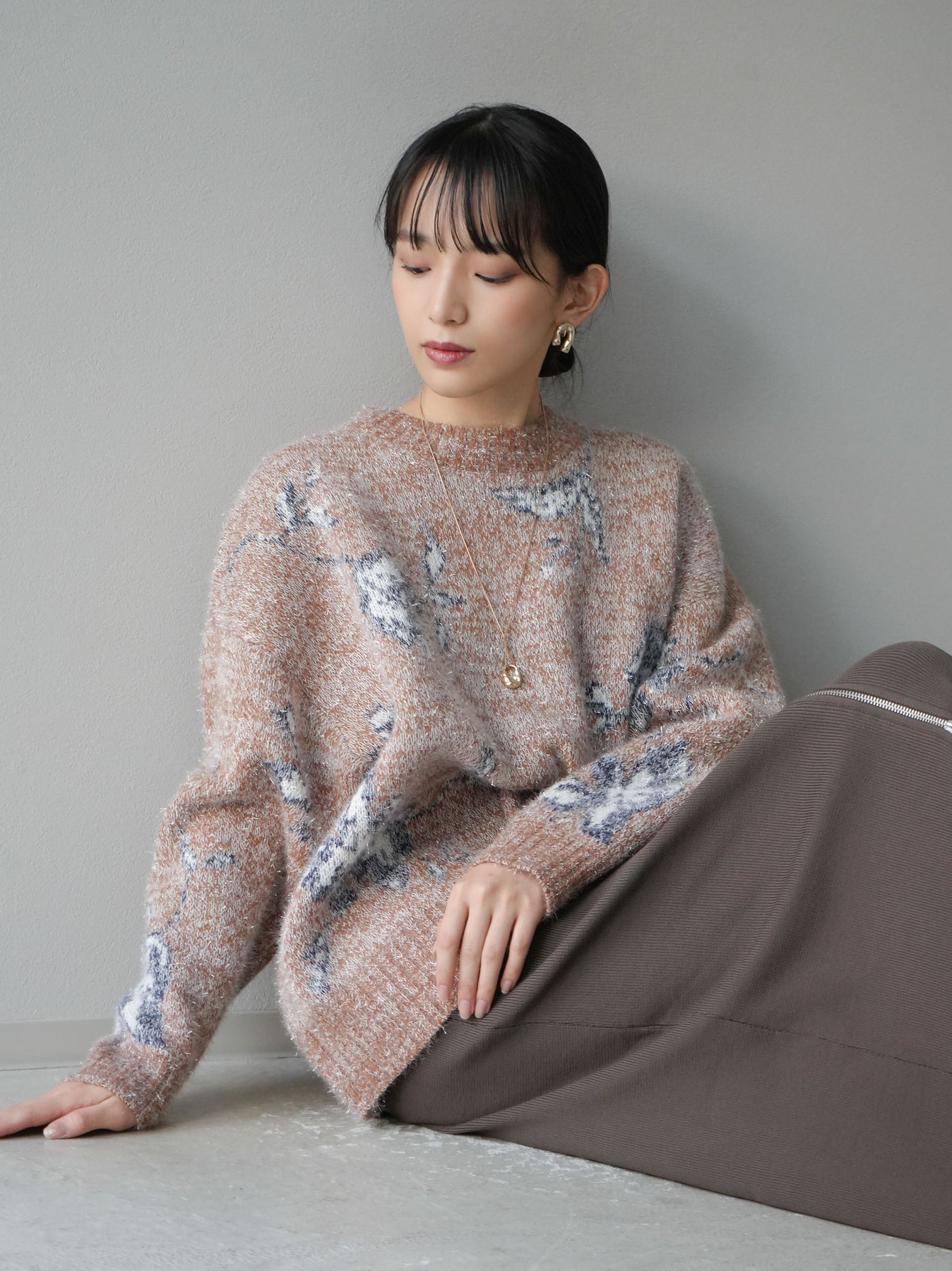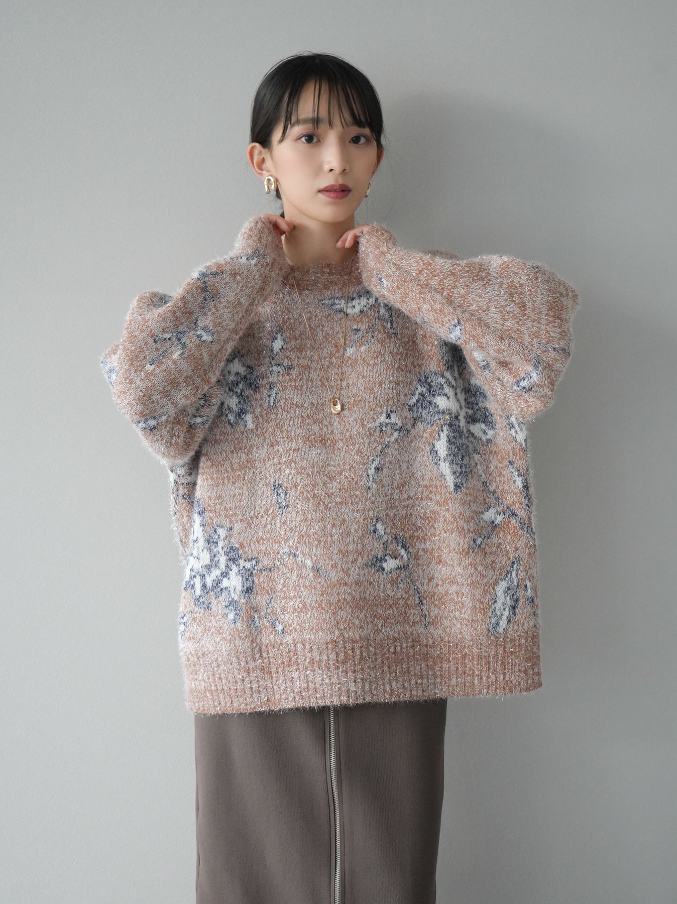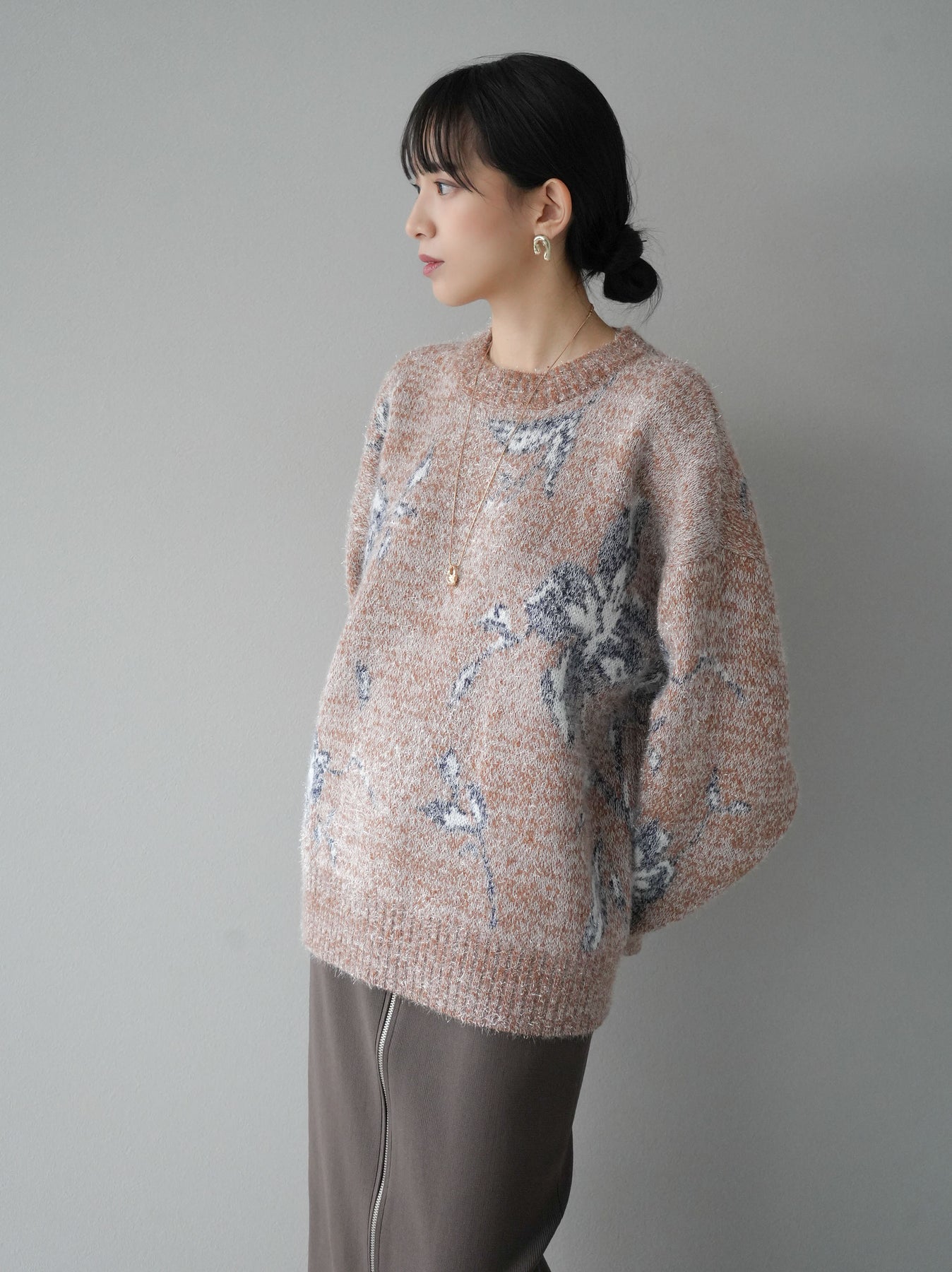 針織套頭衫,採用流行花卉提花和閃亮紗線製成,散發出精緻的光芒。適度寬鬆的輪廓營造出輕鬆的貼身感,同時仍散發出精緻的外觀。這件作品色彩華麗而柔和,適合成人風格。 ※除下裝、吊帶背心(內衣)以外的所有商品均不包含內衣。