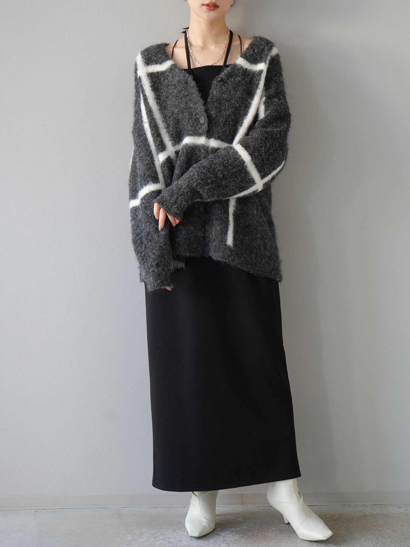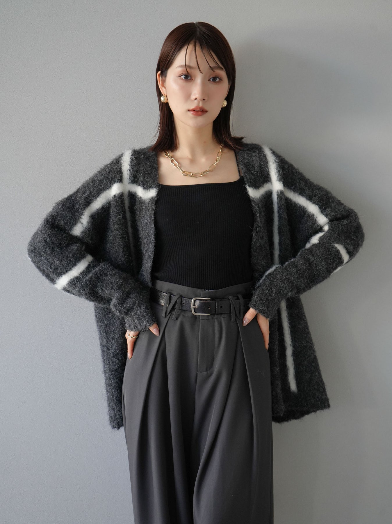 由柔軟毛茸茸的材質製成的羊毛衫,帶有大格子圖案。只需搭配簡單的內衣即可營造時尚外觀。寬鬆的輪廓營造出輕鬆的外觀,同時穿著也極為舒適。 ※除下裝、吊帶背心(內衣)以外的所有商品均不包含內衣。
