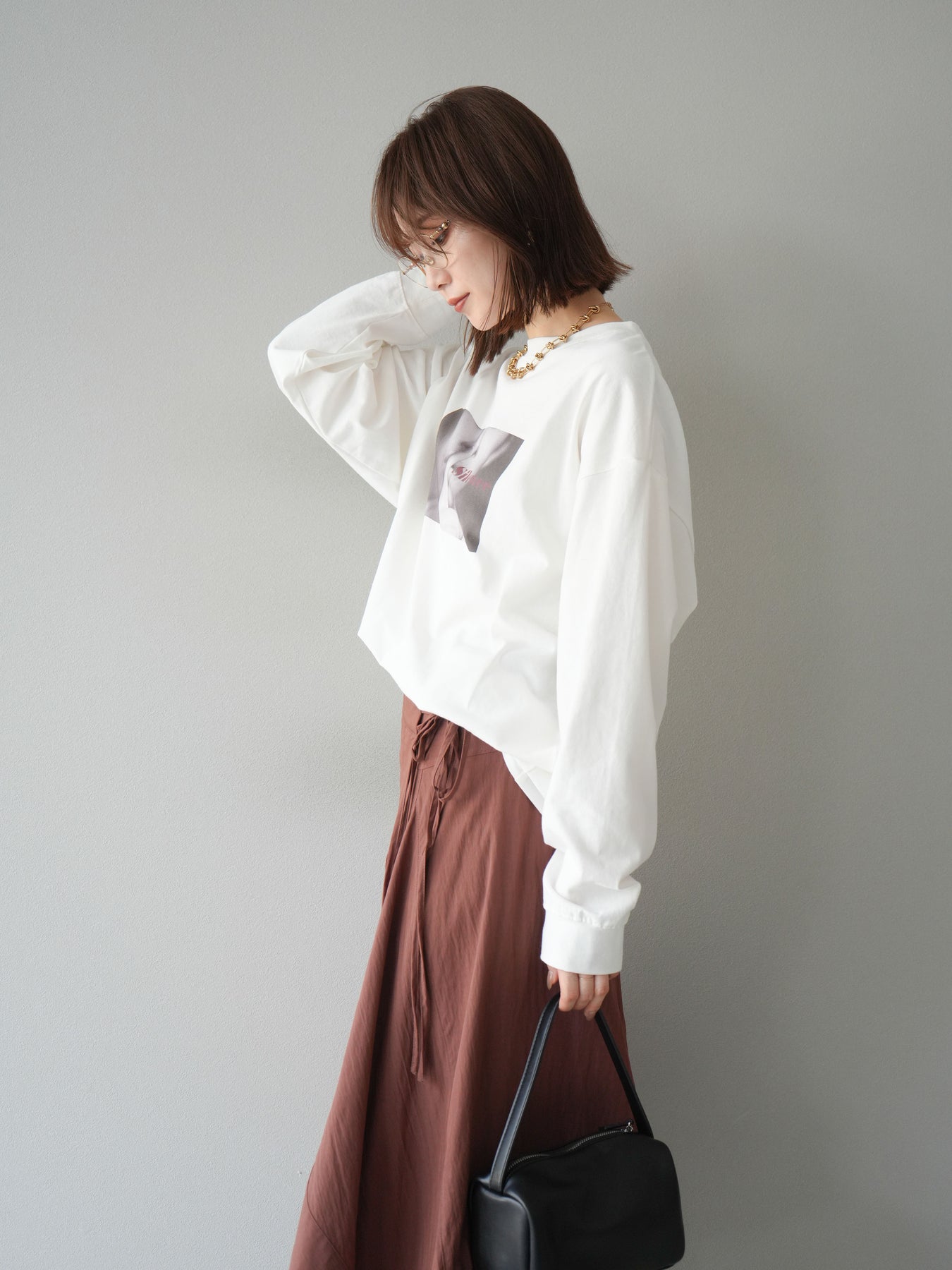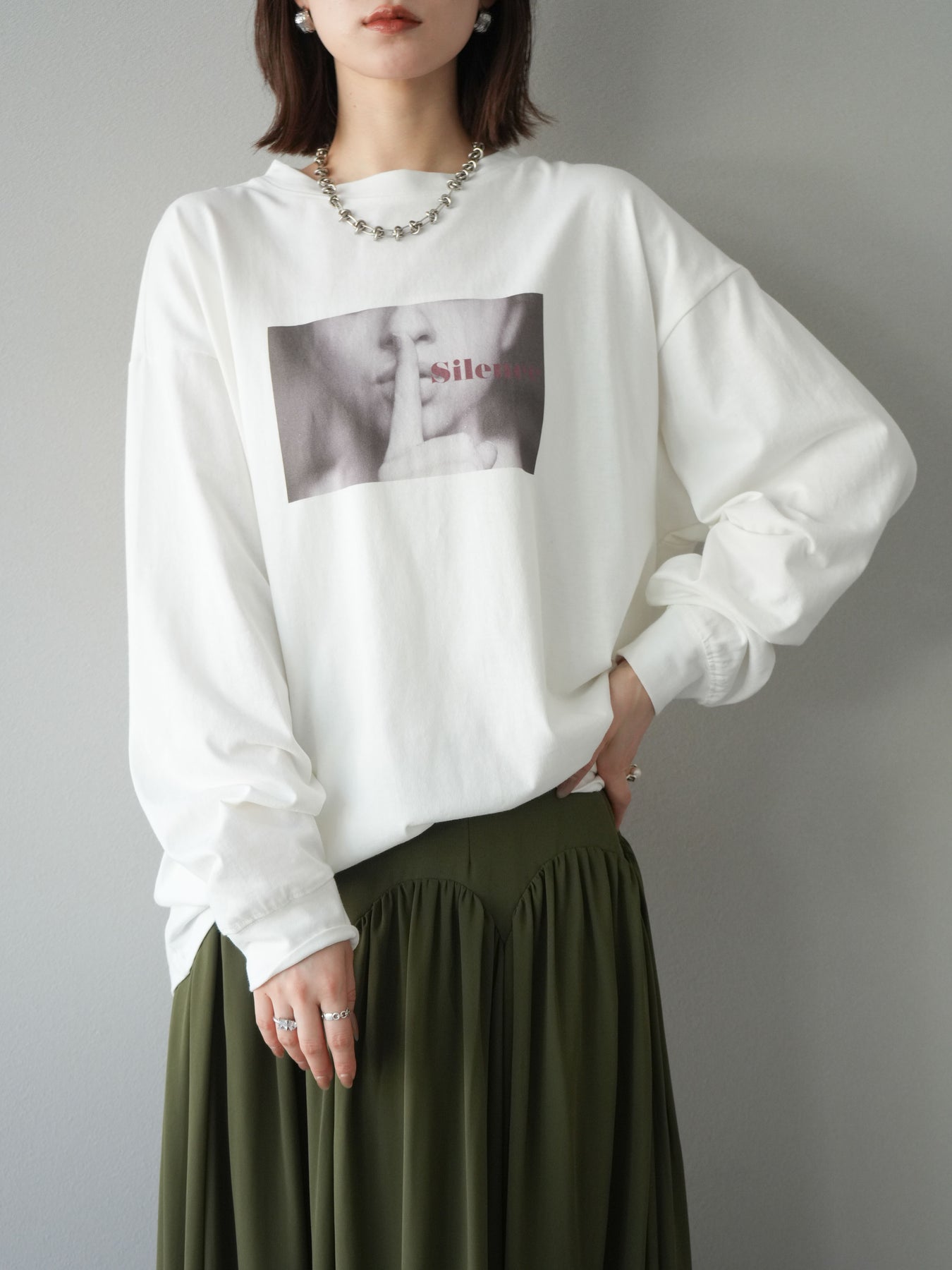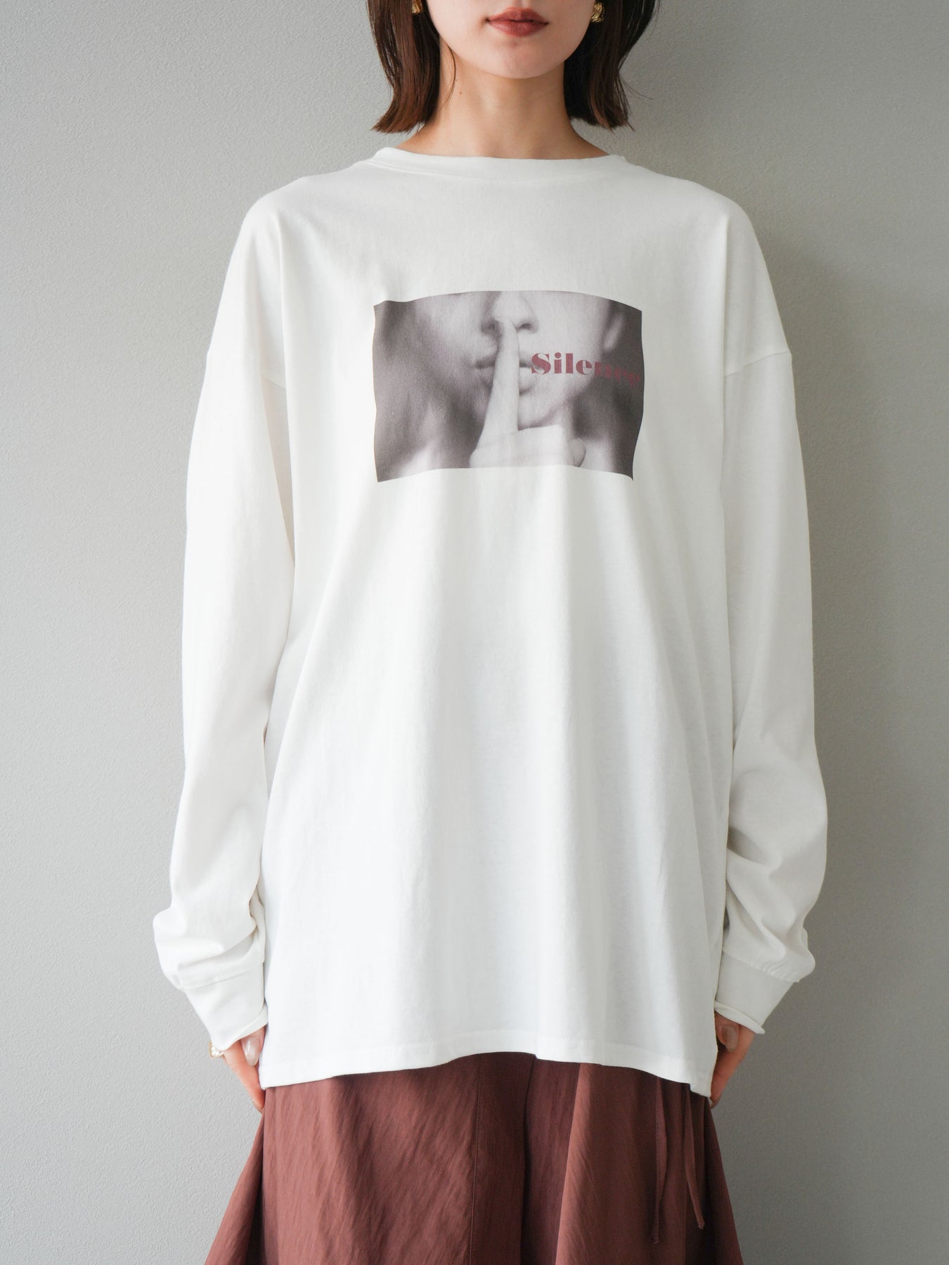 柔らかな肌触りのコットン素材に、印象的なウーマンフォトプリントを施したBIGロンT。ゆったりとしたシルエットで、抜け感のあるスタイリングが楽しめます。シンプルながらもプリントがアクセントとなり、カジュアルからモードまで幅広く活躍する1枚です。ヒップが隠れる丈感で体型カバーも叶えます。 ※ボトムス、キャミソール(インナー)以外の商品は一律でインナーは付属していません