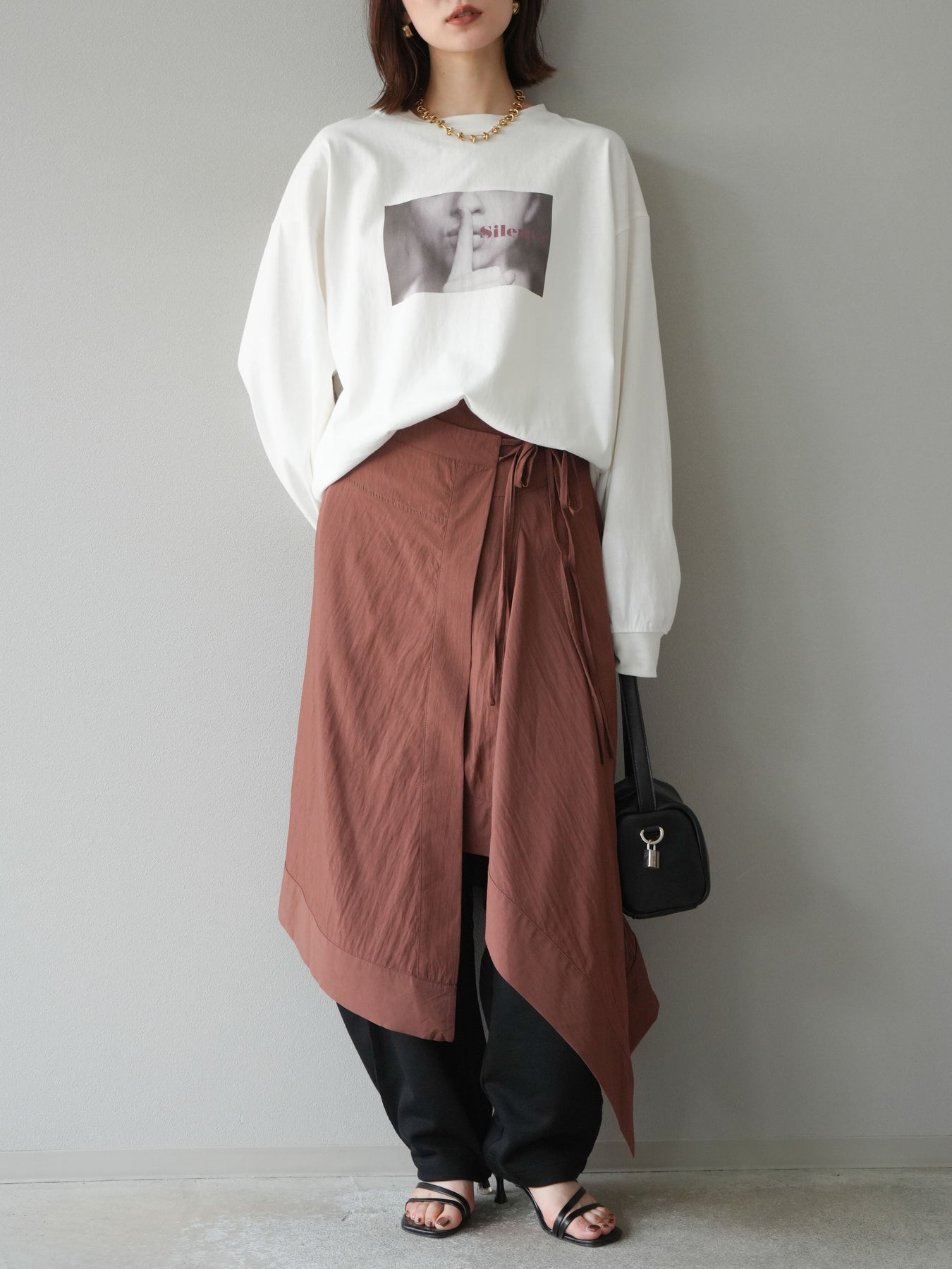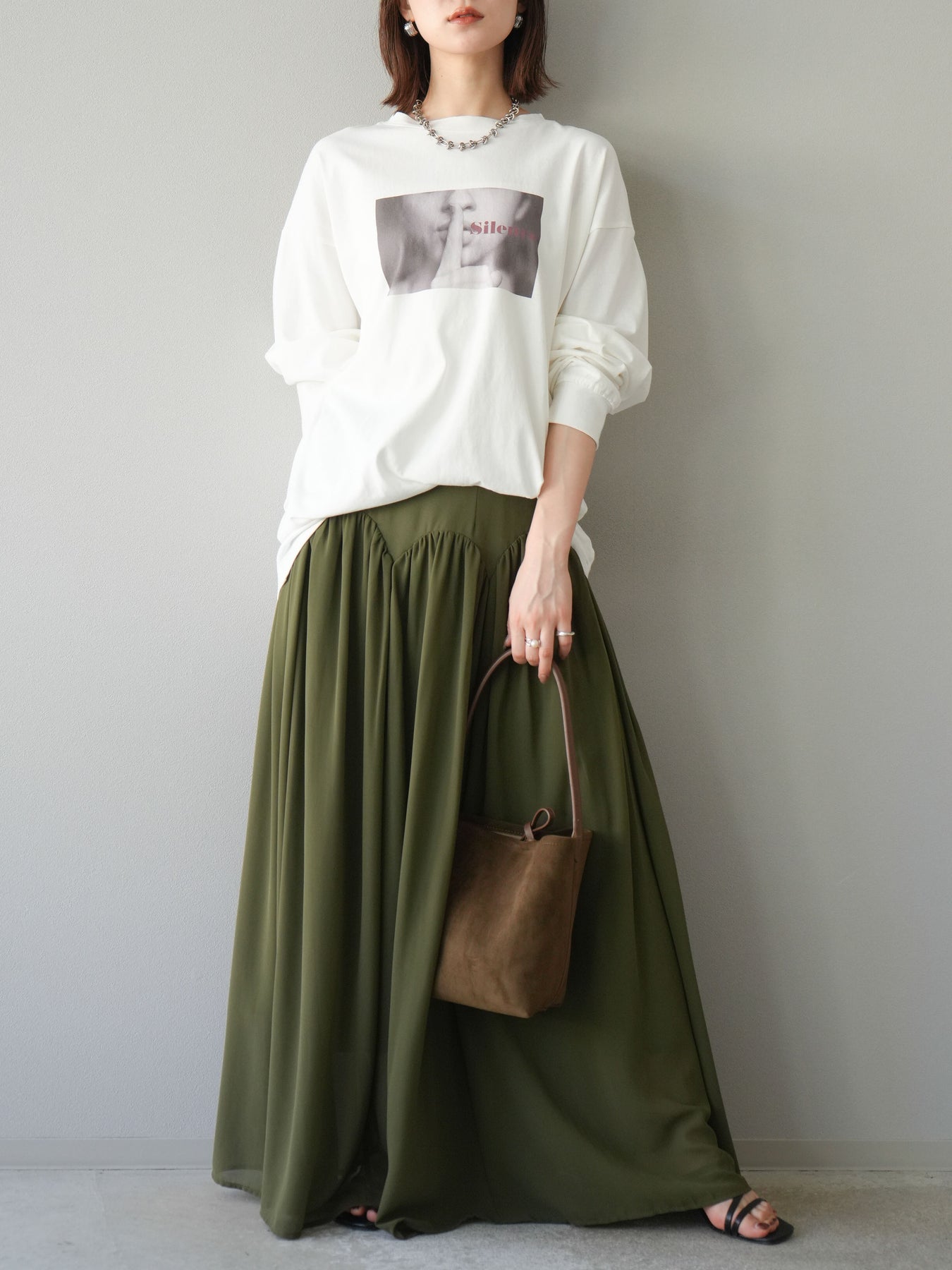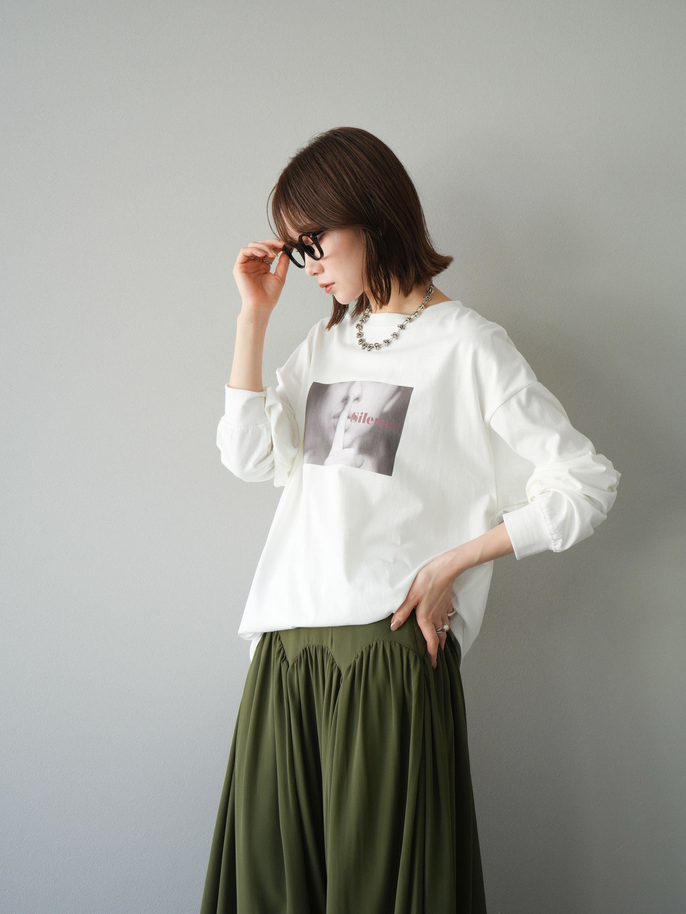 柔らかな肌触りのコットン素材に、印象的なウーマンフォトプリントを施したBIGロンT。ゆったりとしたシルエットで、抜け感のあるスタイリングが楽しめます。シンプルながらもプリントがアクセントとなり、カジュアルからモードまで幅広く活躍する1枚です。ヒップが隠れる丈感で体型カバーも叶えます。 ※ボトムス、キャミソール(インナー)以外の商品は一律でインナーは付属していません