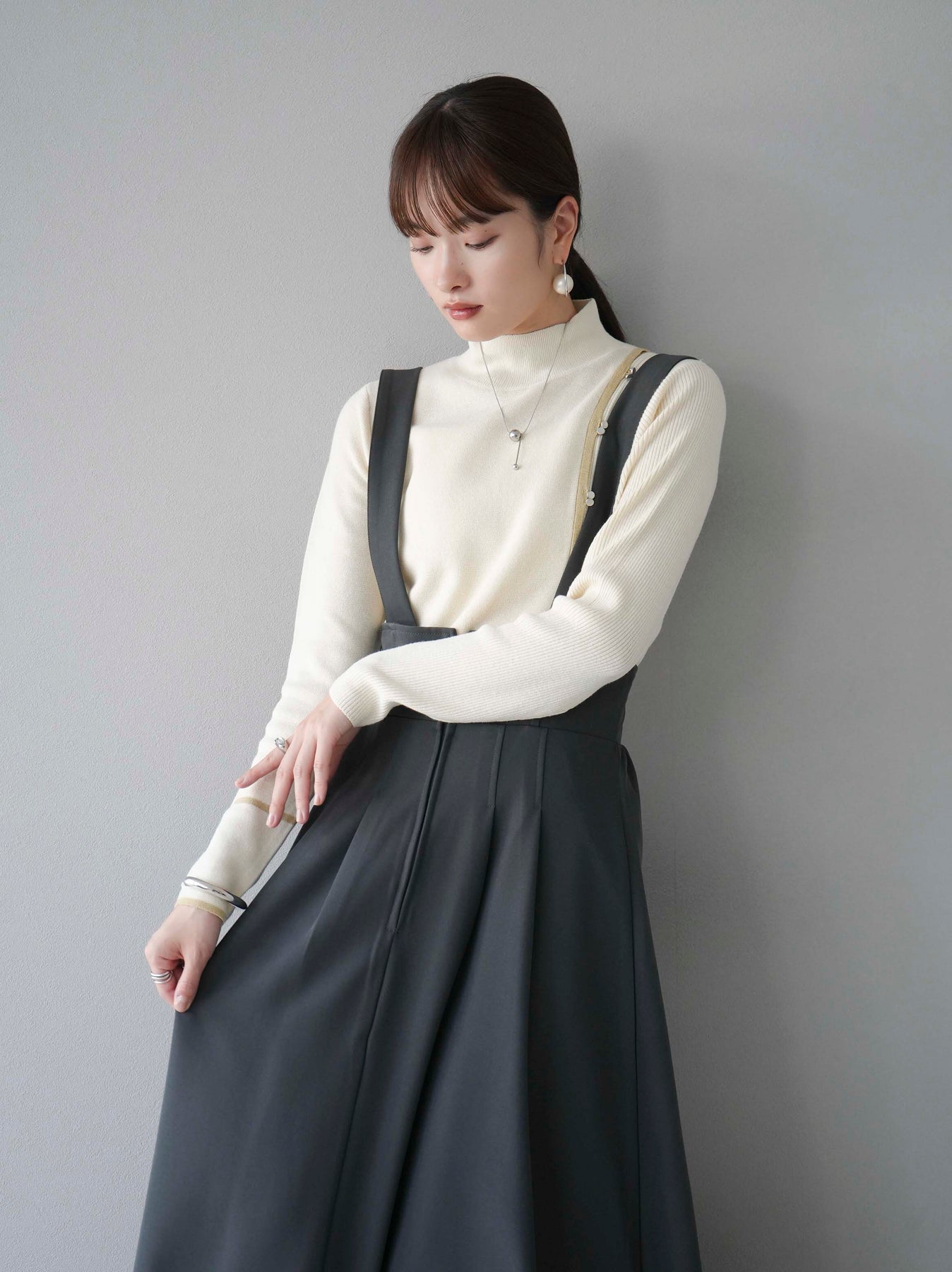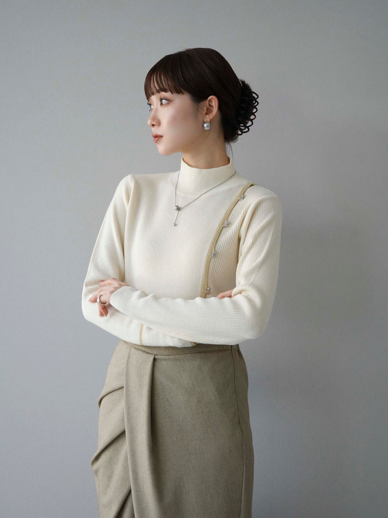針織上衣,優雅的船領,配上色彩協調的設計連結。羅紋針織也有顯瘦的效果。完美貼合、材質柔軟,穿起來極為舒適。時尚的配色設計使其適合從休閒到優雅等各種風格。 ※除下裝、吊帶背心(內衣)以外的所有商品均不包含內衣。