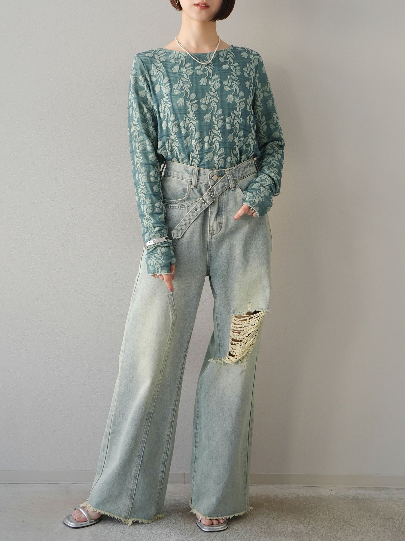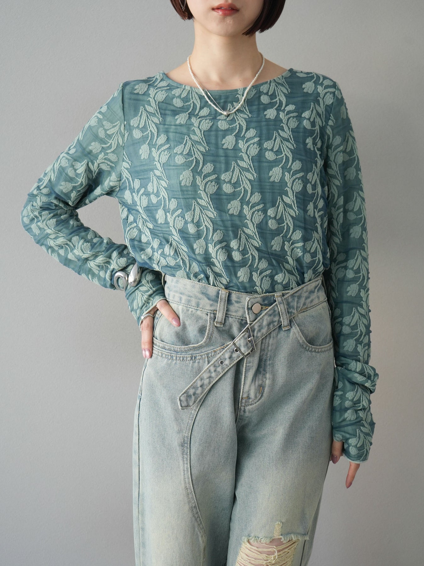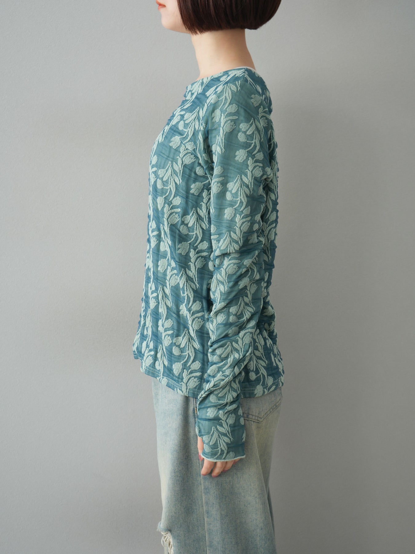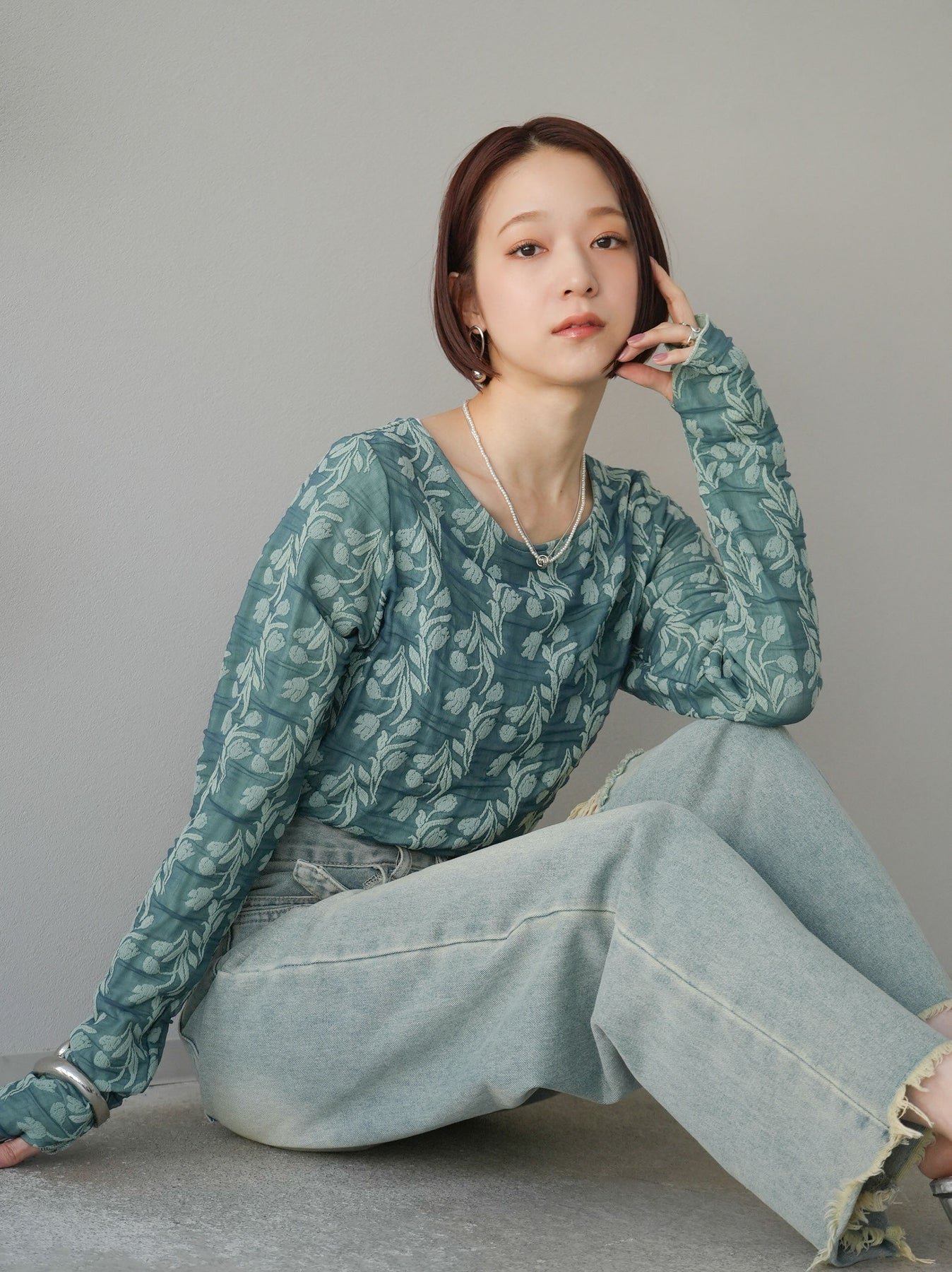 這款上衣採用時尚的雙層紗布提花面料製成。自然的紋理凸顯了精緻的圖案,並具有適度的透明度。寬鬆的輪廓和長袖帶來舒適的穿著體驗。無論是搭配休閒牛仔褲或是充滿女性氣息的半身裙,都能帶來多種造型選擇。也推薦用於疊穿。 ※除下裝、吊帶背心(內衣)以外的商品均為標準品,不含內衣。