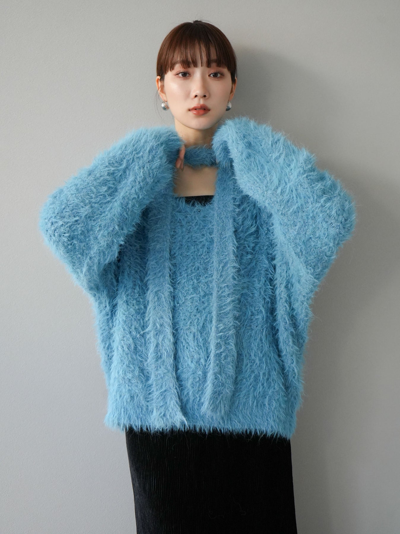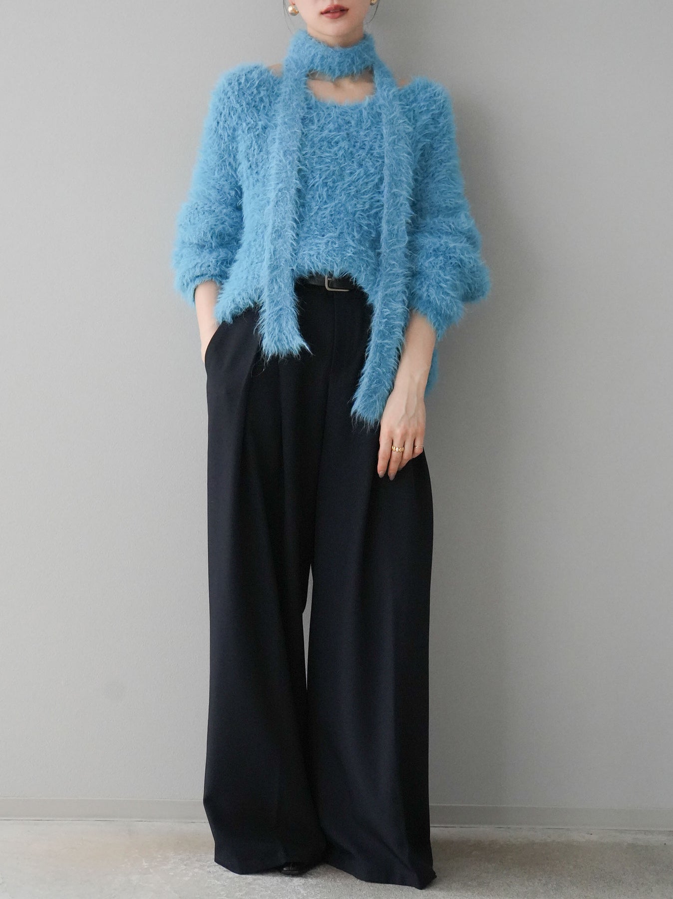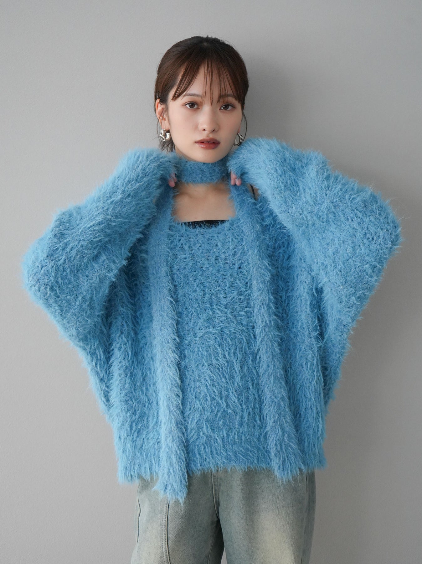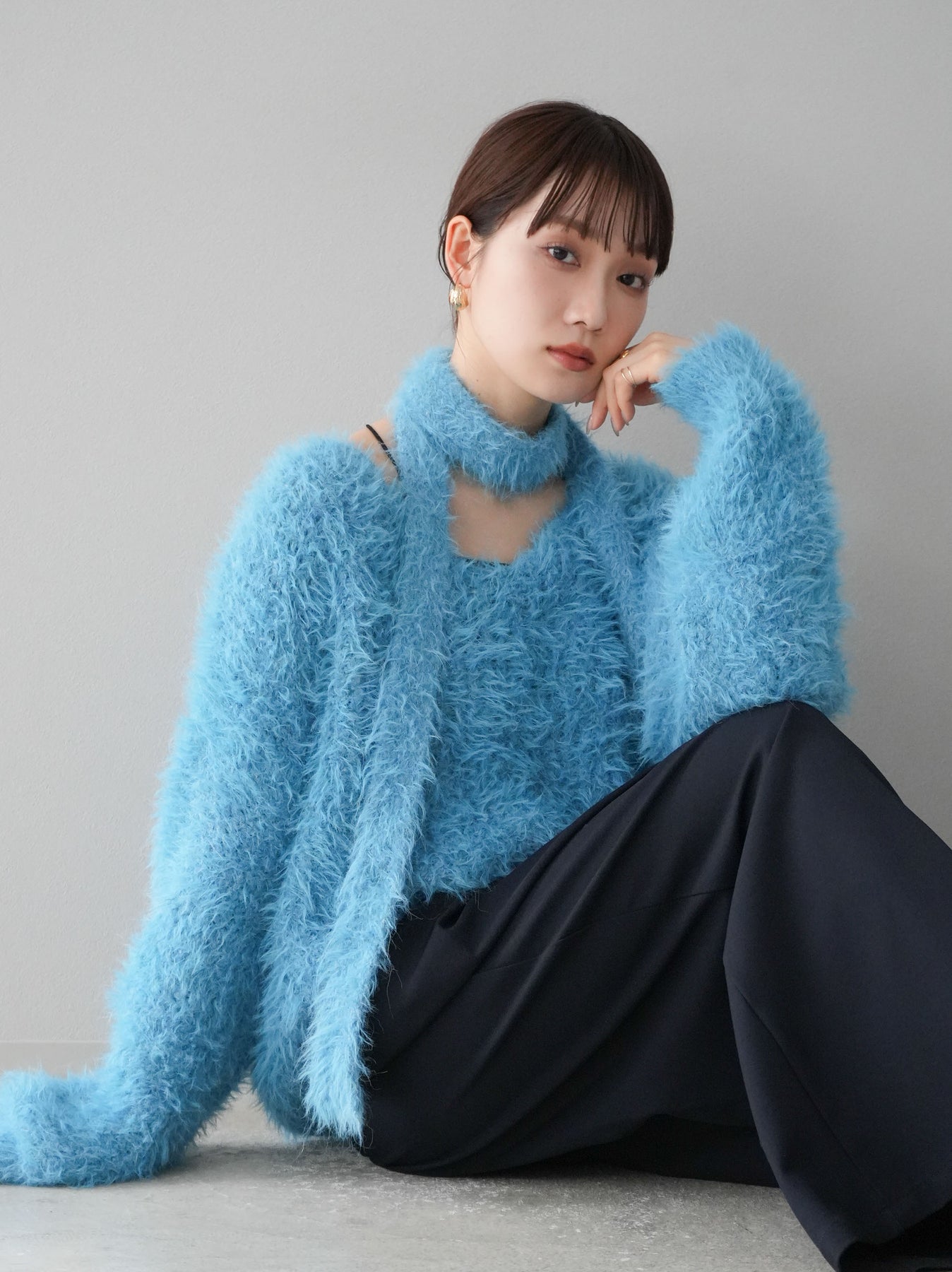 商品配有柔軟的混合紗線毛絨針織物和披肩。採用輕鬆和溫暖的設計,這是秋冬季節的完美單品。可以輕鬆搭配從休閒到優雅的各種風格,並擴大您的搭配選擇範圍。 ※除下裝、吊帶背心(內衣)以外的商品均為標準品,不含內衣。