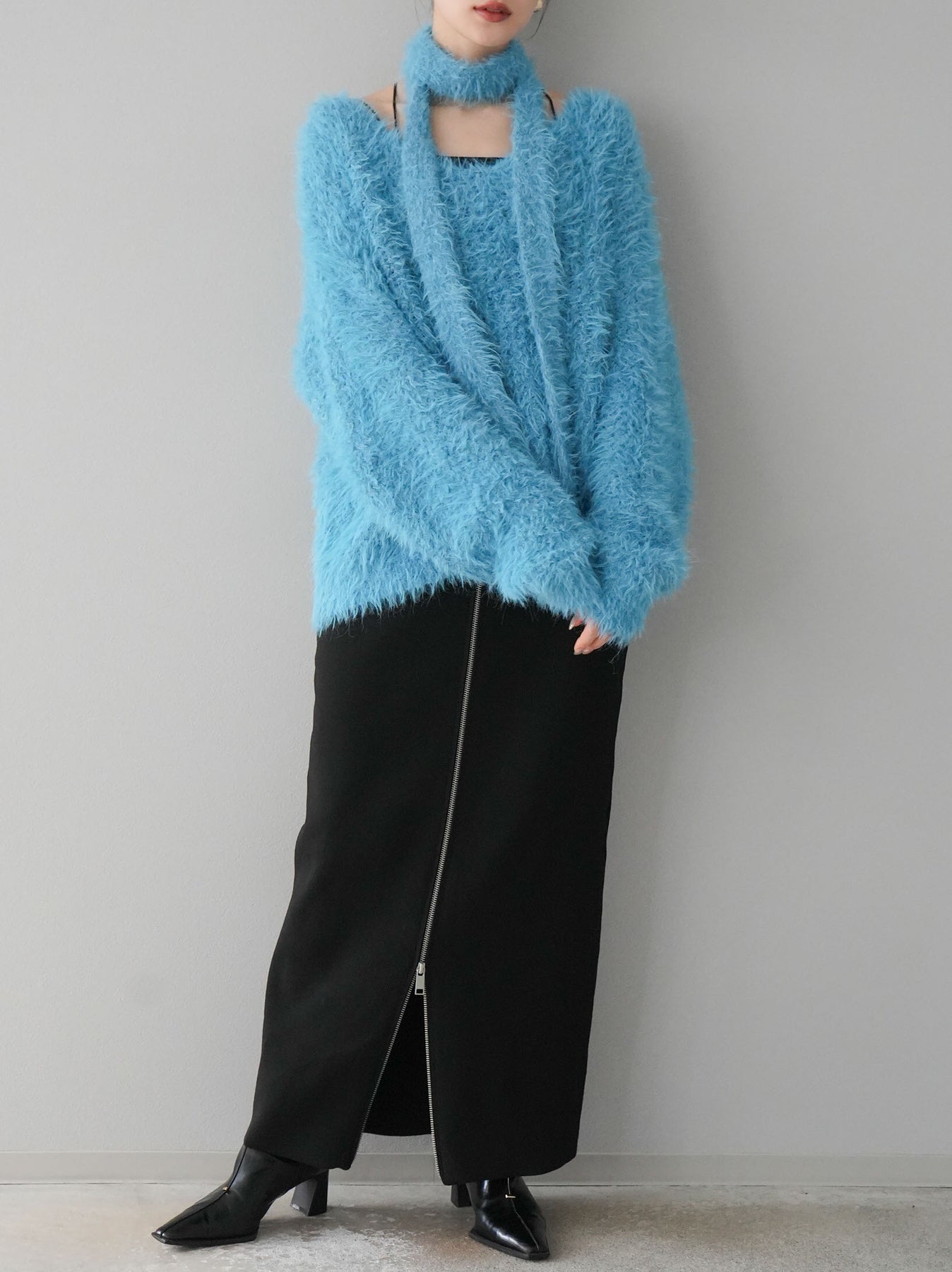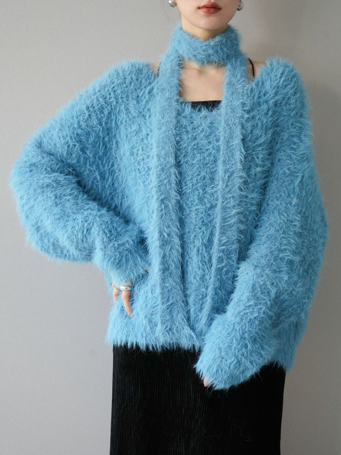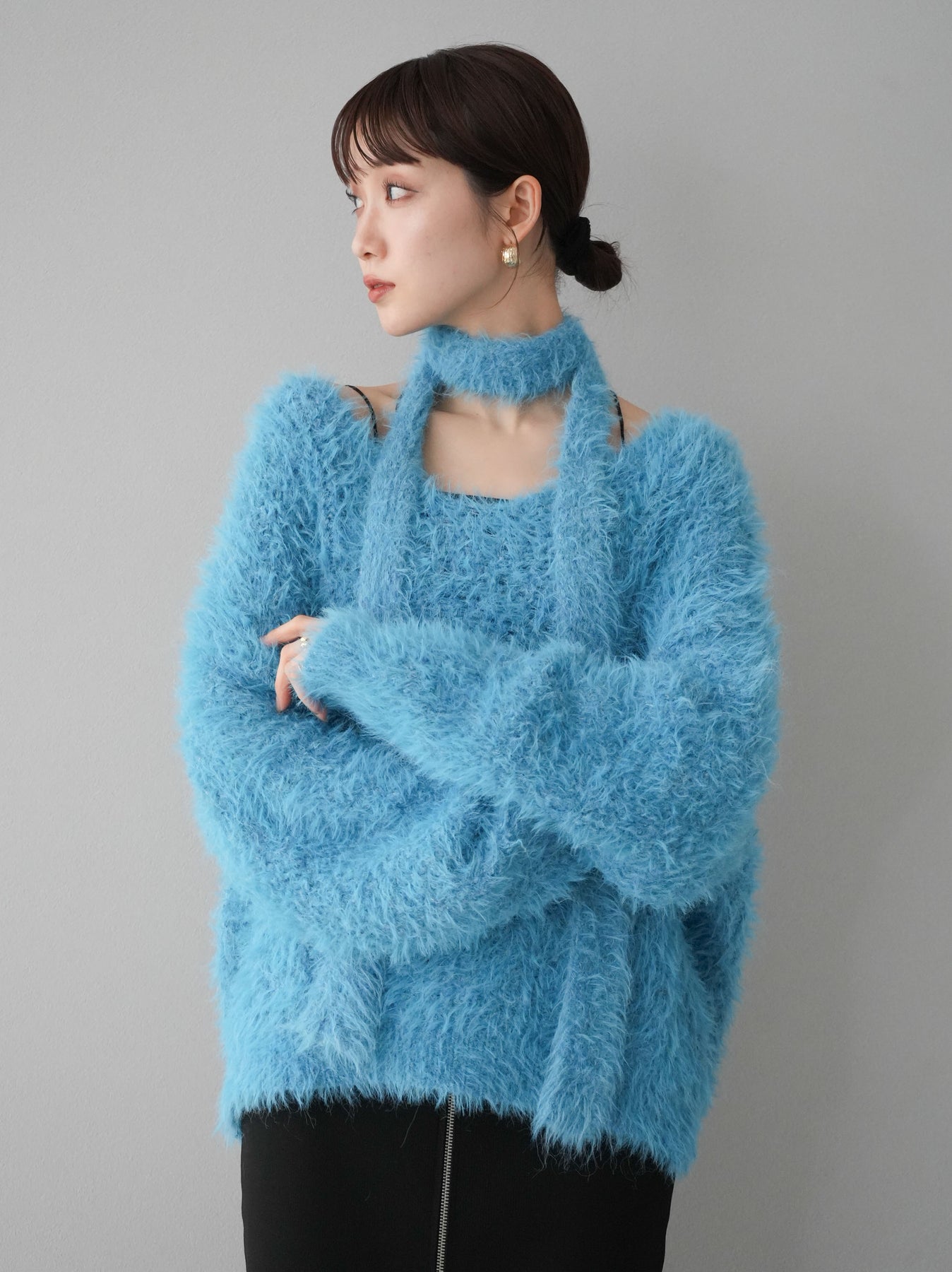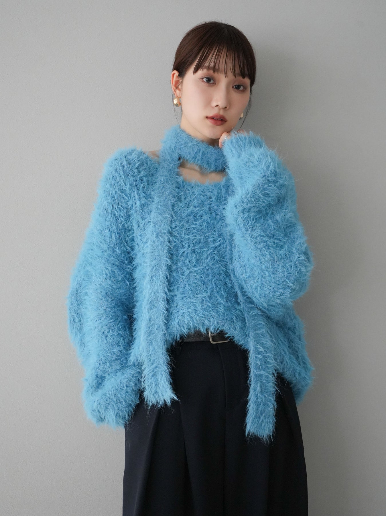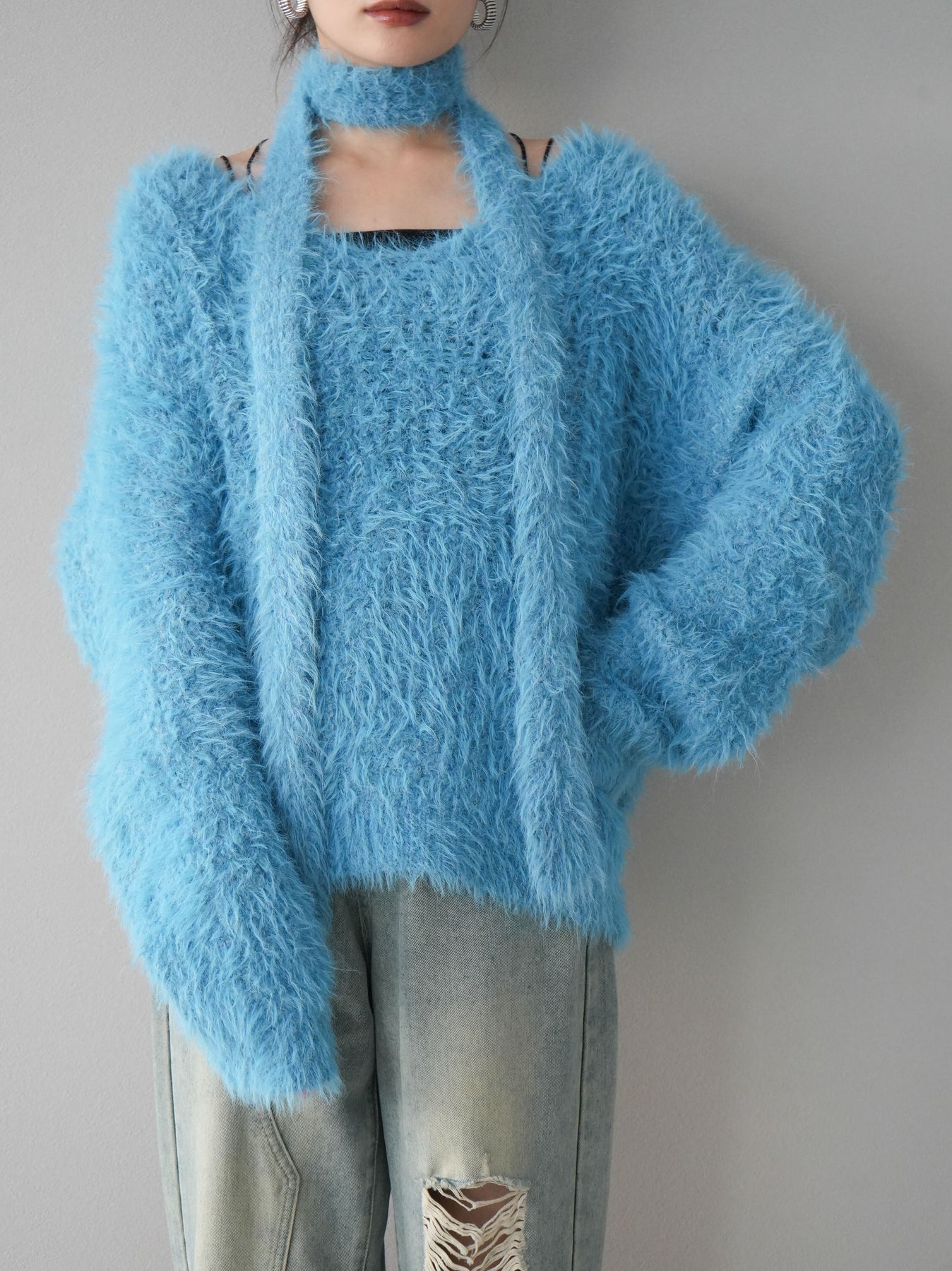 商品配有柔軟的混合紗線毛絨針織物和披肩。採用輕鬆和溫暖的設計,這是秋冬季節的完美單品。可以輕鬆搭配從休閒到優雅的各種風格,並擴大您的搭配選擇範圍。 ※除下裝、吊帶背心(內衣)以外的商品均為標準品,不含內衣。