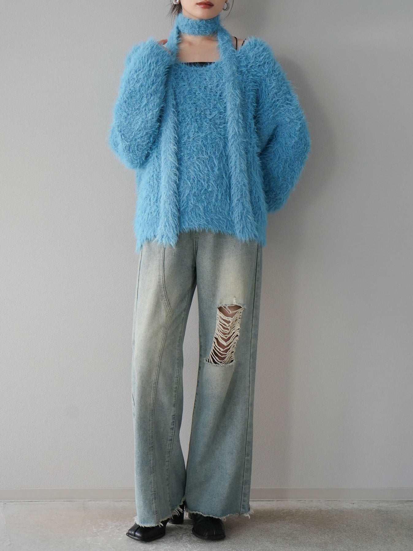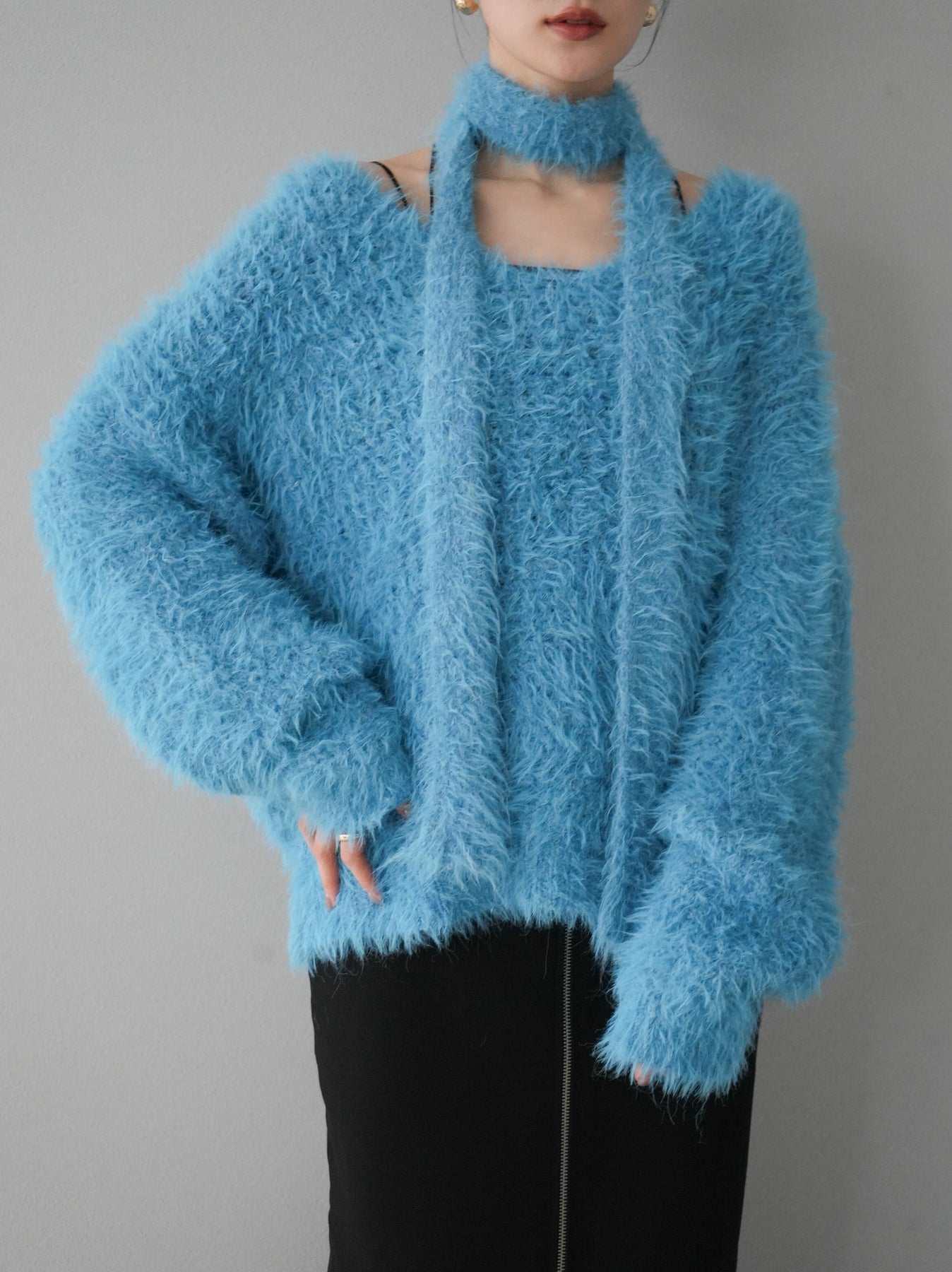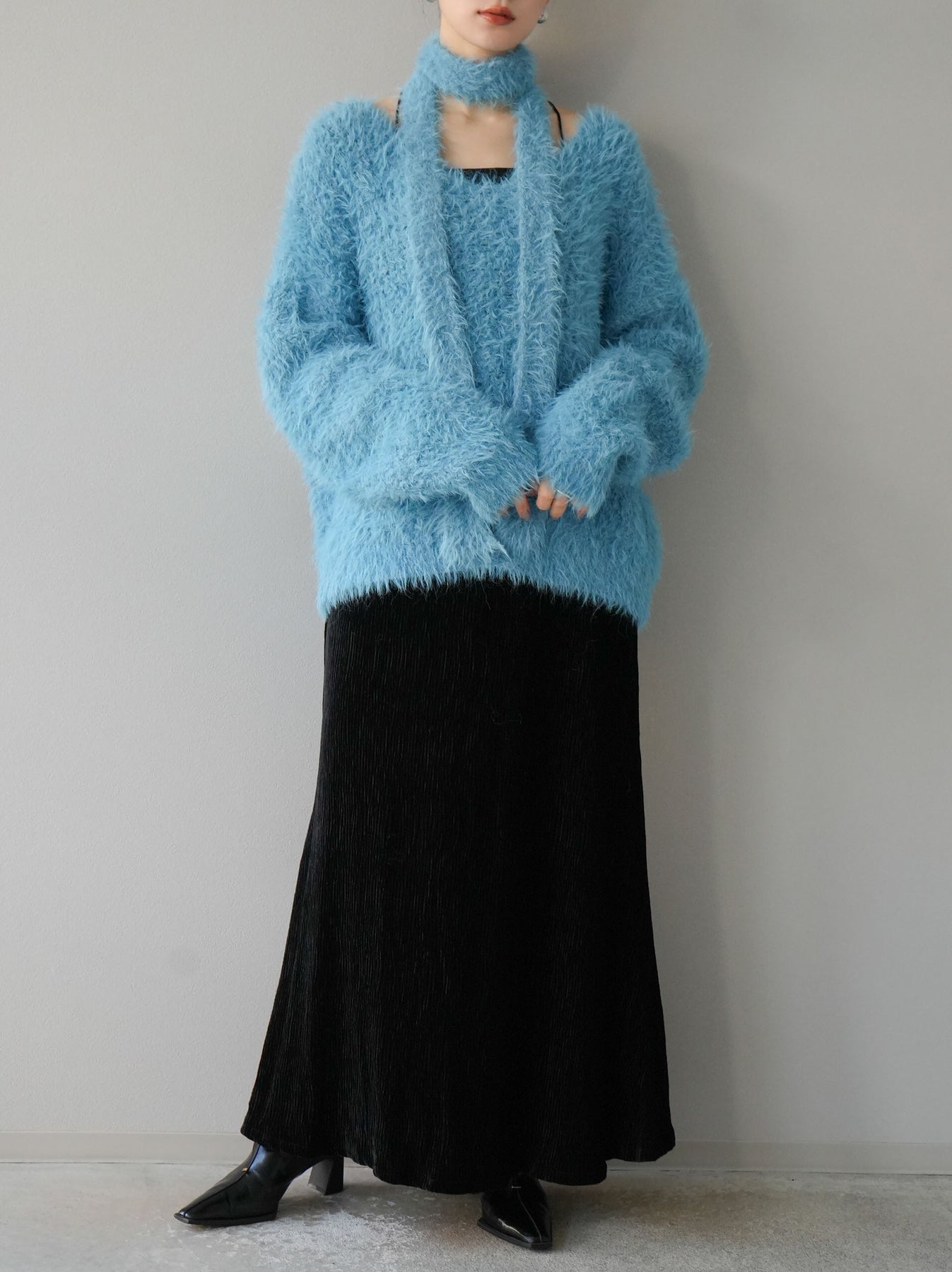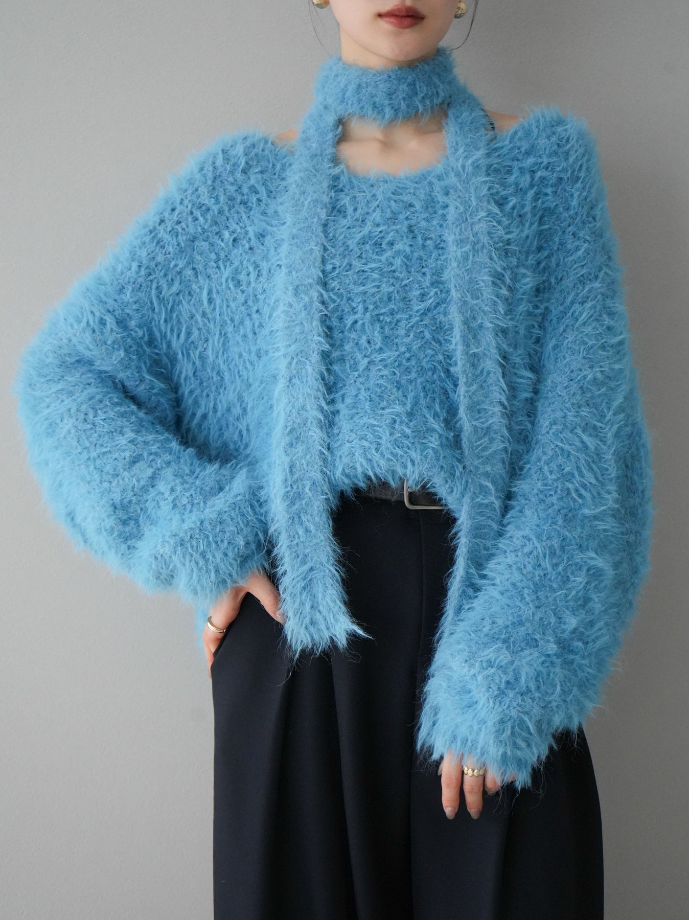 商品配有柔軟的混合紗線毛絨針織物和披肩。採用輕鬆和溫暖的設計,這是秋冬季節的完美單品。可以輕鬆搭配從休閒到優雅的各種風格,並擴大您的搭配選擇範圍。 ※除下裝、吊帶背心(內衣)以外的商品均為標準品,不含內衣。