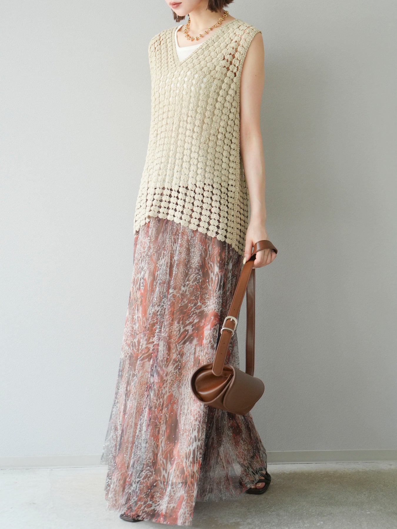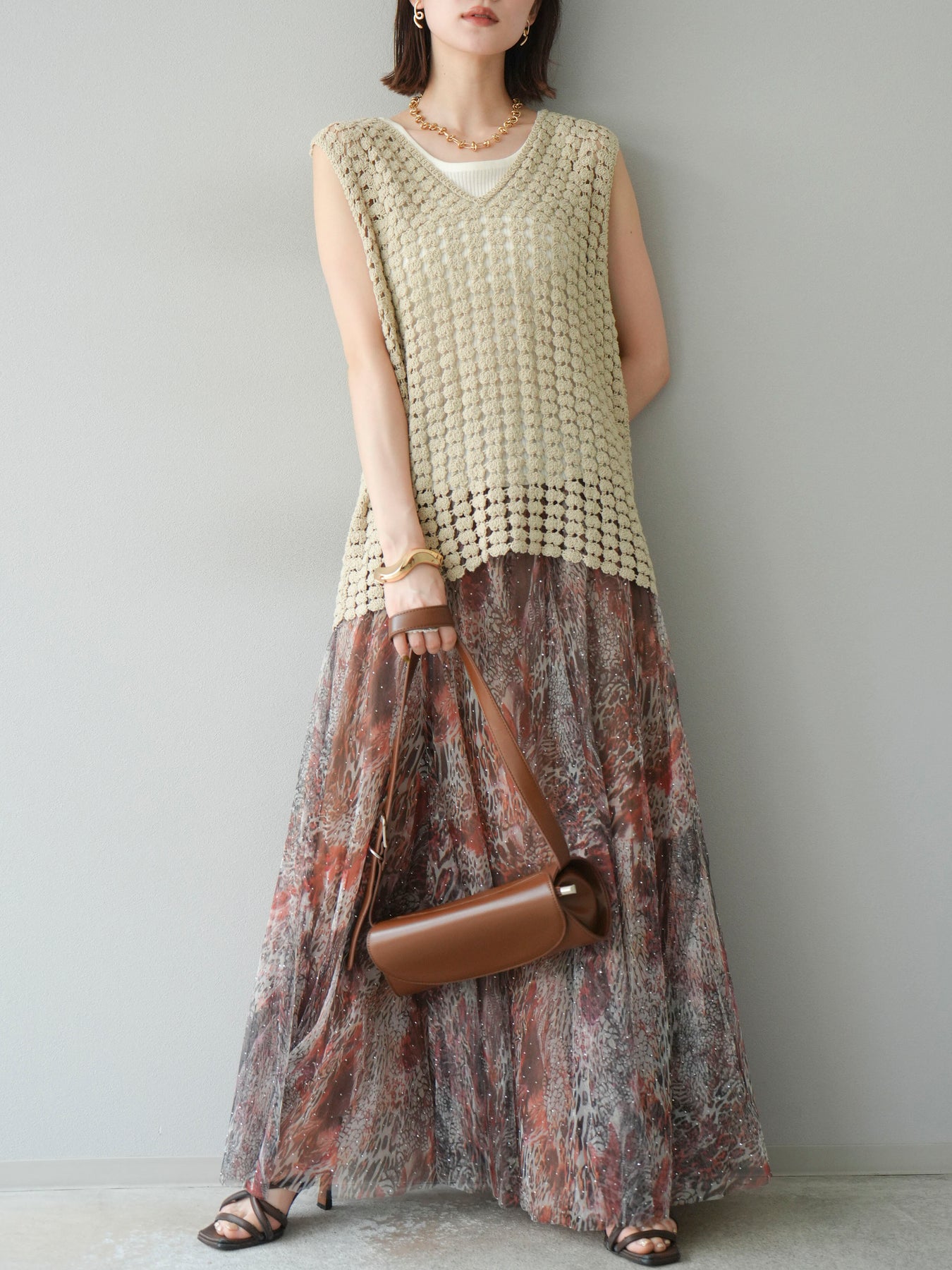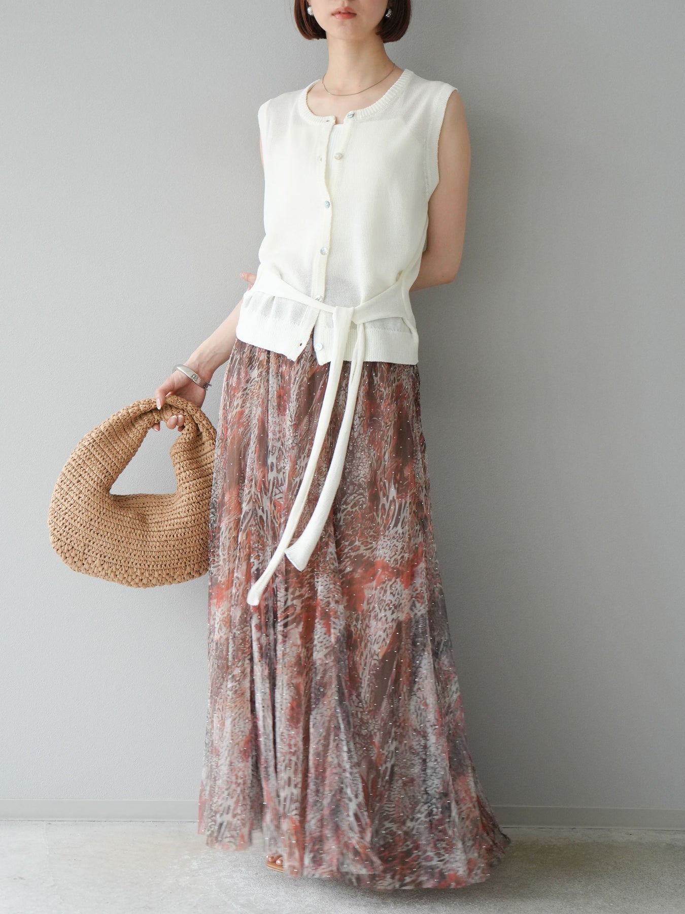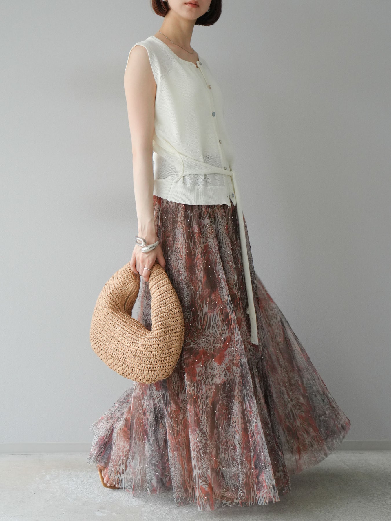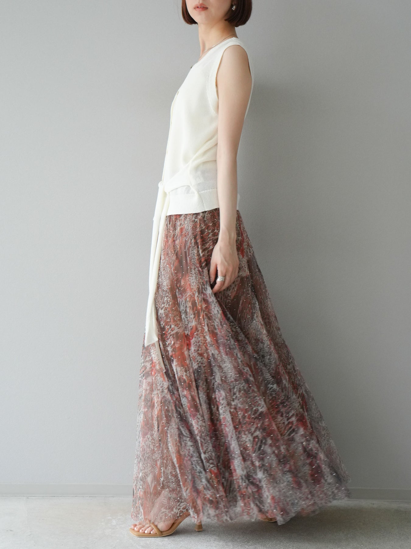 [予約]ニュアンス柄チュールレイヤードプリーツスカートに関連する商品を探す↓