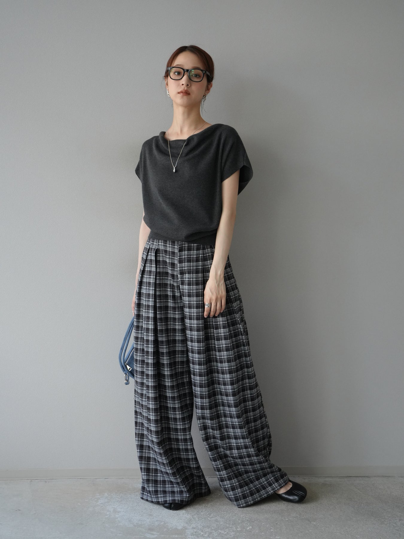 [予約]ウールタッチチェックワイドパンツ/ブラック