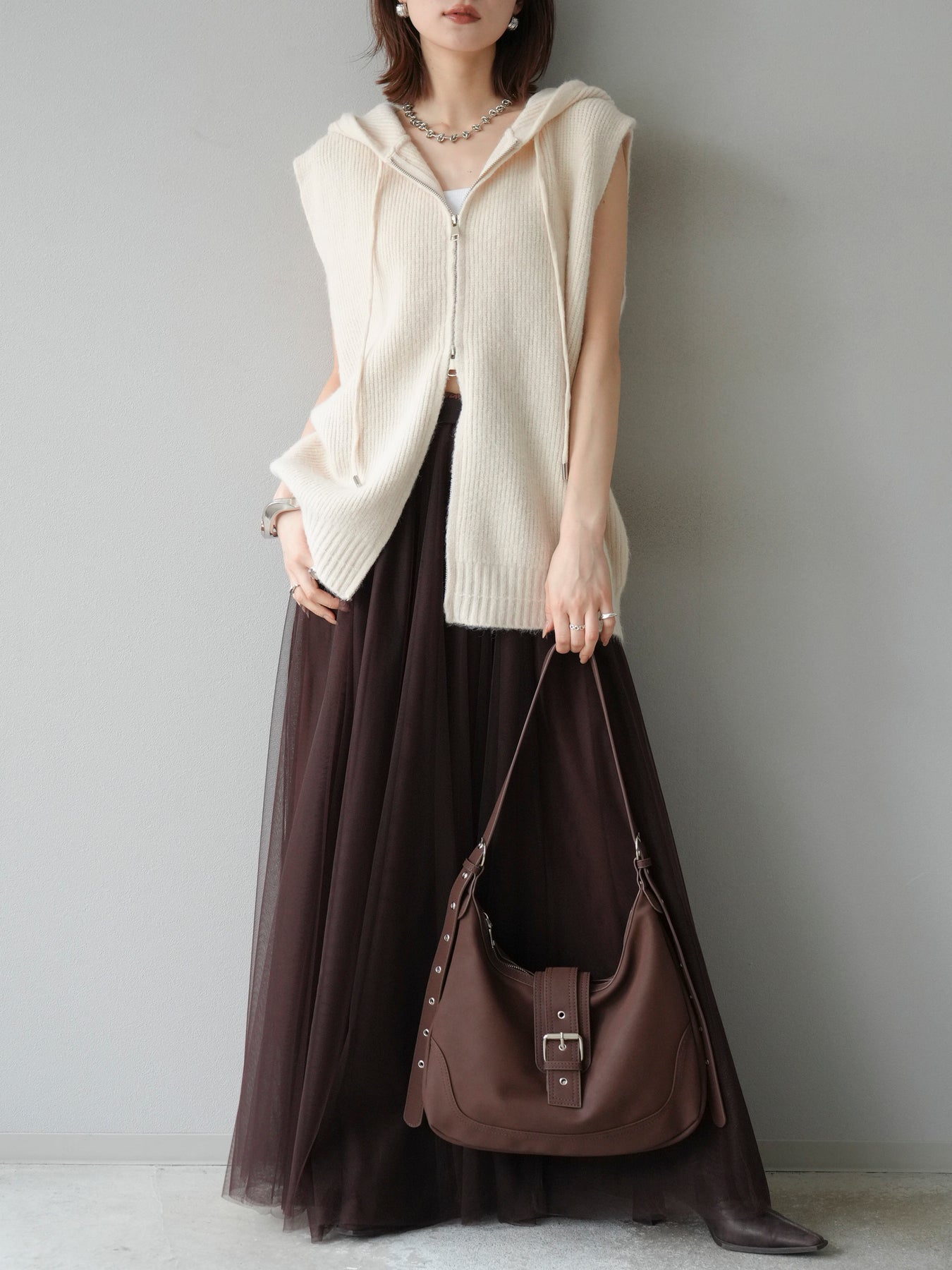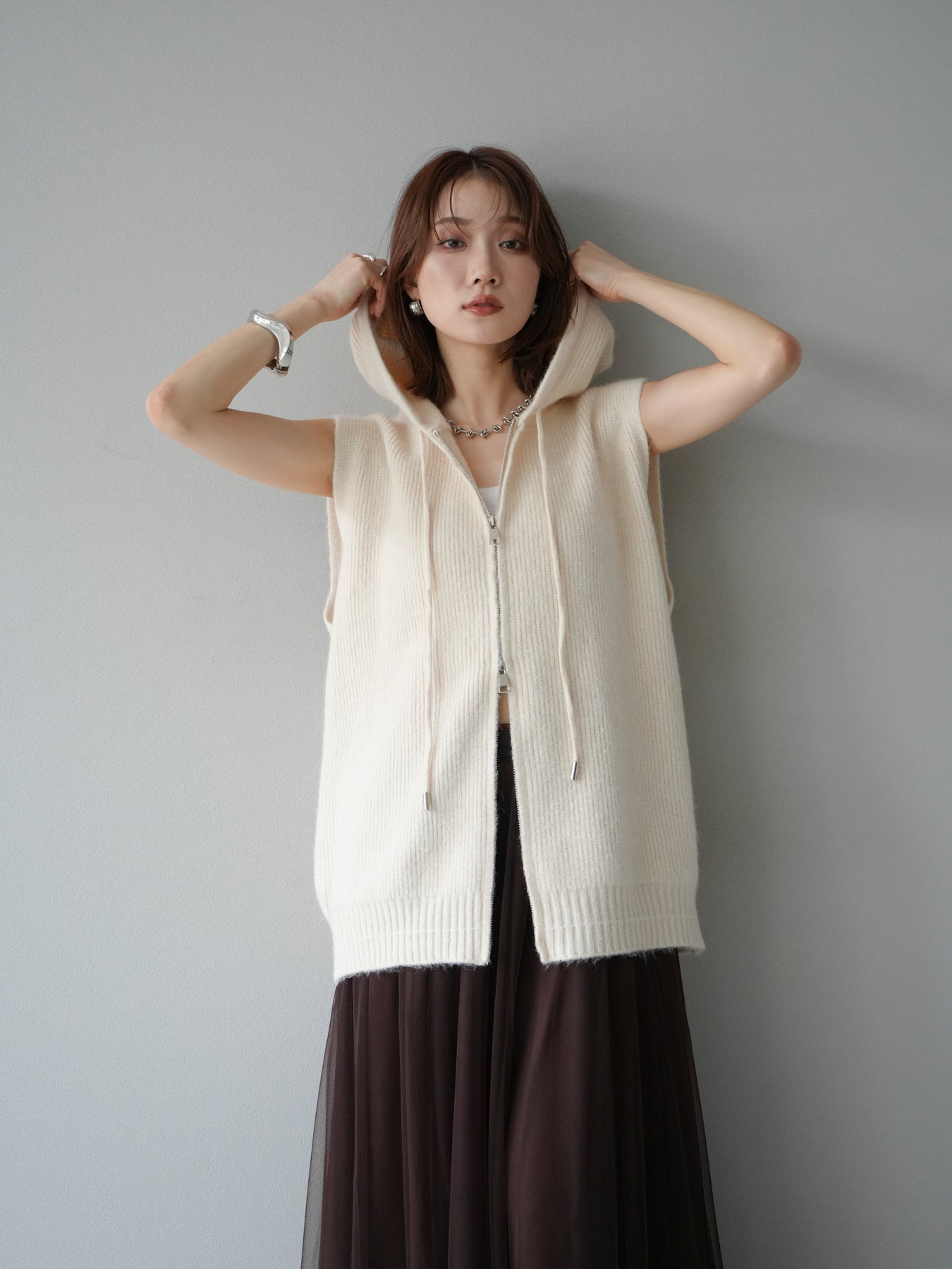 這款無袖連帽衫採用柔軟針織布料製成。正面拉鍊和休閒連帽細節營造出輕鬆愜意的穿著體驗。無袖設計易於疊穿,可搭配襯衫、上衣和洋裝搭配,打造百搭造型。長度恰到好處,略低於臀部,可與任何下裝完美搭配。這款百搭單品為您的日常穿搭增添一抹休閒氣息。 ※除下裝、吊帶背心(內衣)以外的商品均為標準品,不含內衣。
