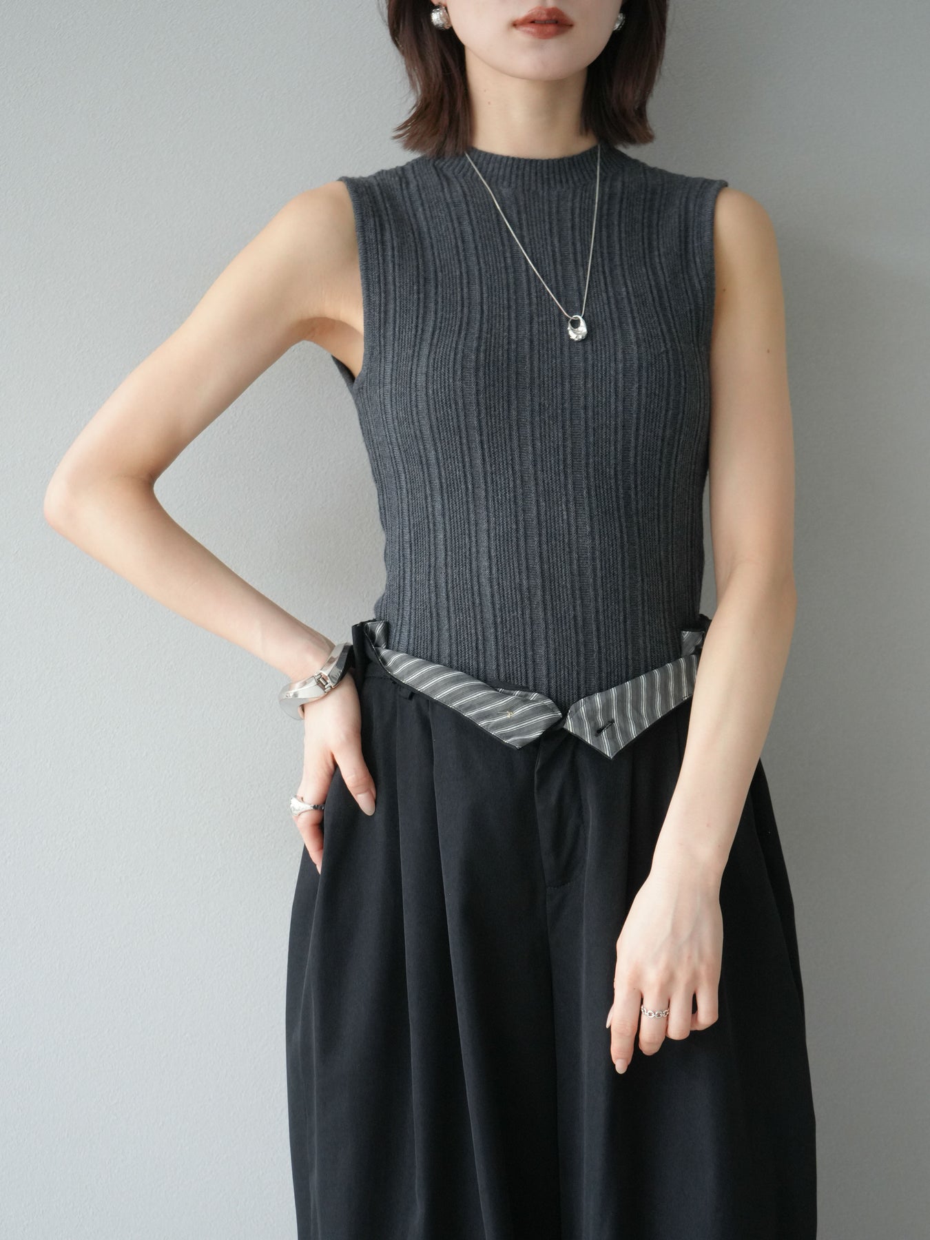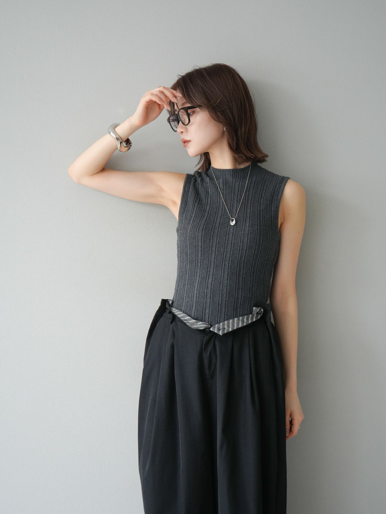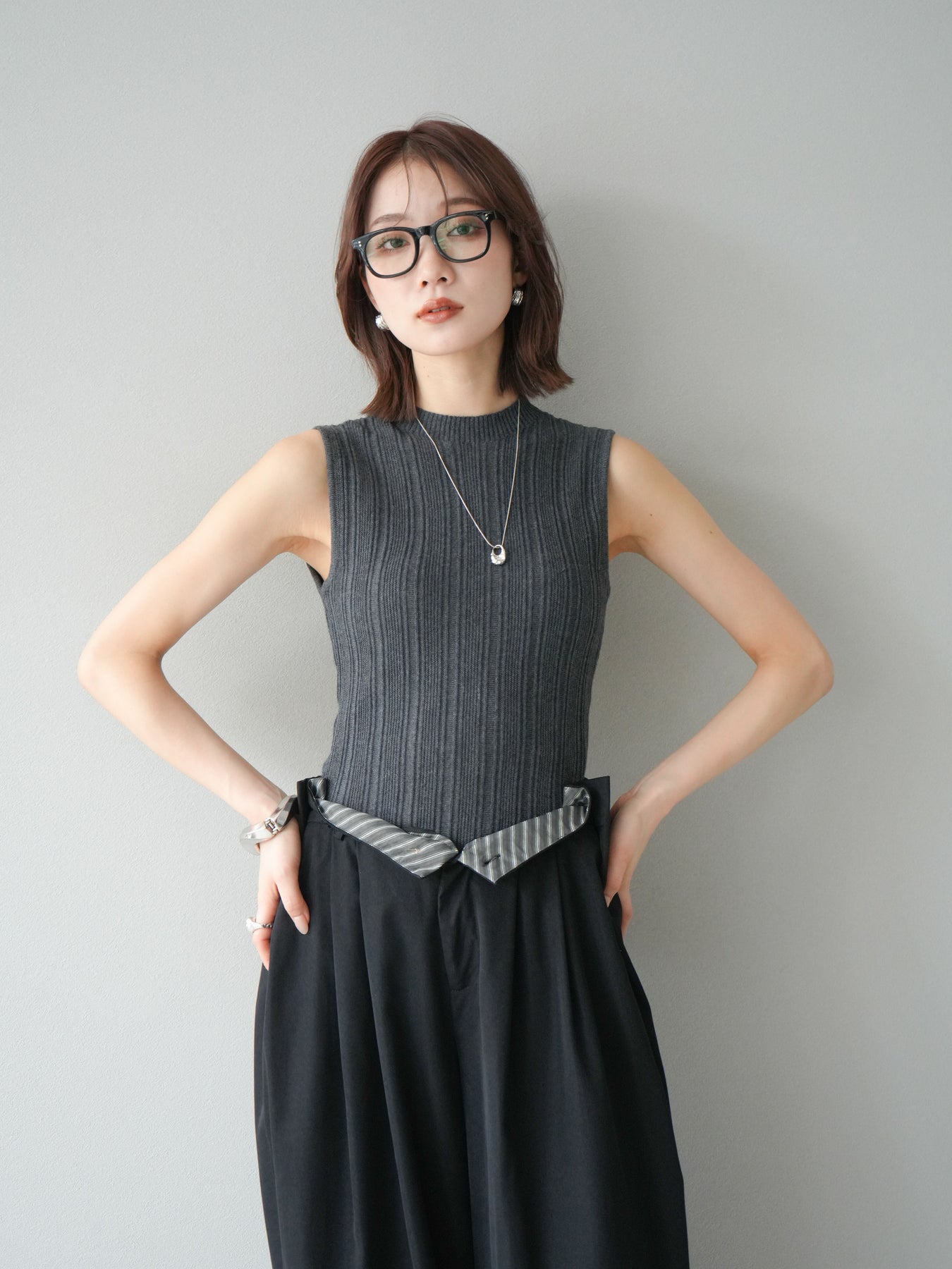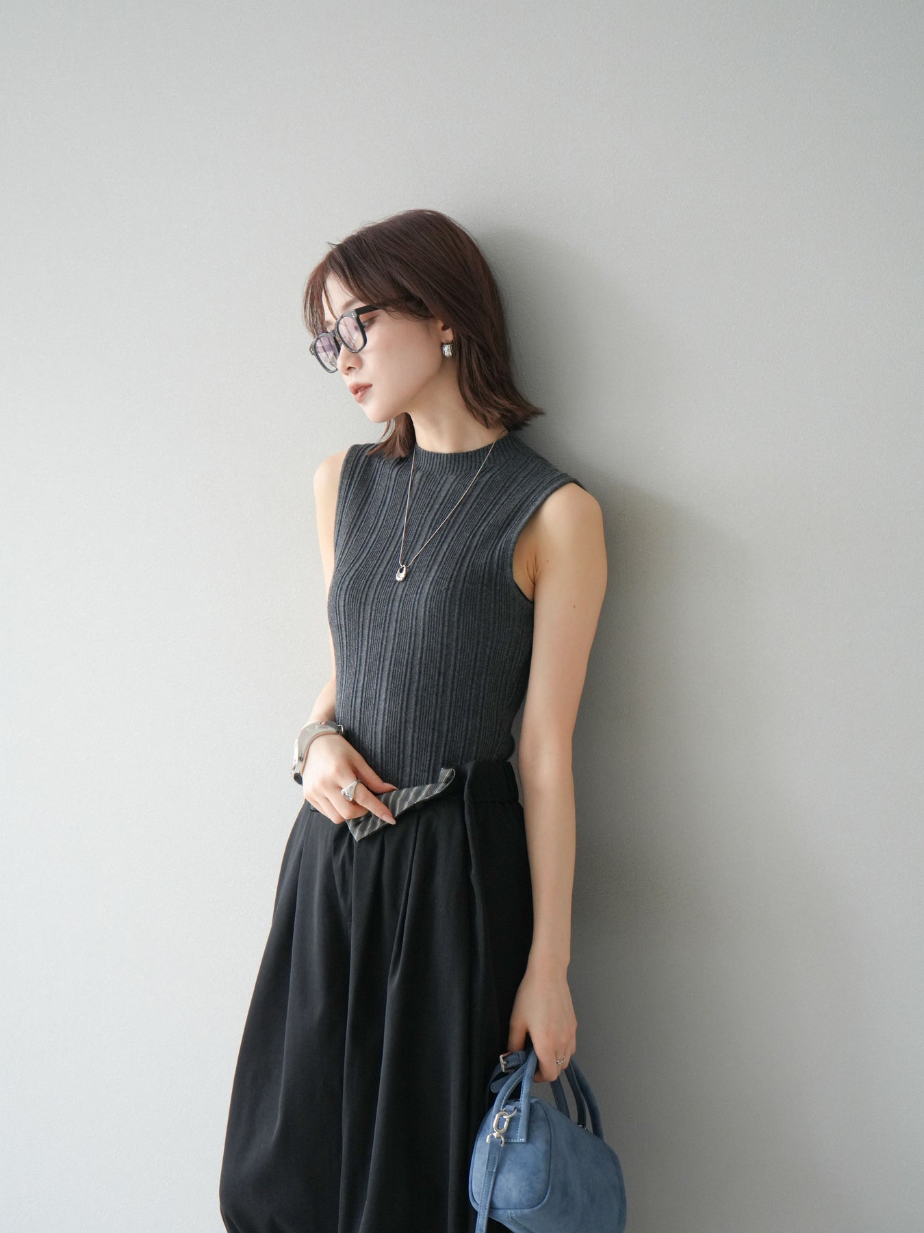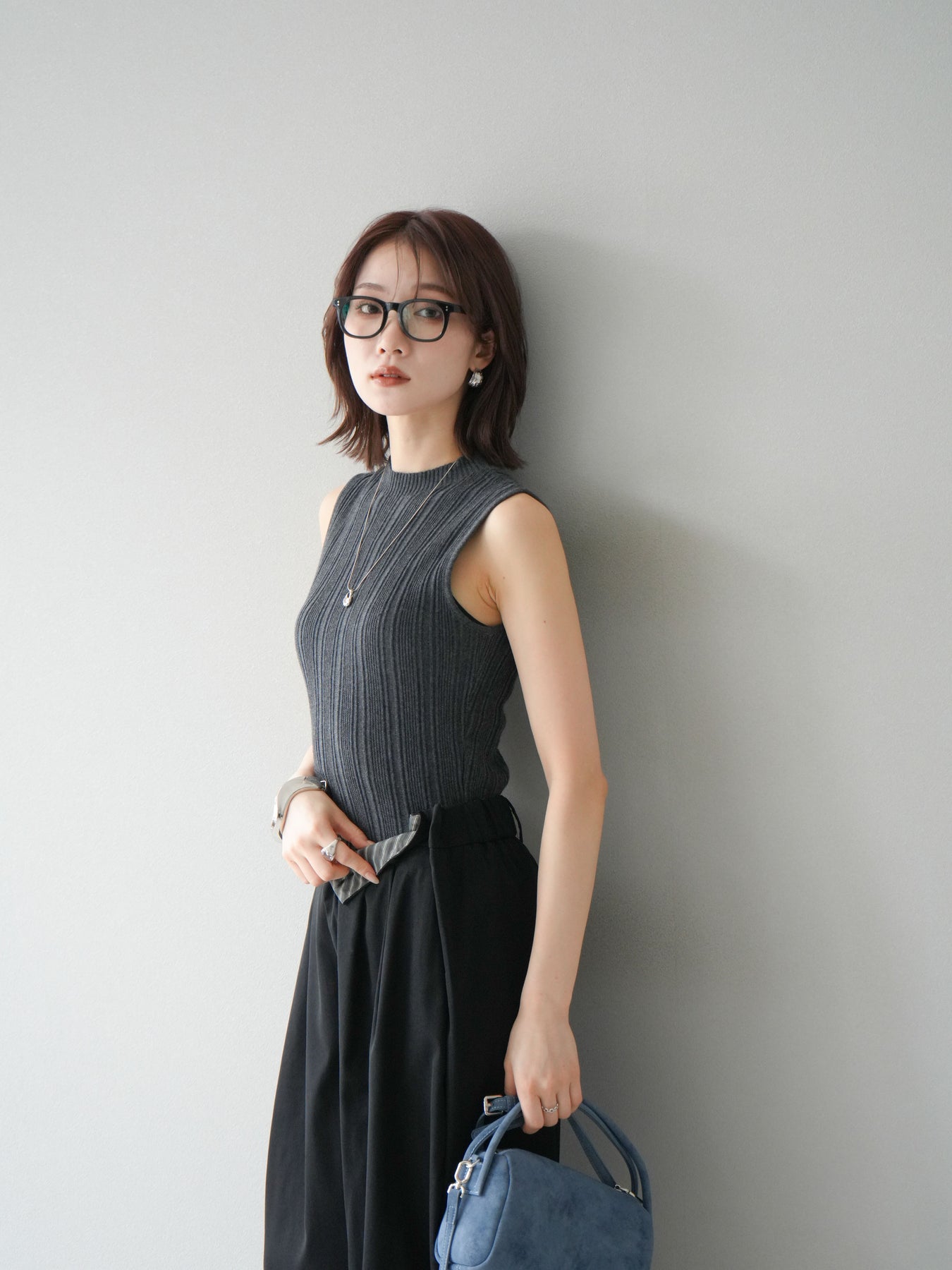[予約]スリーブレスランダムリブニットトップス/グレー