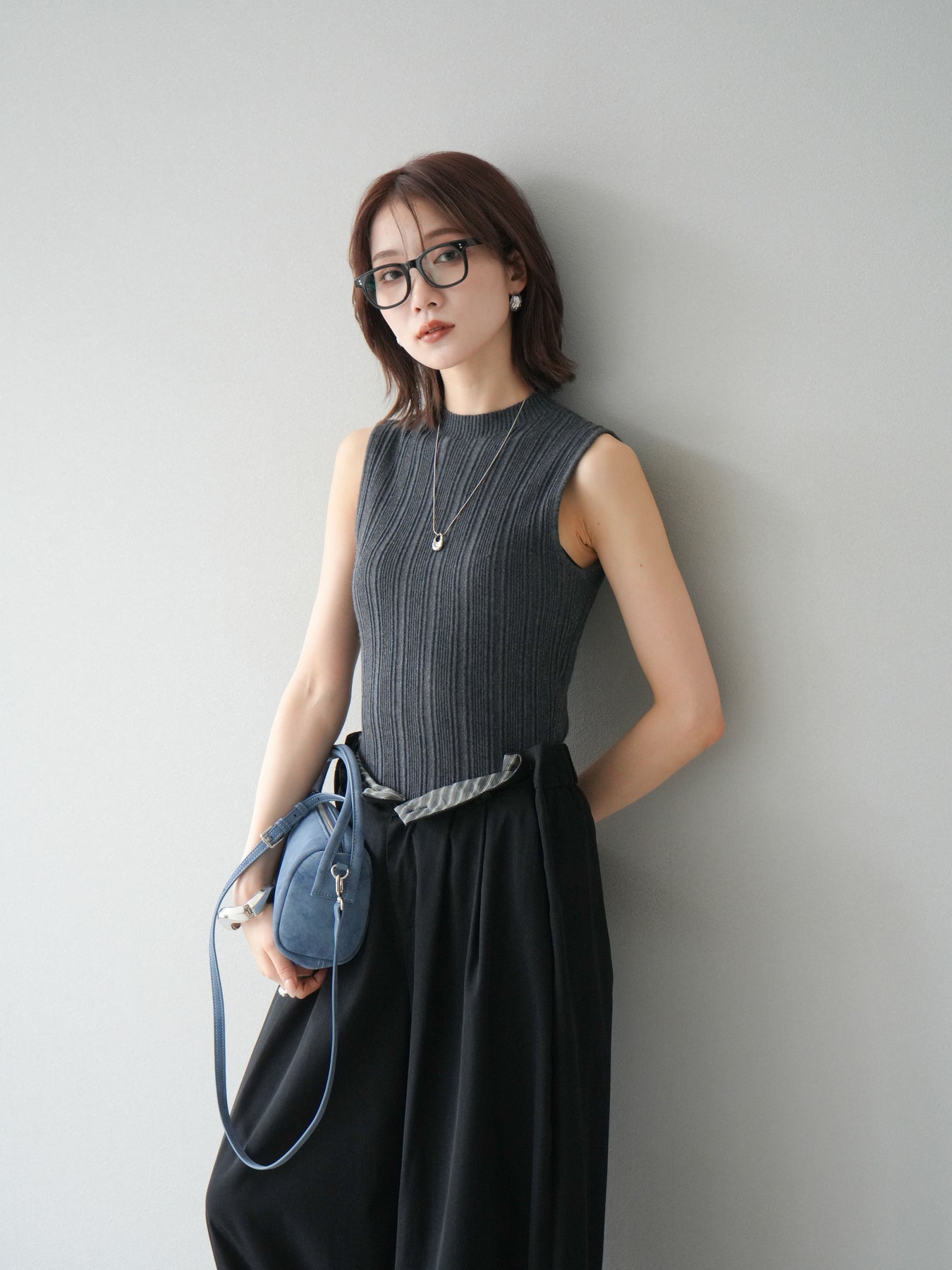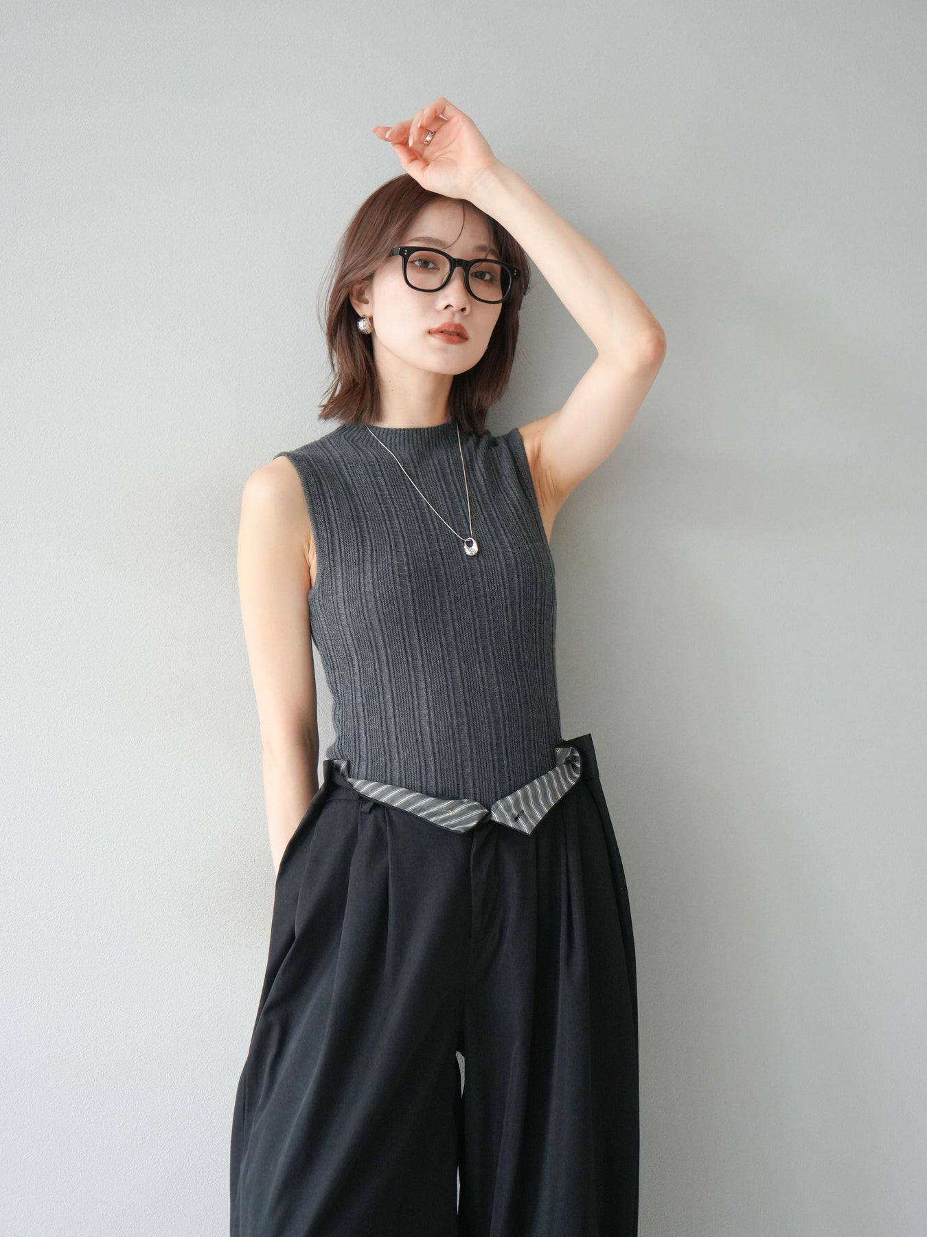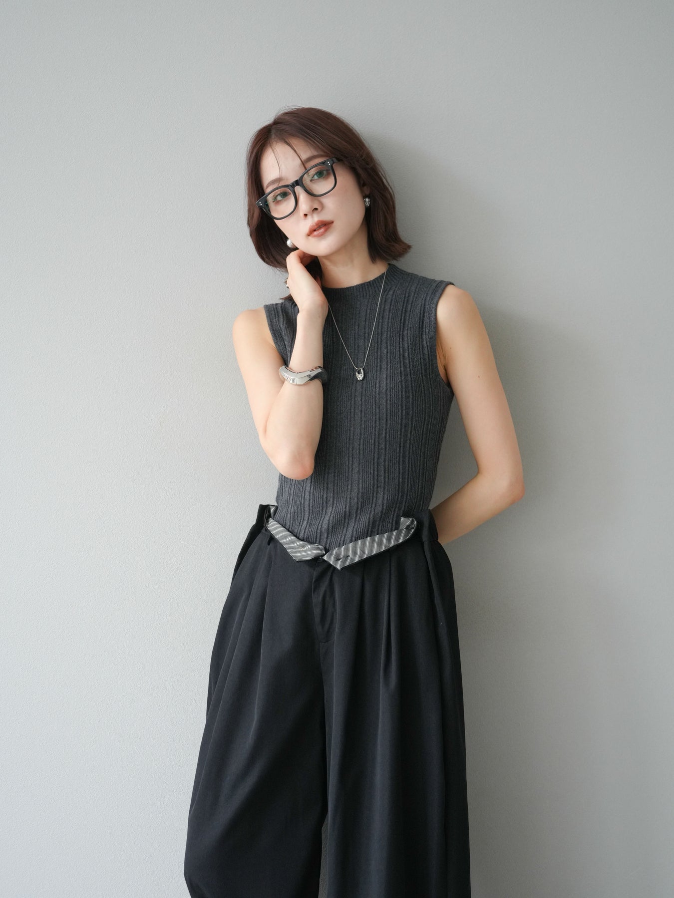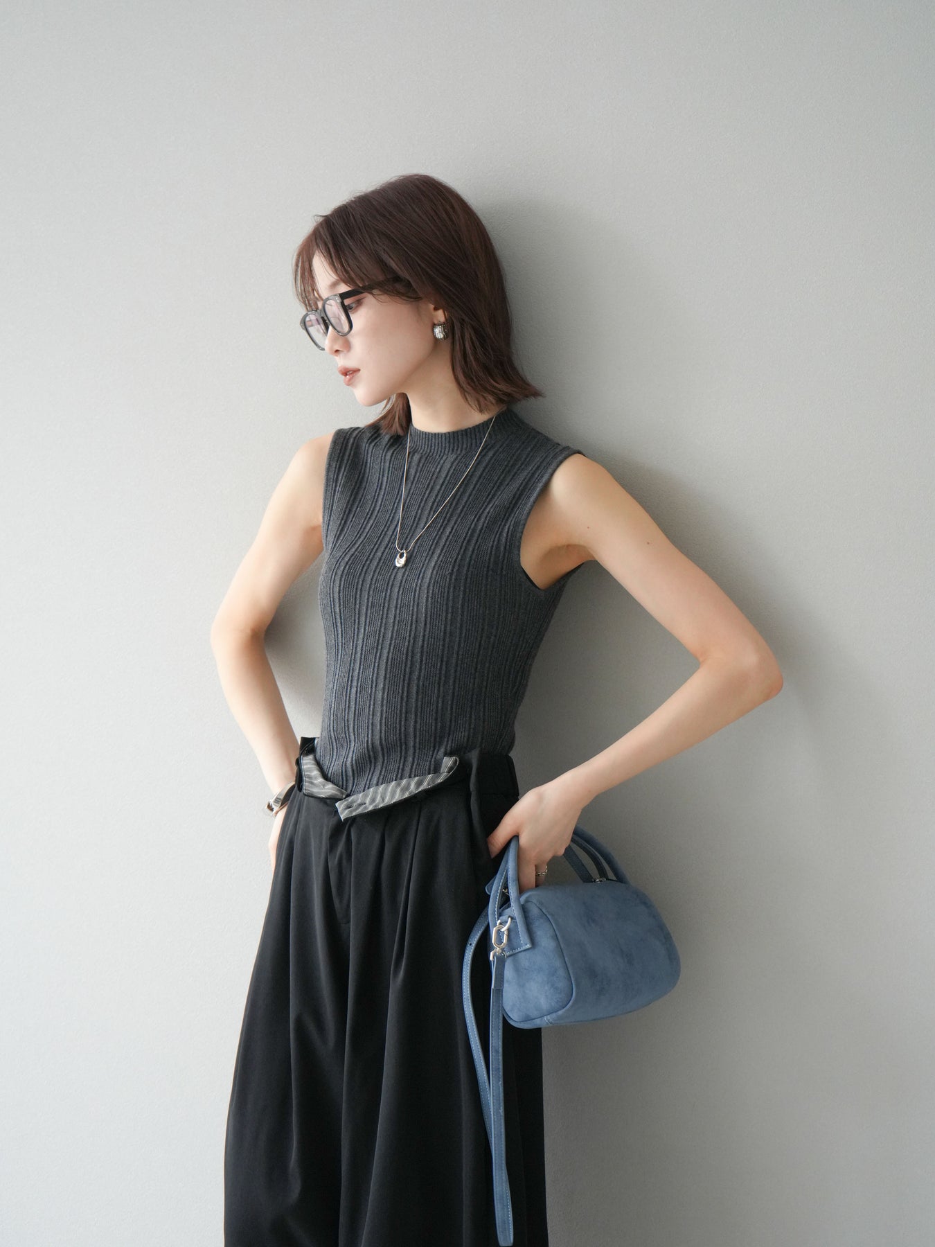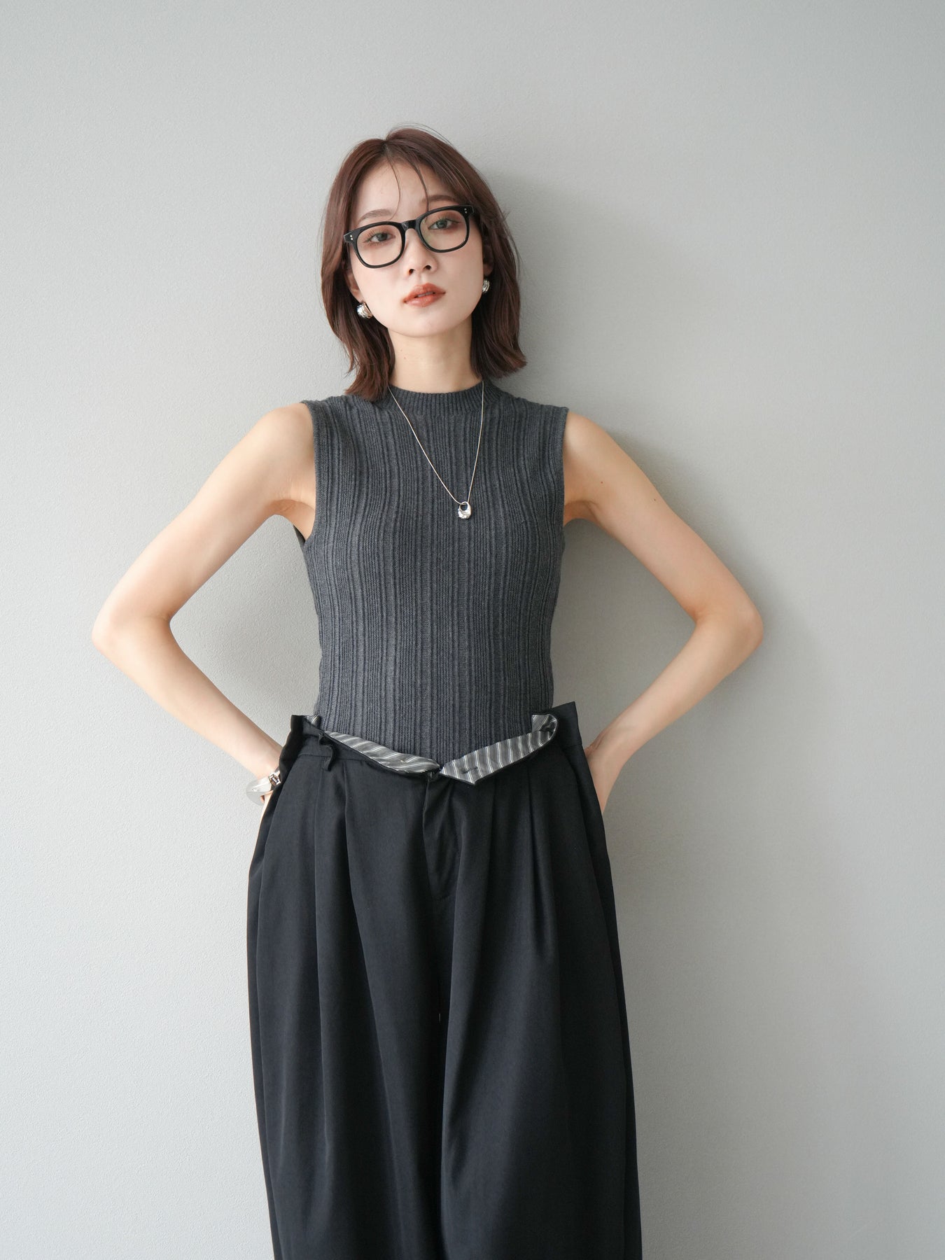 [予約]スリーブレスランダムリブニットトップス/グレー