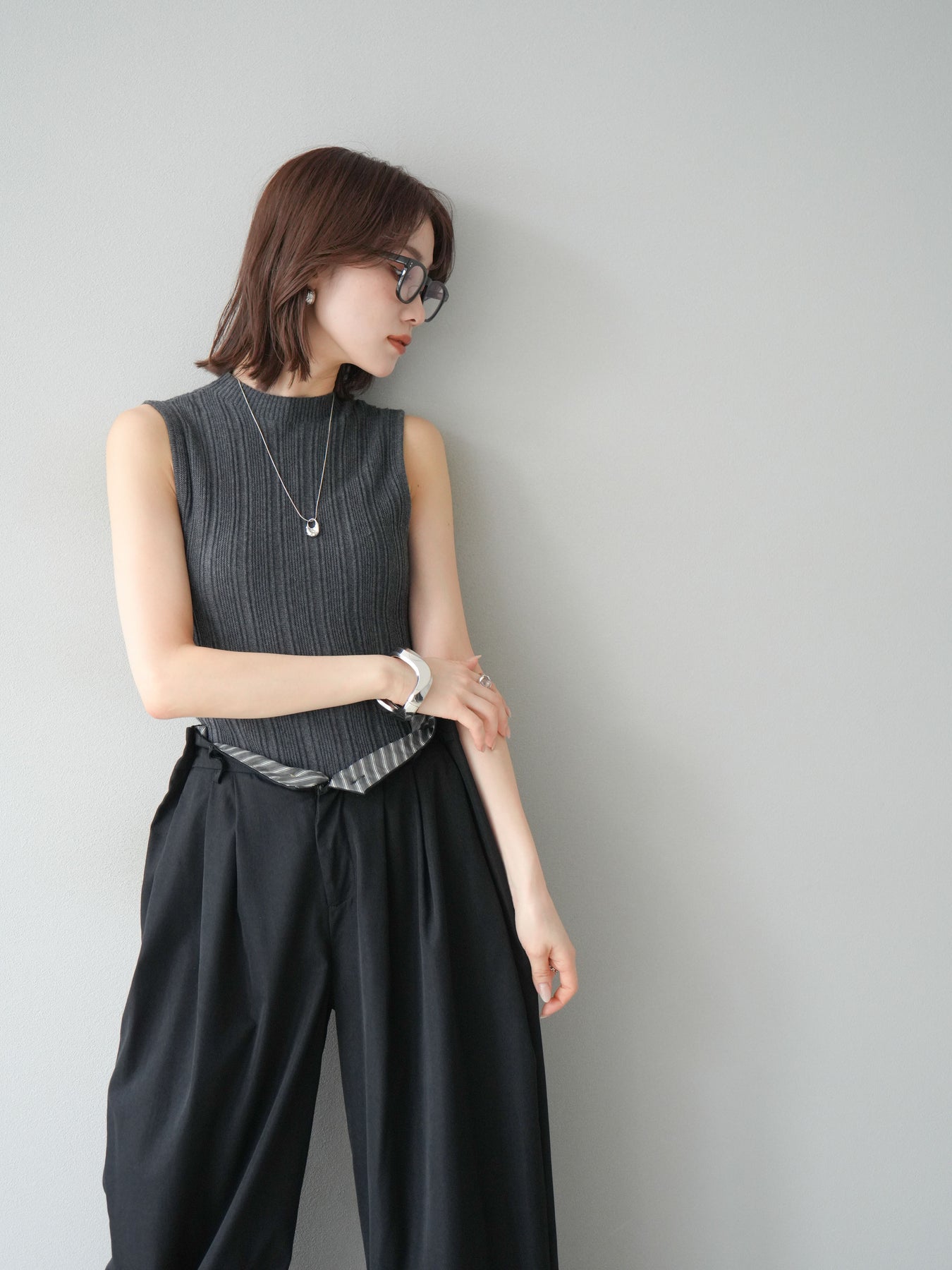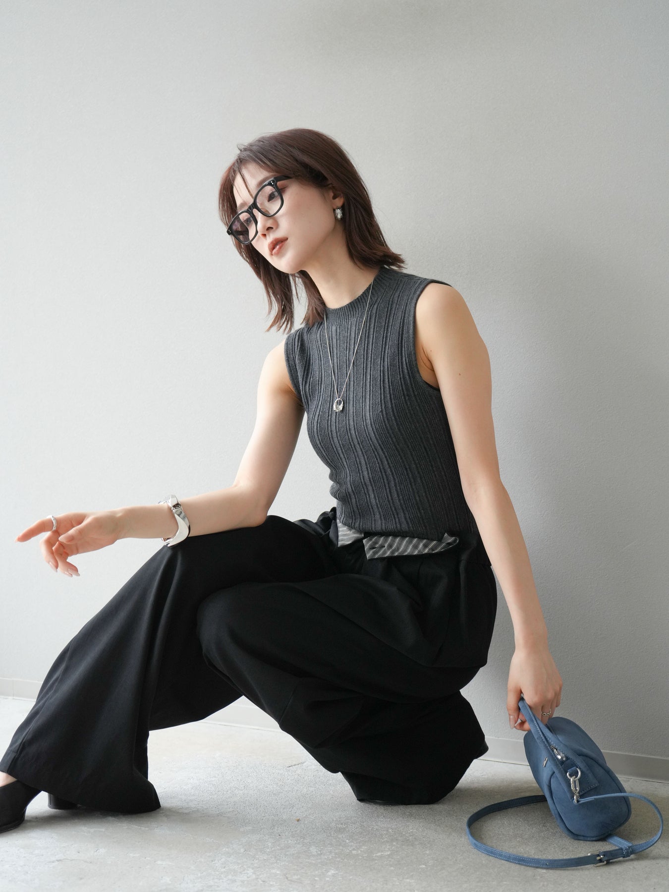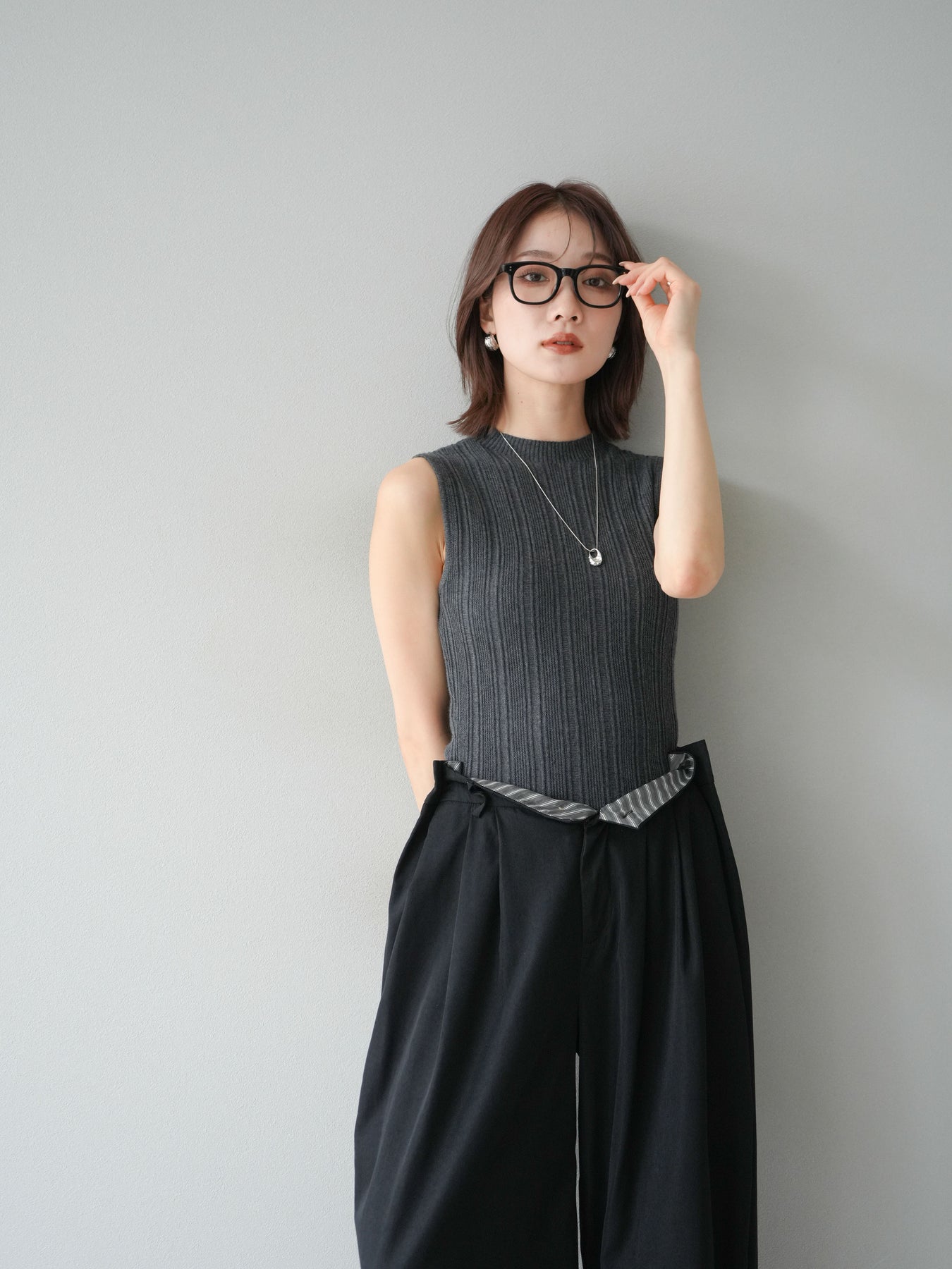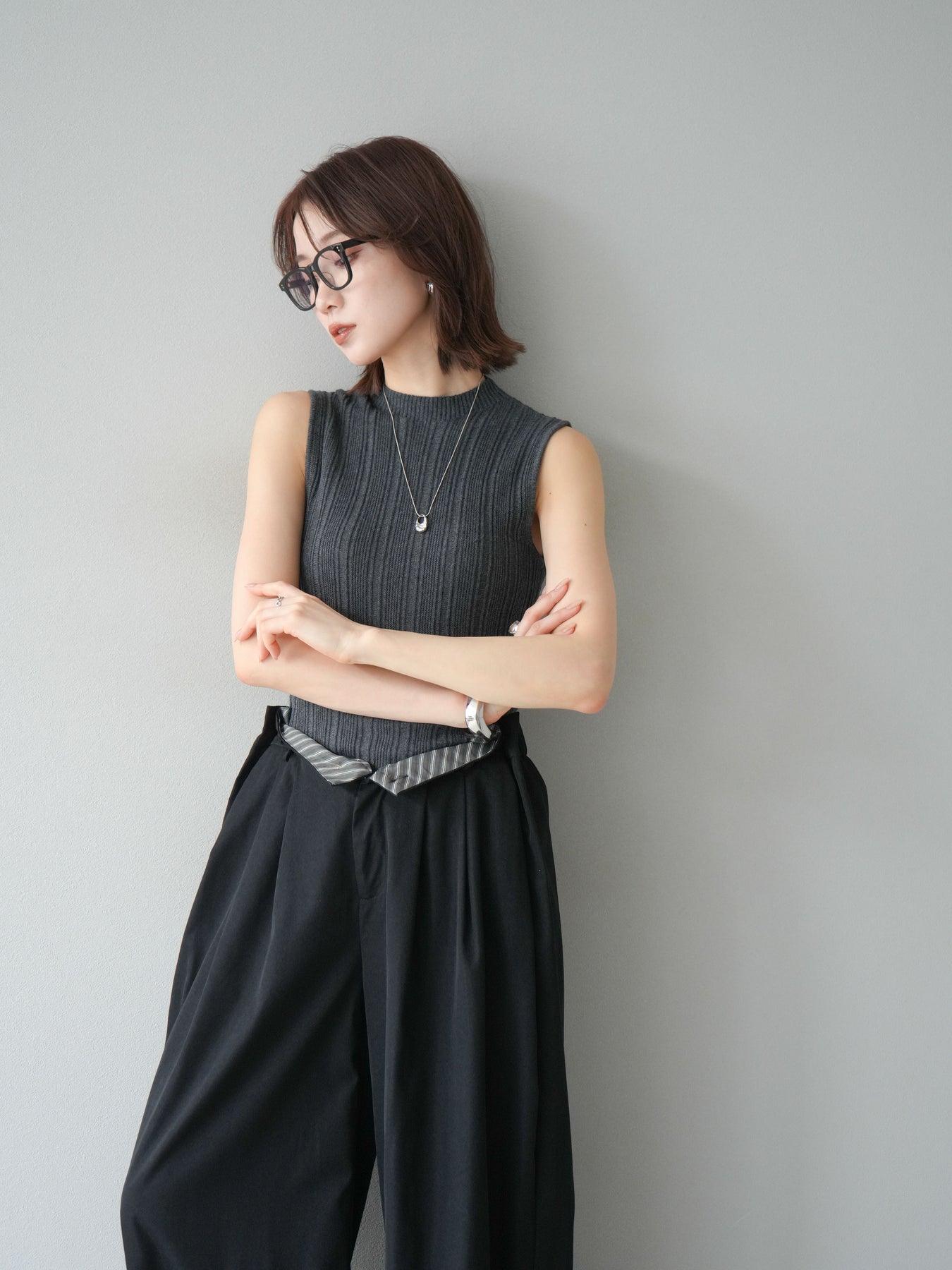 [予約]スリーブレスランダムリブニットトップス/グレー