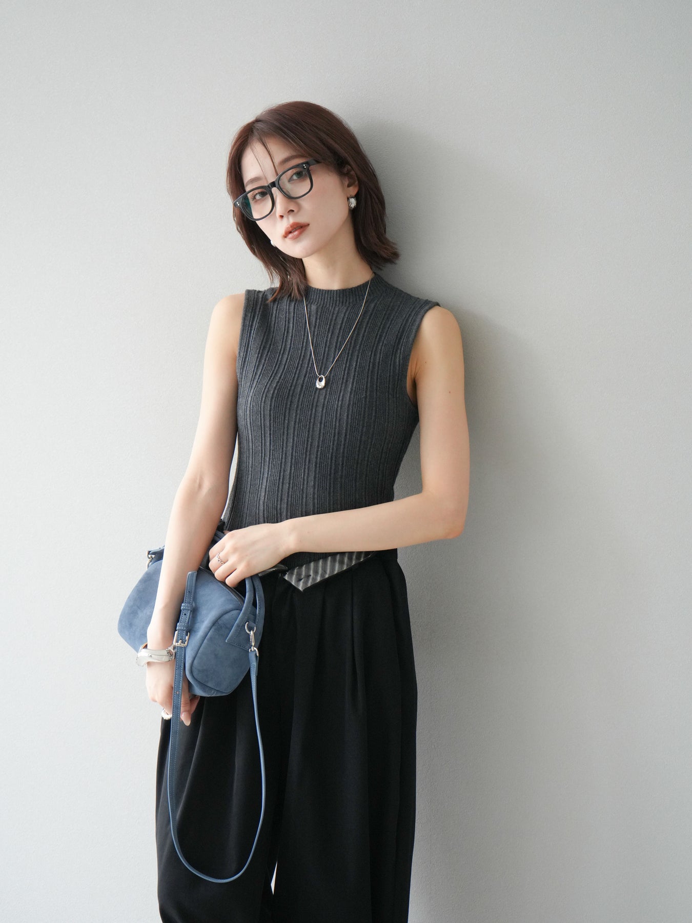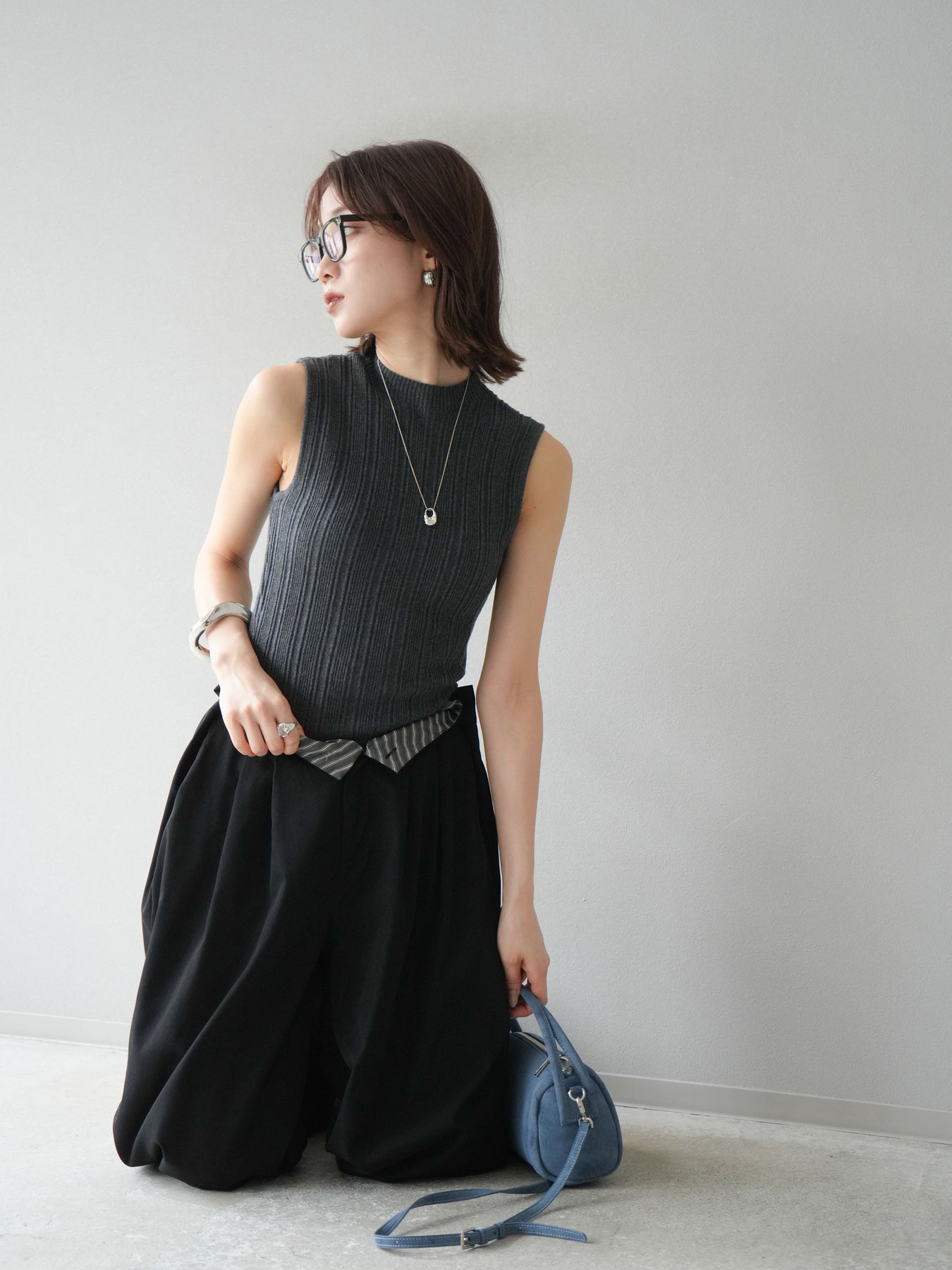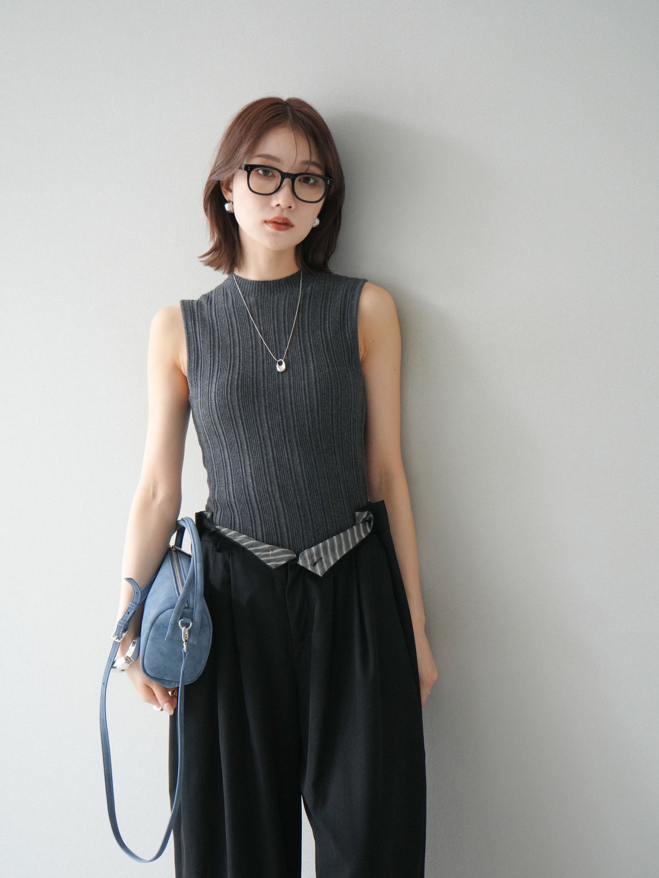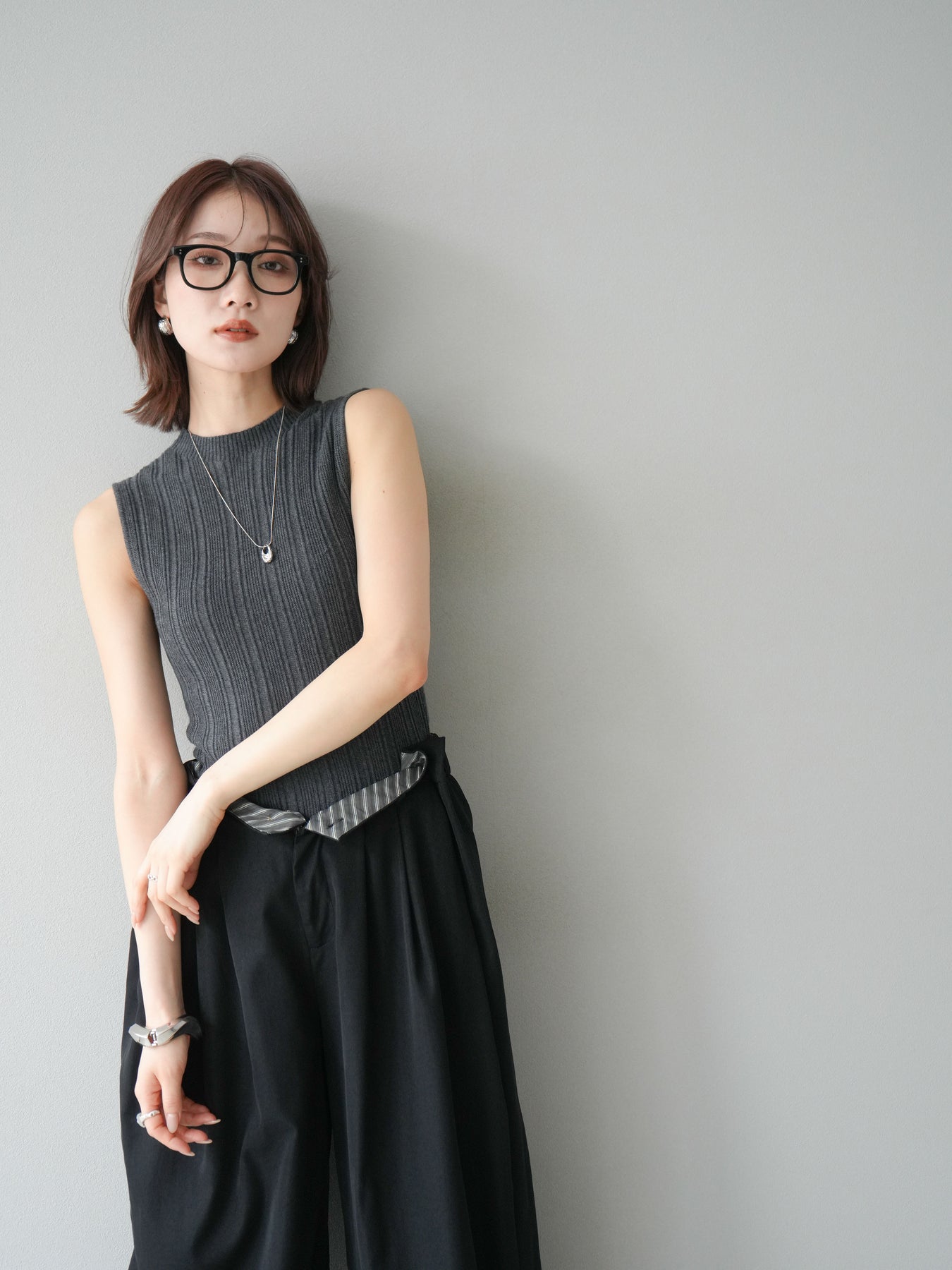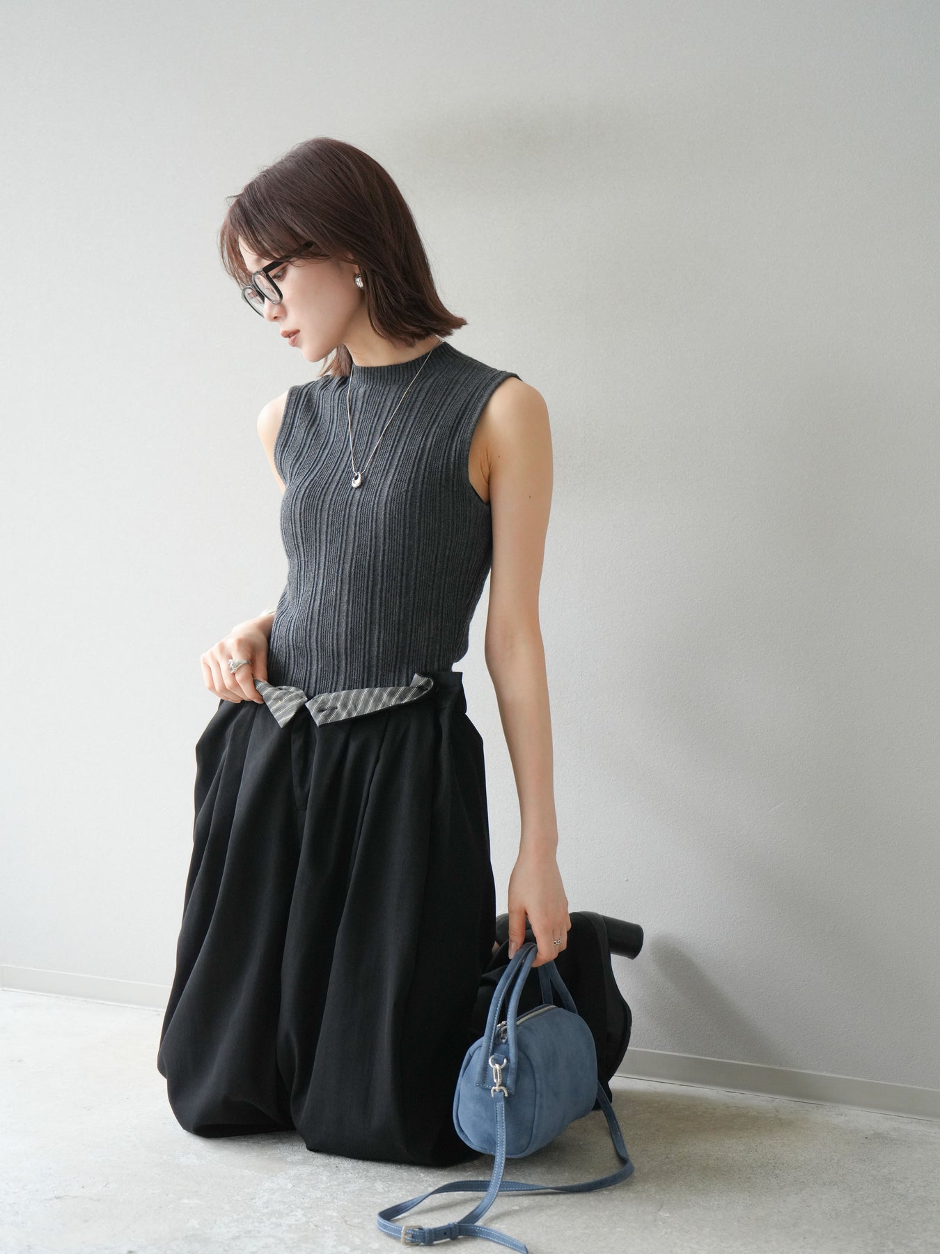 [予約]スリーブレスランダムリブニットトップス/グレー