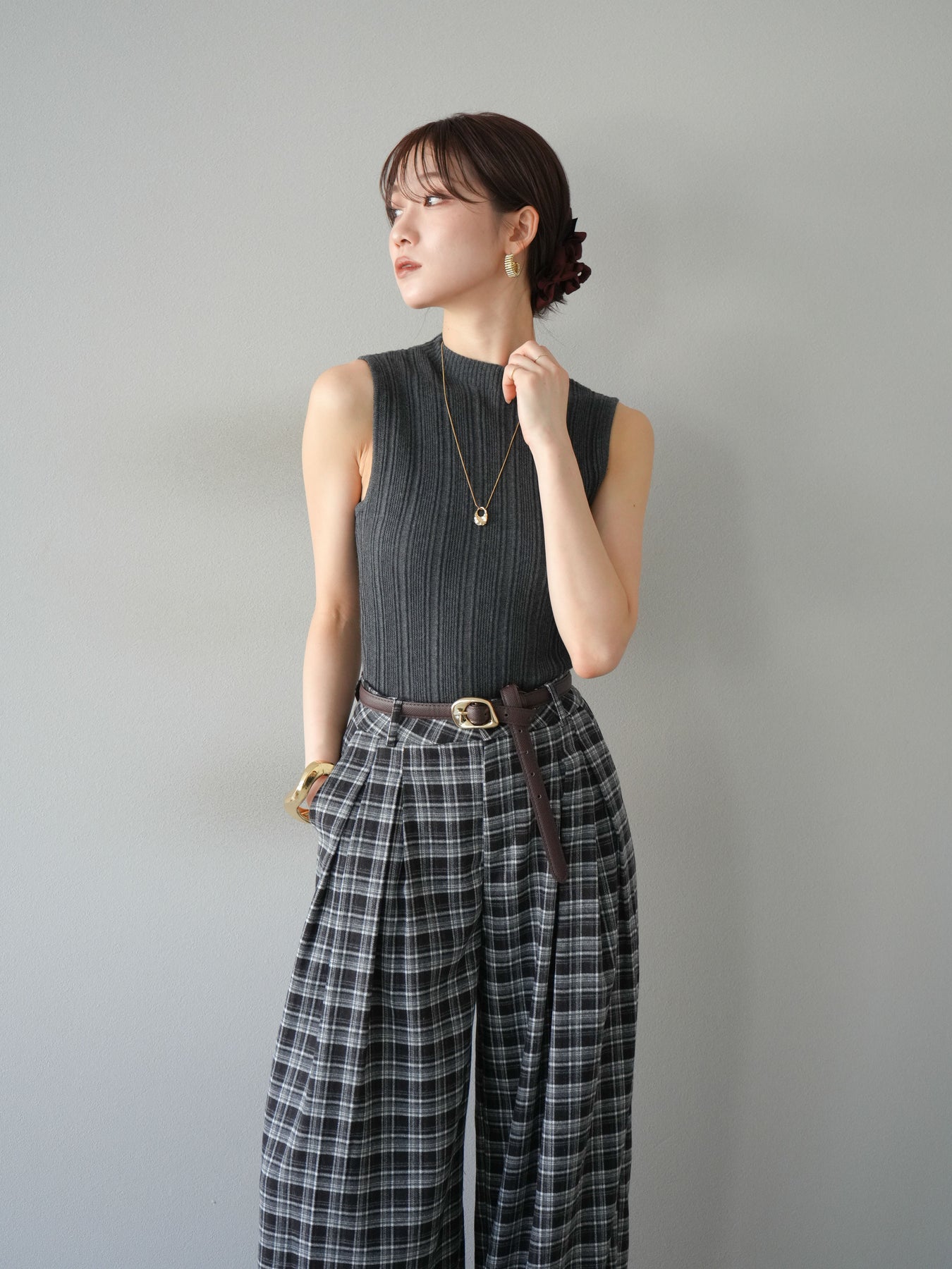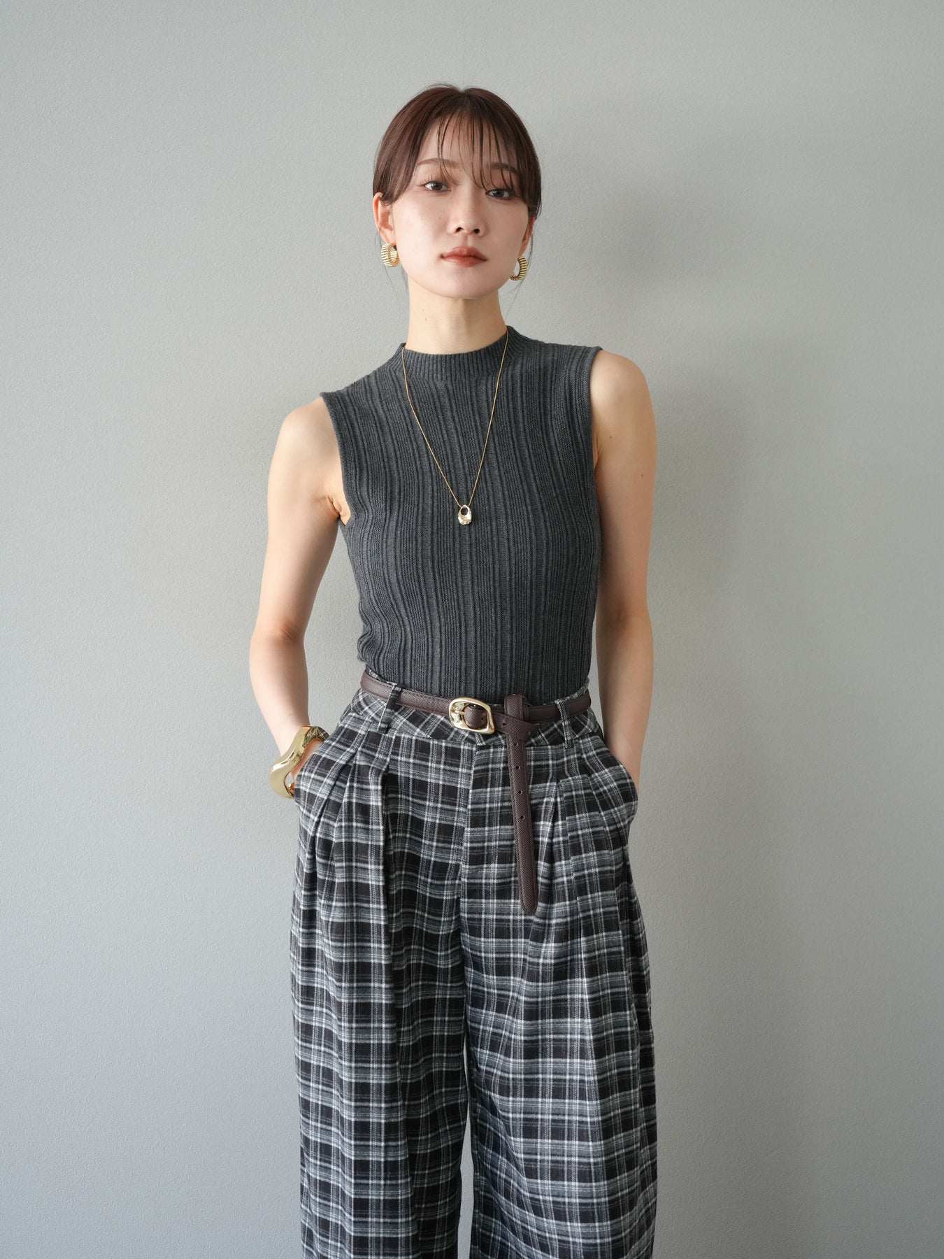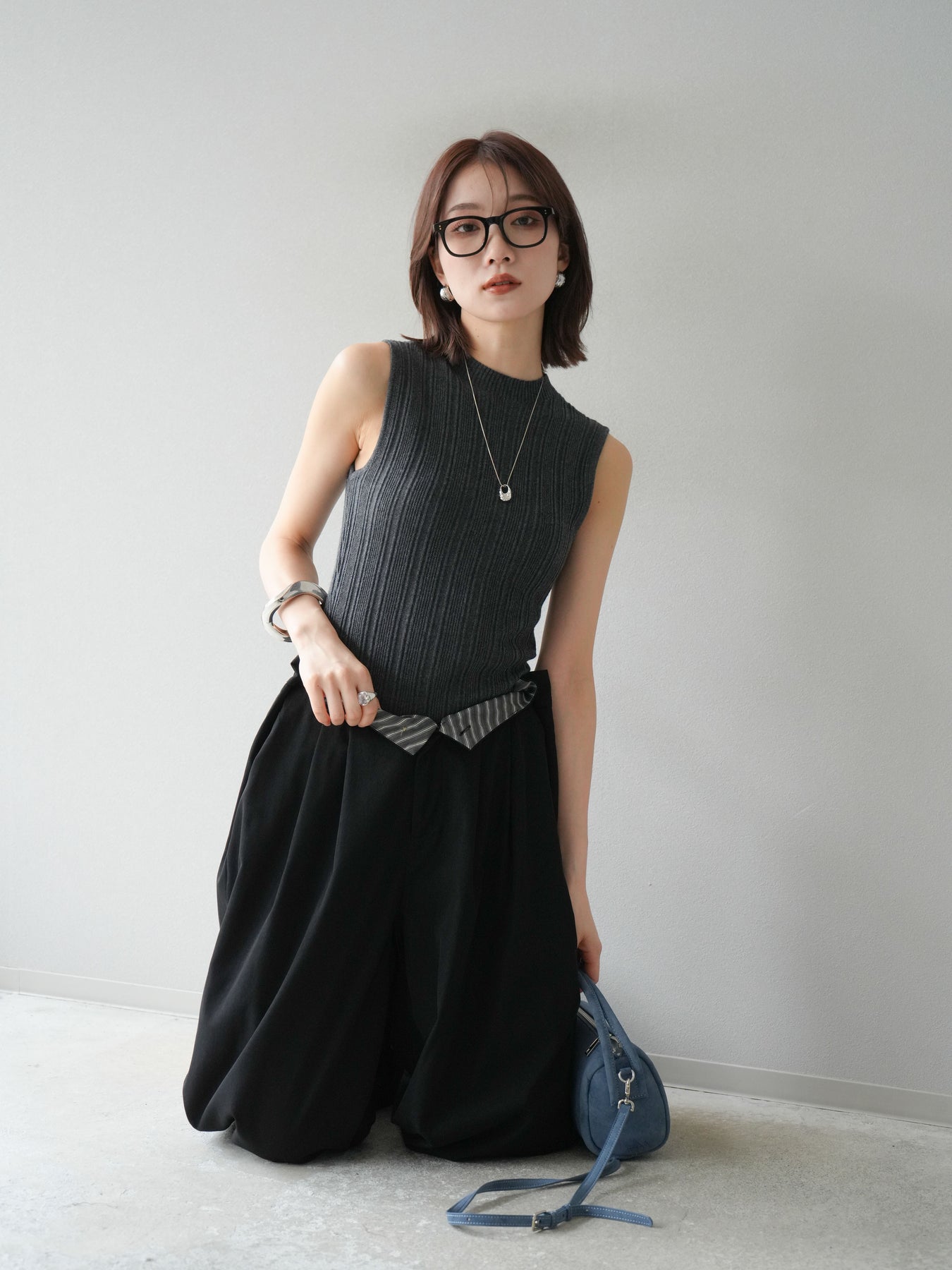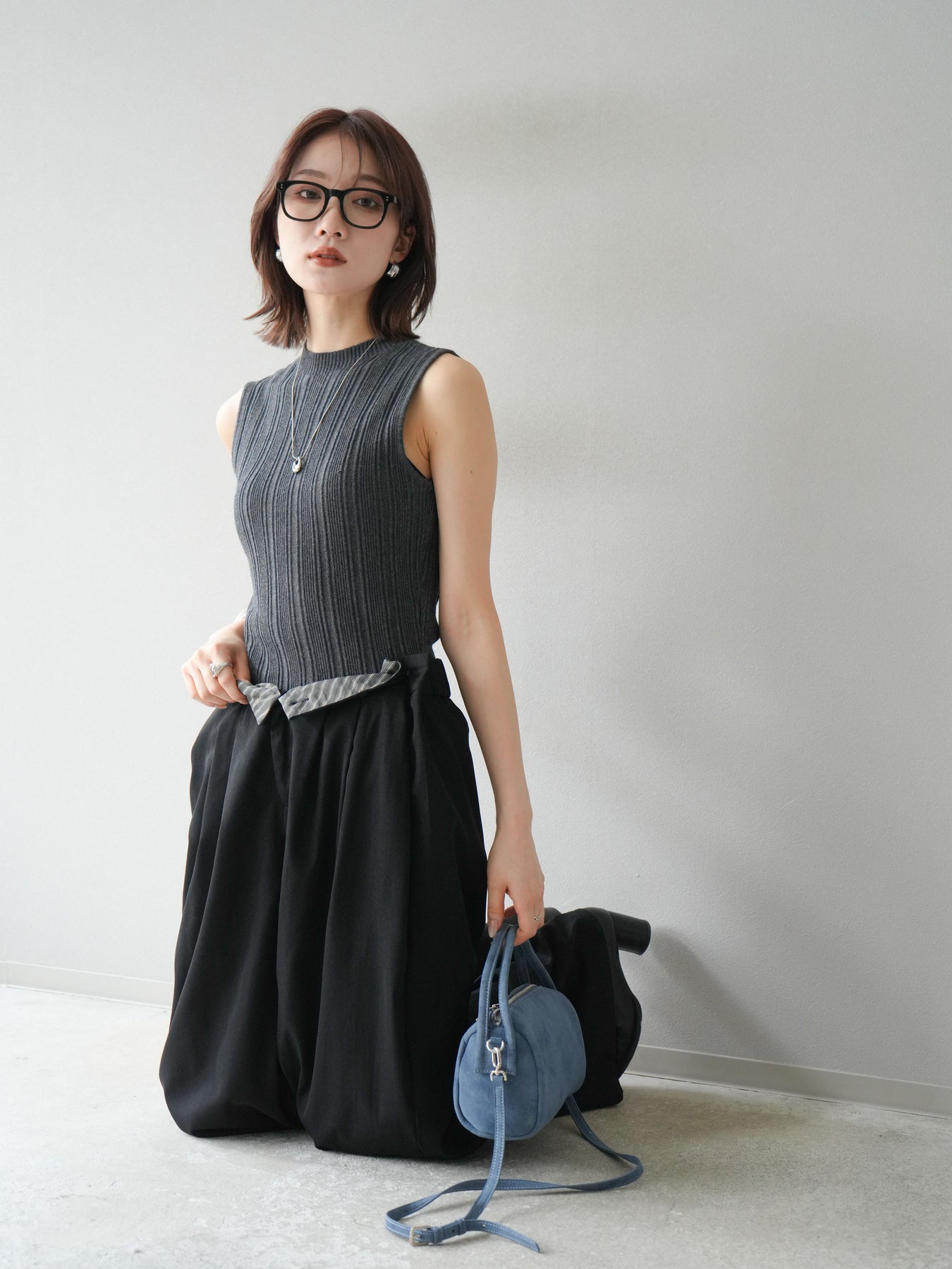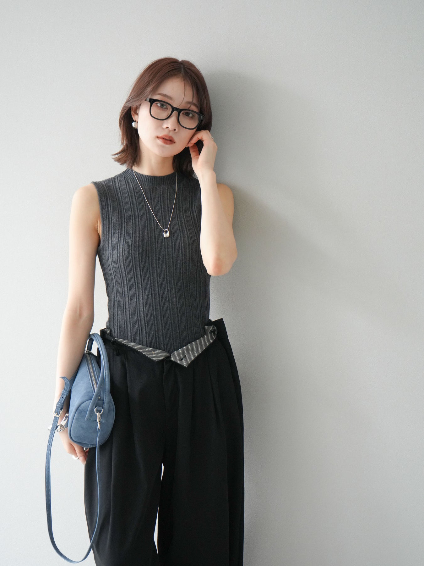 [予約]スリーブレスランダムリブニットトップス/グレー