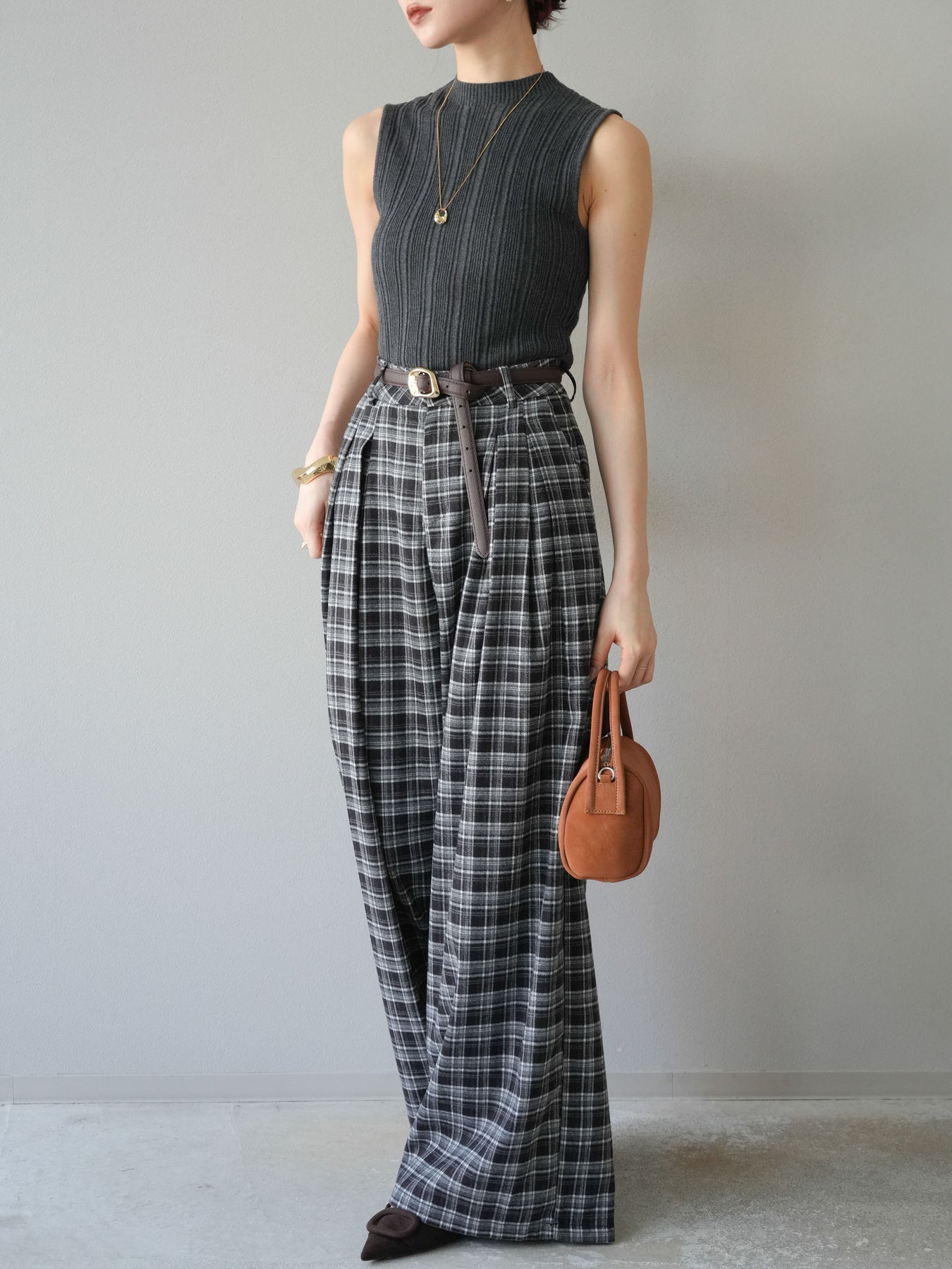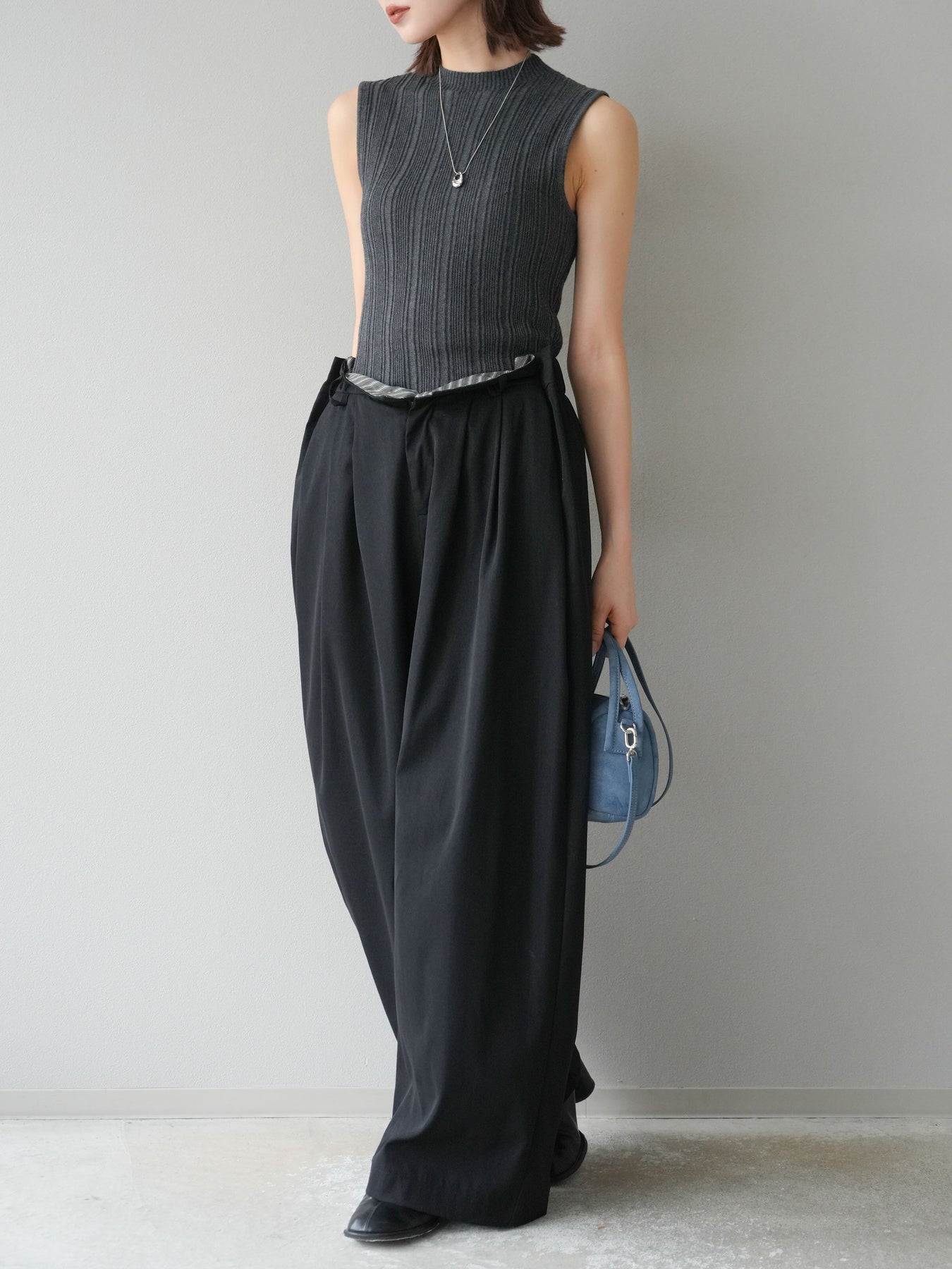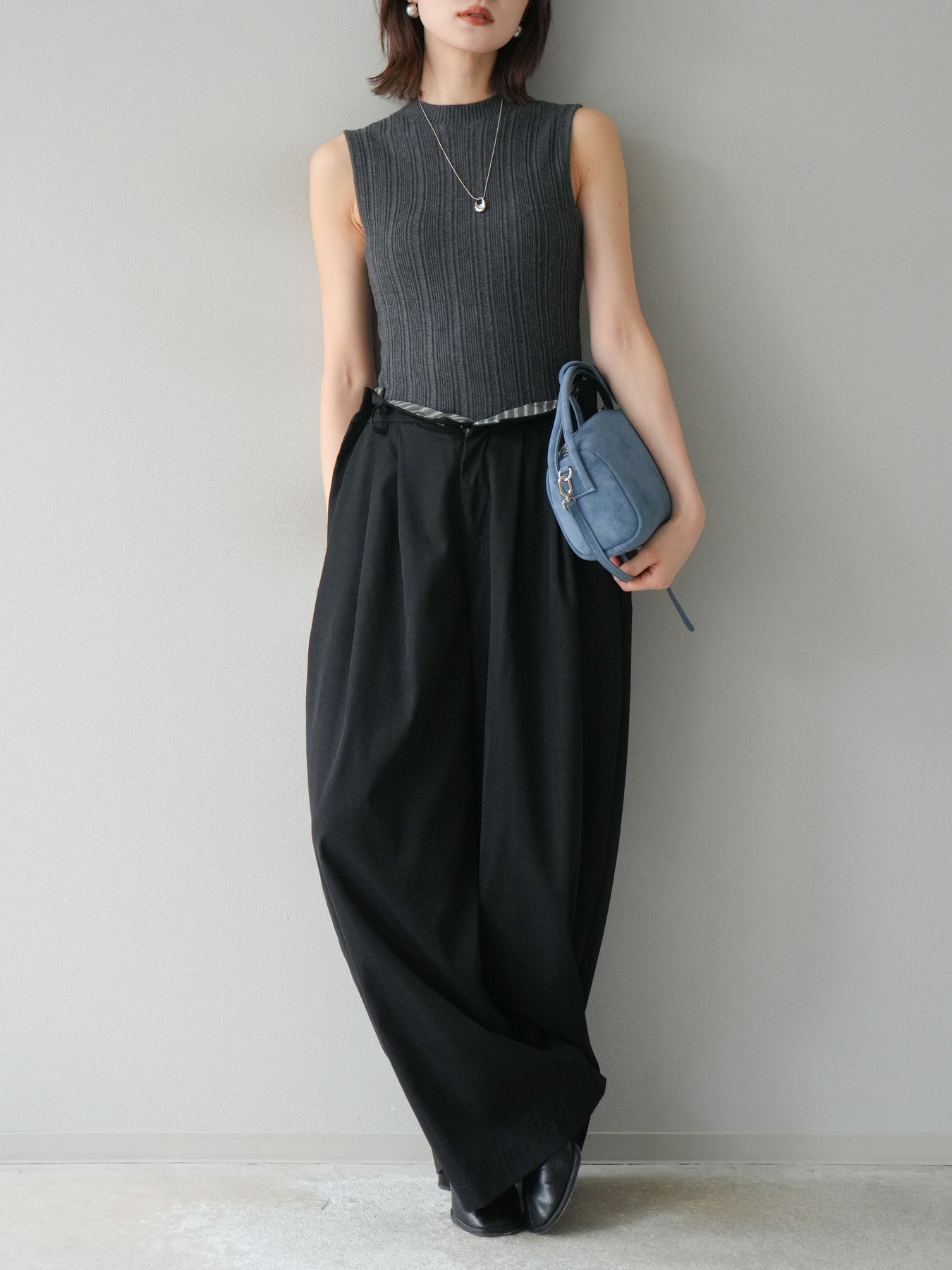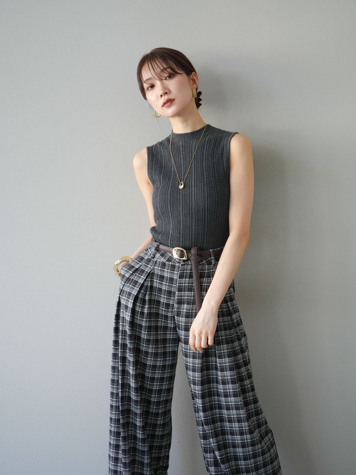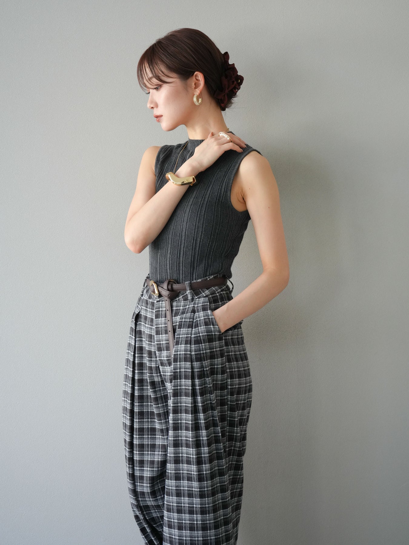 [予約]スリーブレスランダムリブニットトップス/グレー