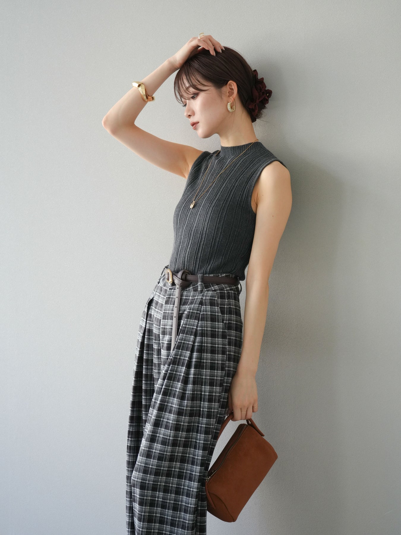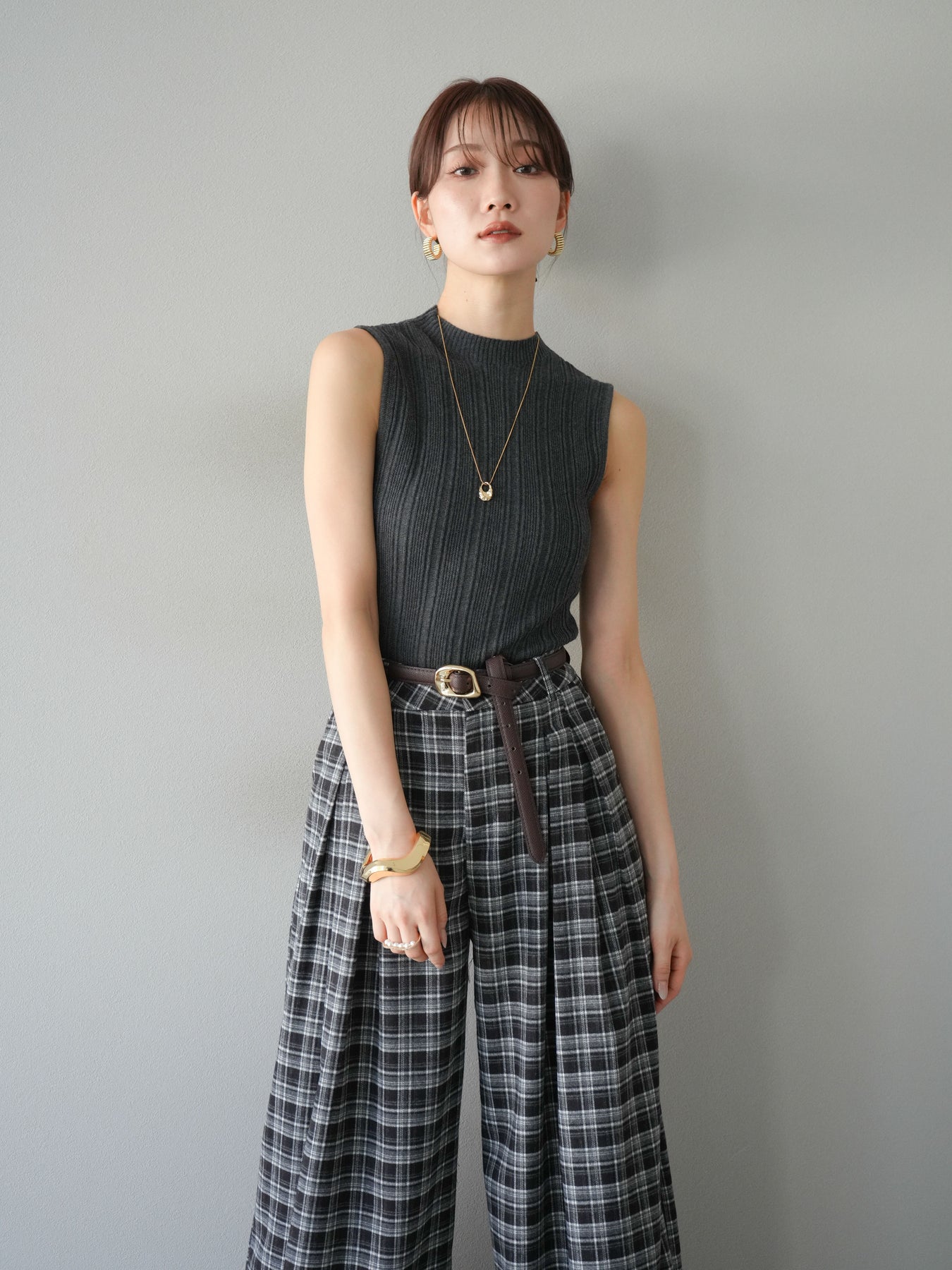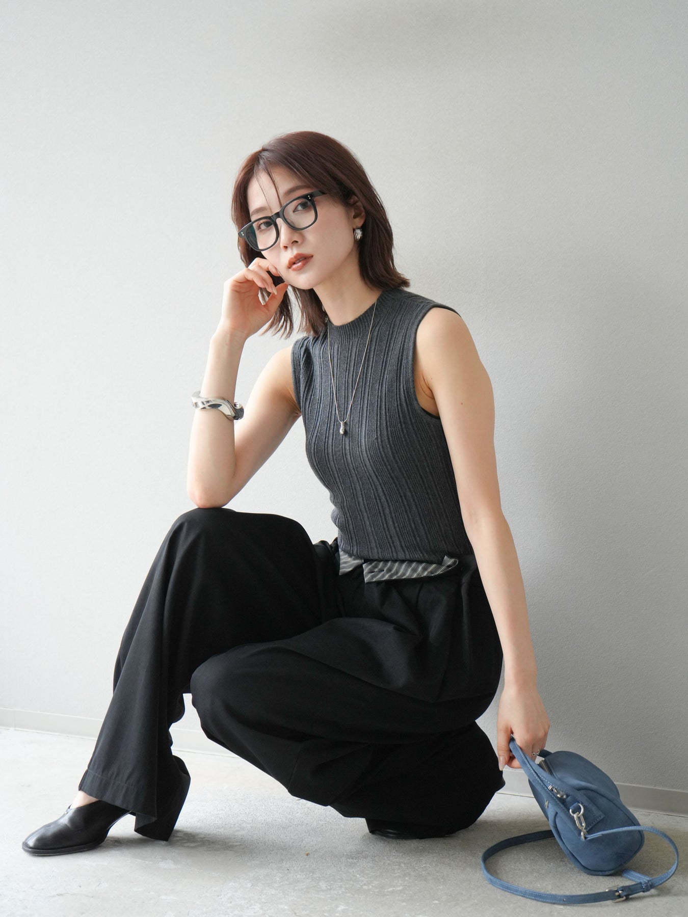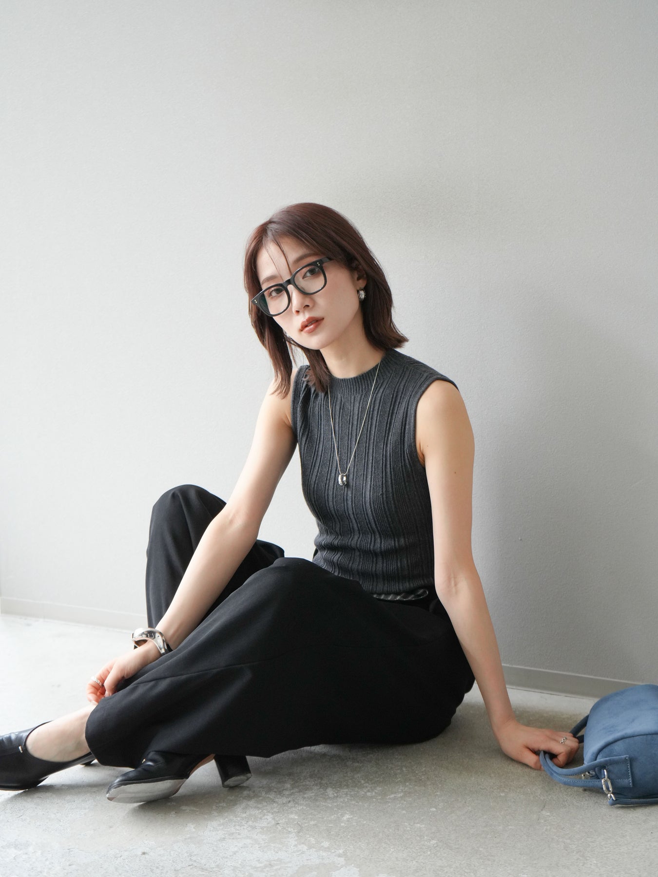 ランダムに編み立てたリブが縦のラインを強調し、すっきりとした印象を与えるスリーブレストップス。程よく身体にフィットするシルエットで、シンプルながらも洗練された雰囲気を演出します。1枚で着るのはもちろん、ジャケットやカーディガンのインナーとしても活躍し、ロングシーズン着回せる万能アイテム。きれいめからカジュアルまで幅広いスタイリングにマッチします。 ※ボトムス、キャミソール(インナー)以外の商品は一律でインナーは付属していません。