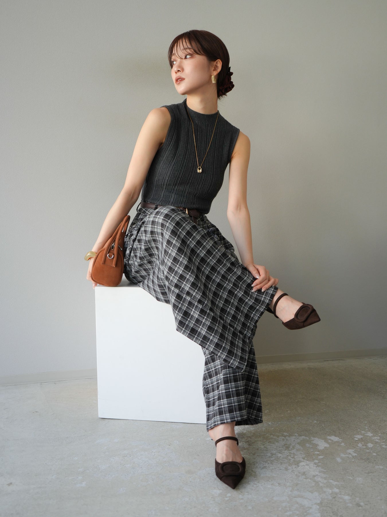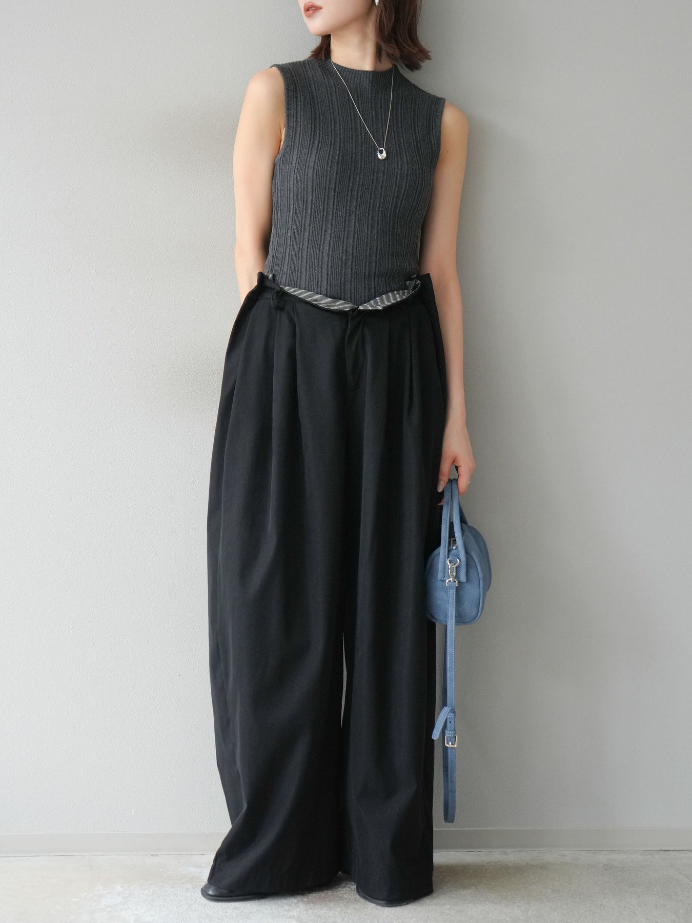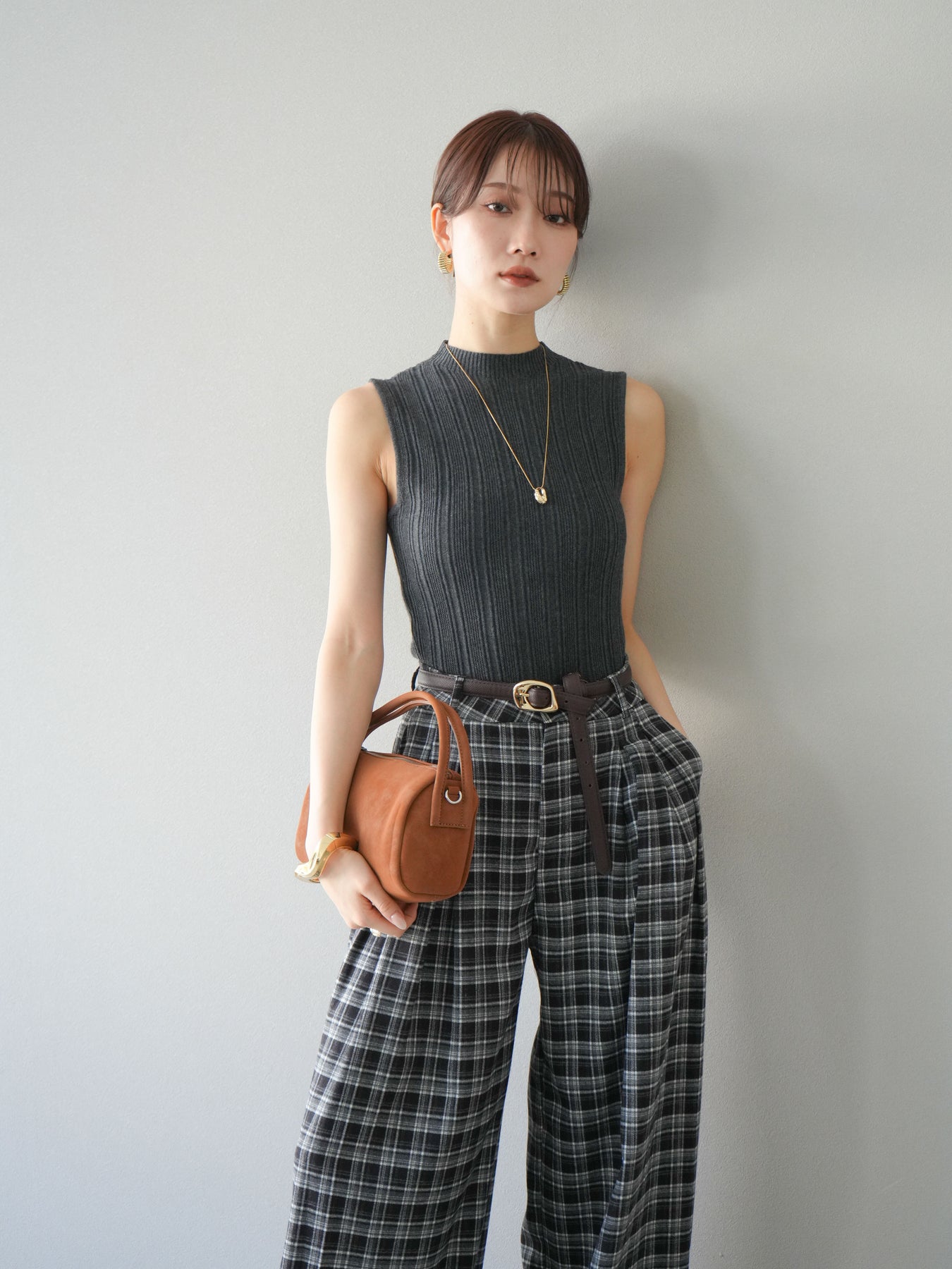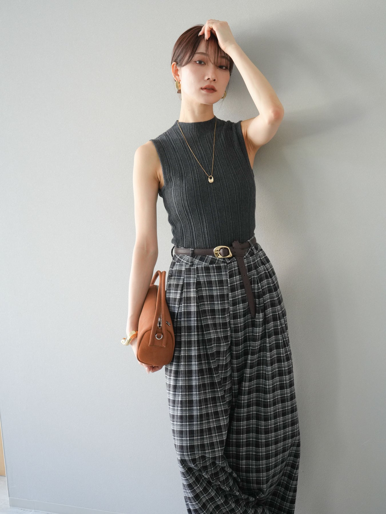 ランダムに編み立てたリブが縦のラインを強調し、すっきりとした印象を与えるスリーブレストップス。程よく身体にフィットするシルエットで、シンプルながらも洗練された雰囲気を演出します。1枚で着るのはもちろん、ジャケットやカーディガンのインナーとしても活躍し、ロングシーズン着回せる万能アイテム。きれいめからカジュアルまで幅広いスタイリングにマッチします。 ※ボトムス、キャミソール(インナー)以外の商品は一律でインナーは付属していません。