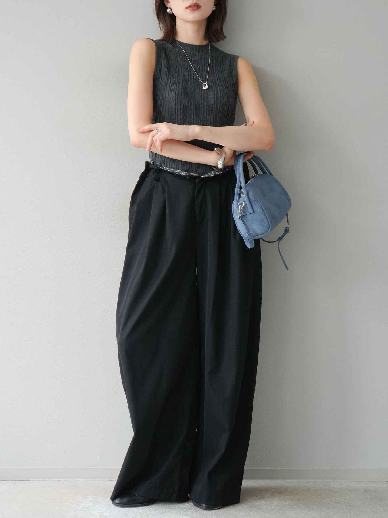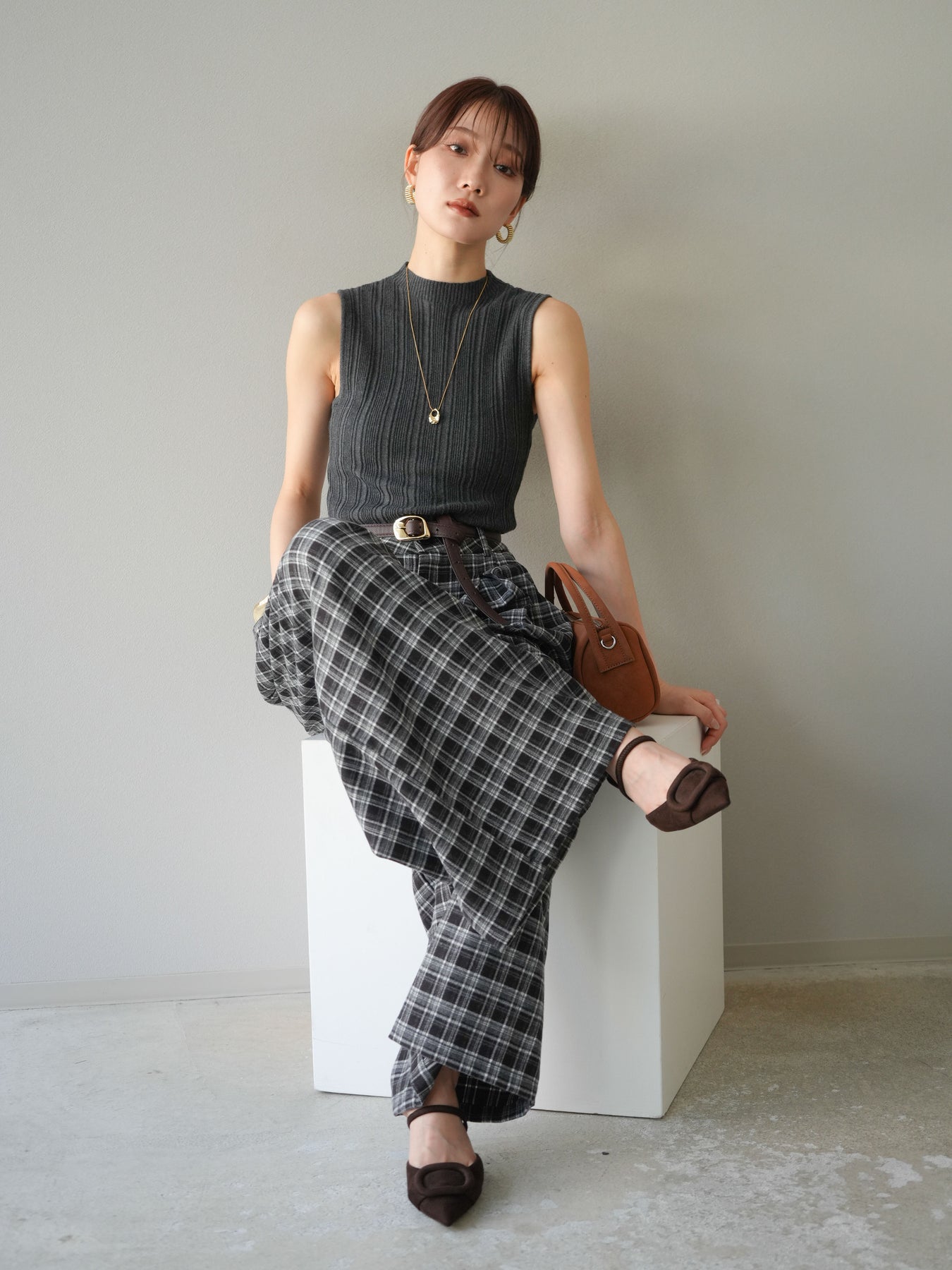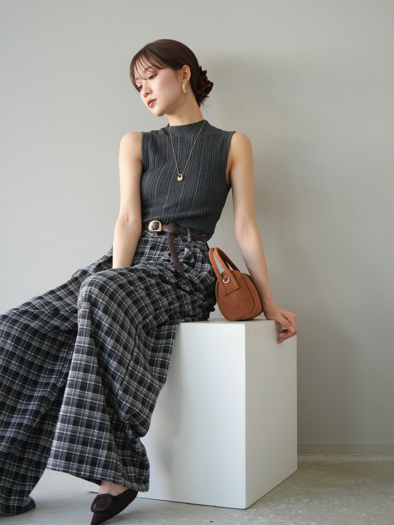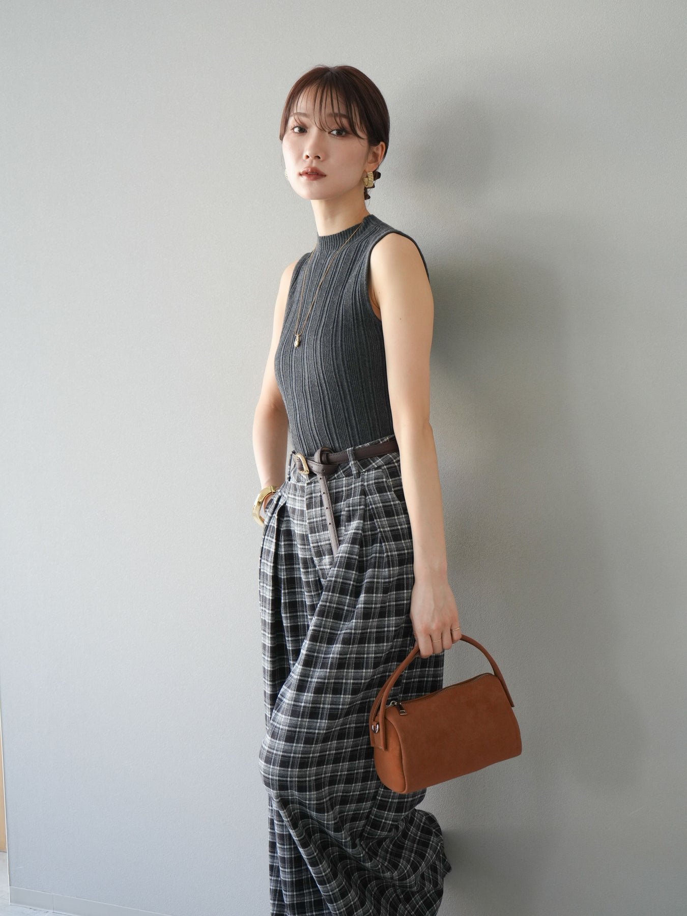 ランダムに編み立てたリブが縦のラインを強調し、すっきりとした印象を与えるスリーブレストップス。程よく身体にフィットするシルエットで、シンプルながらも洗練された雰囲気を演出します。1枚で着るのはもちろん、ジャケットやカーディガンのインナーとしても活躍し、ロングシーズン着回せる万能アイテム。きれいめからカジュアルまで幅広いスタイリングにマッチします。 ※ボトムス、キャミソール(インナー)以外の商品は一律でインナーは付属していません。