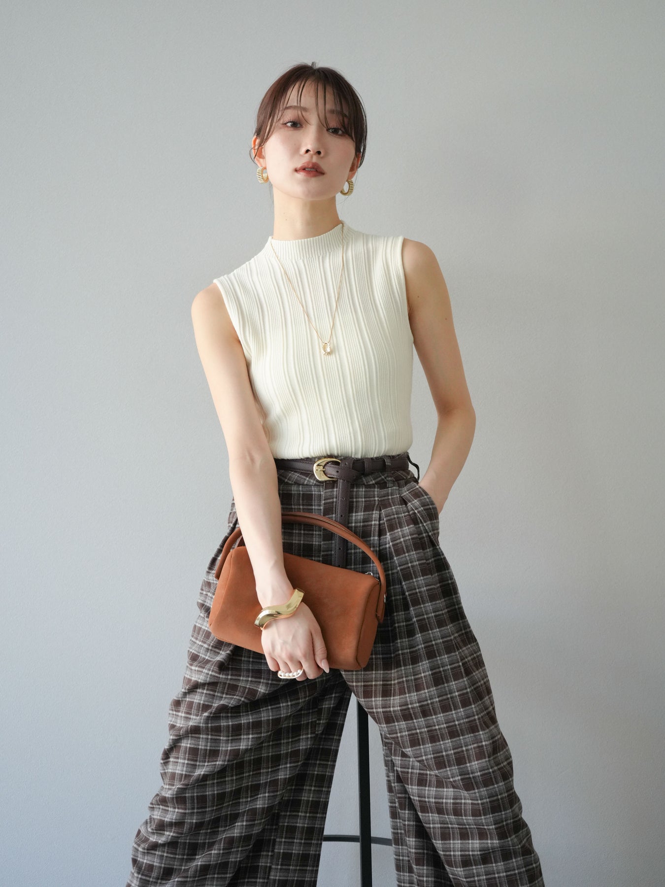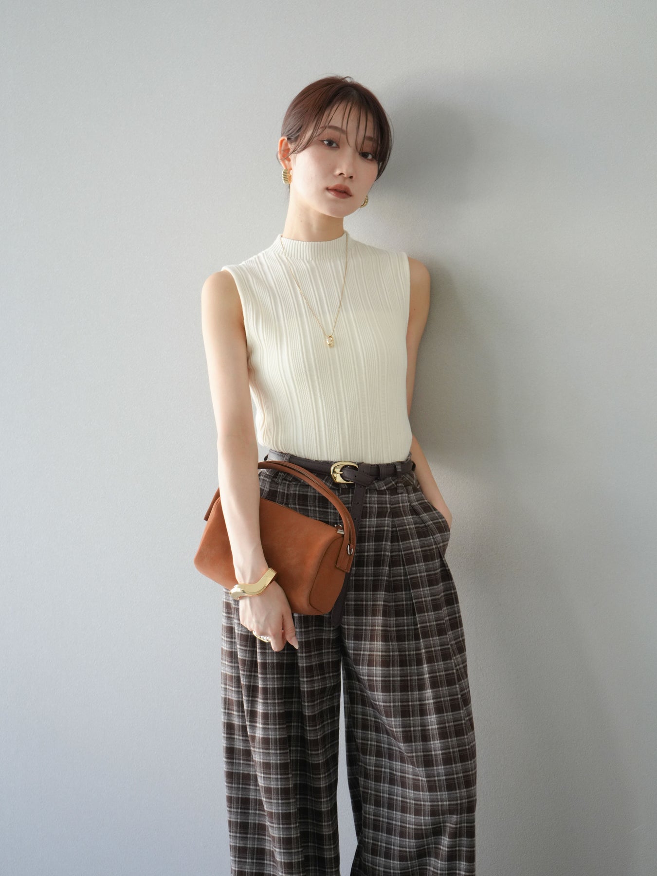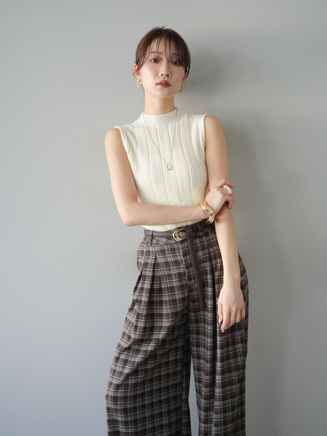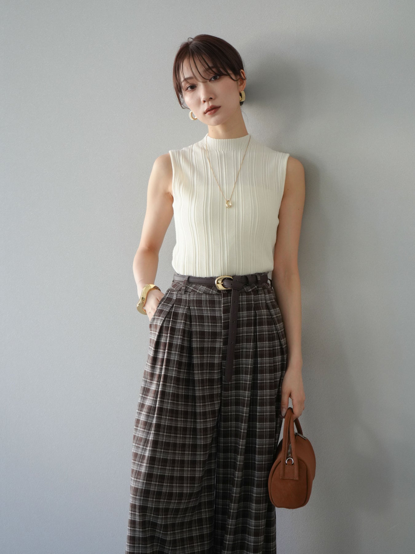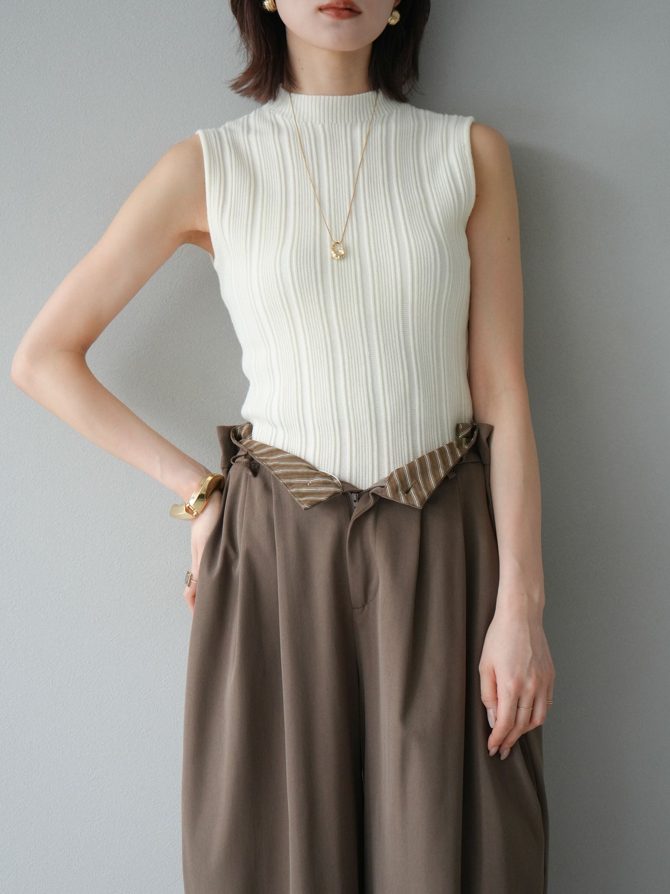 ランダムに編み立てたリブが縦のラインを強調し、すっきりとした印象を与えるスリーブレストップス。程よく身体にフィットするシルエットで、シンプルながらも洗練された雰囲気を演出します。1枚で着るのはもちろん、ジャケットやカーディガンのインナーとしても活躍し、ロングシーズン着回せる万能アイテム。きれいめからカジュアルまで幅広いスタイリングにマッチします。 ※ボトムス、キャミソール(インナー)以外の商品は一律でインナーは付属していません。