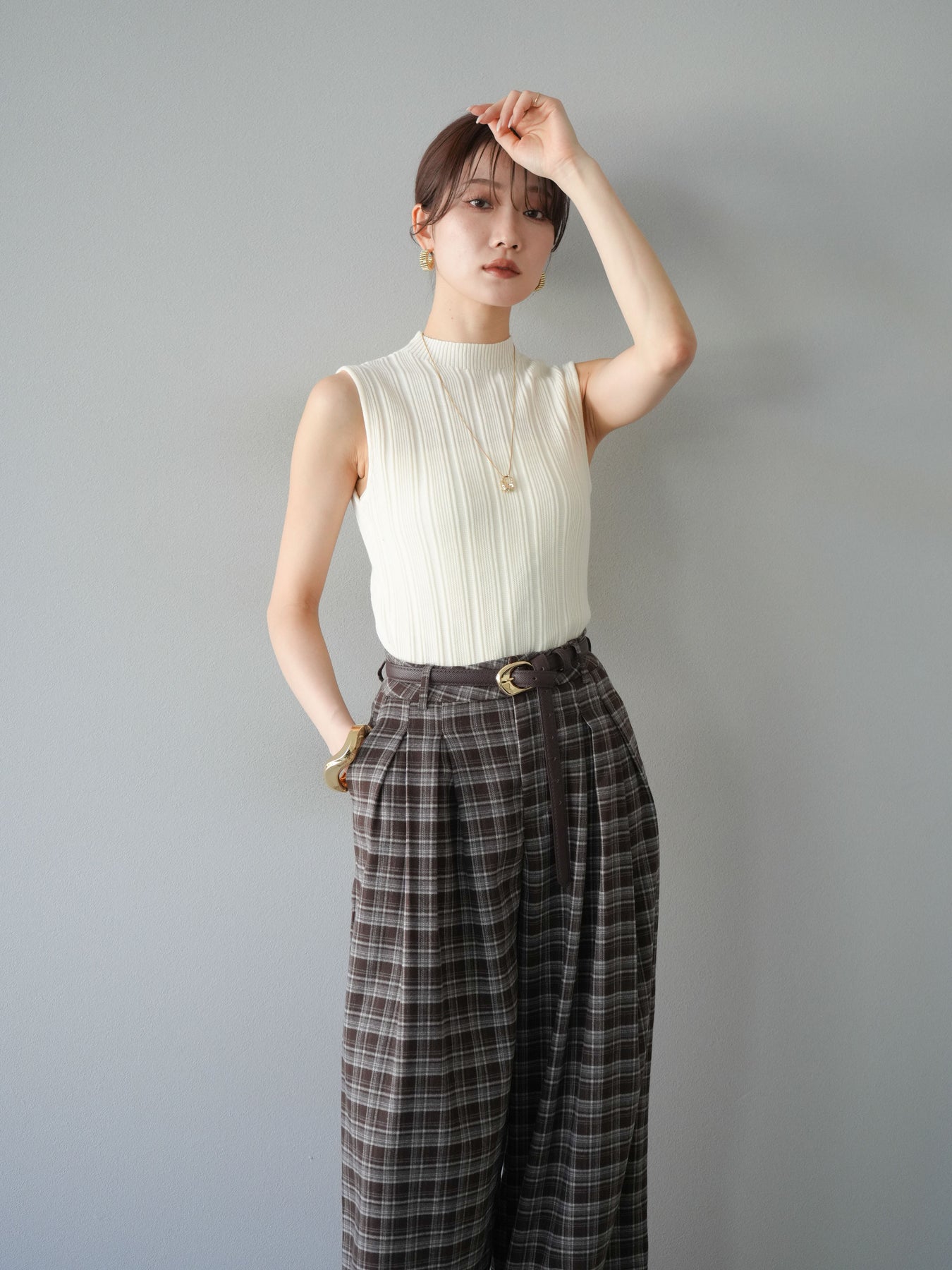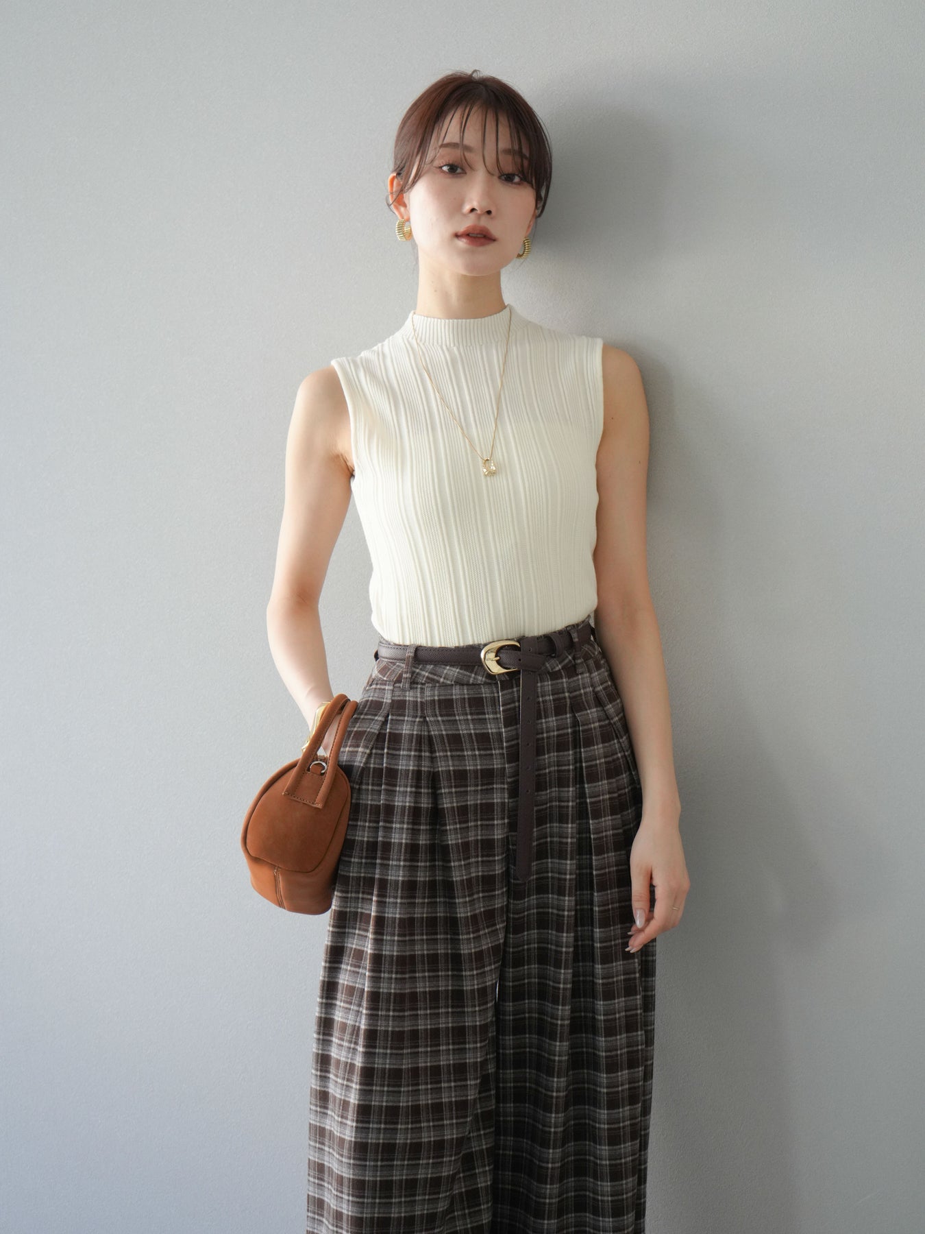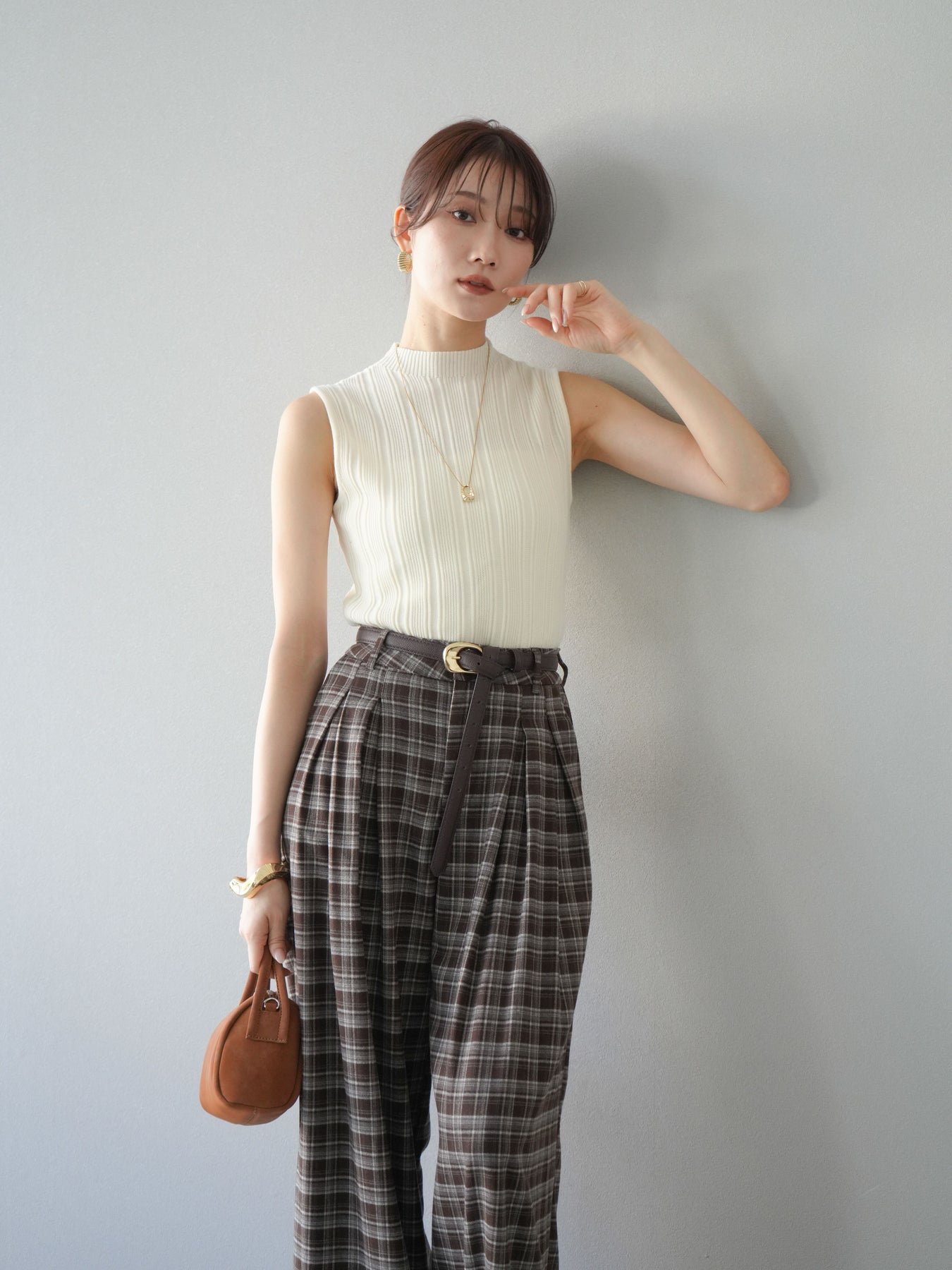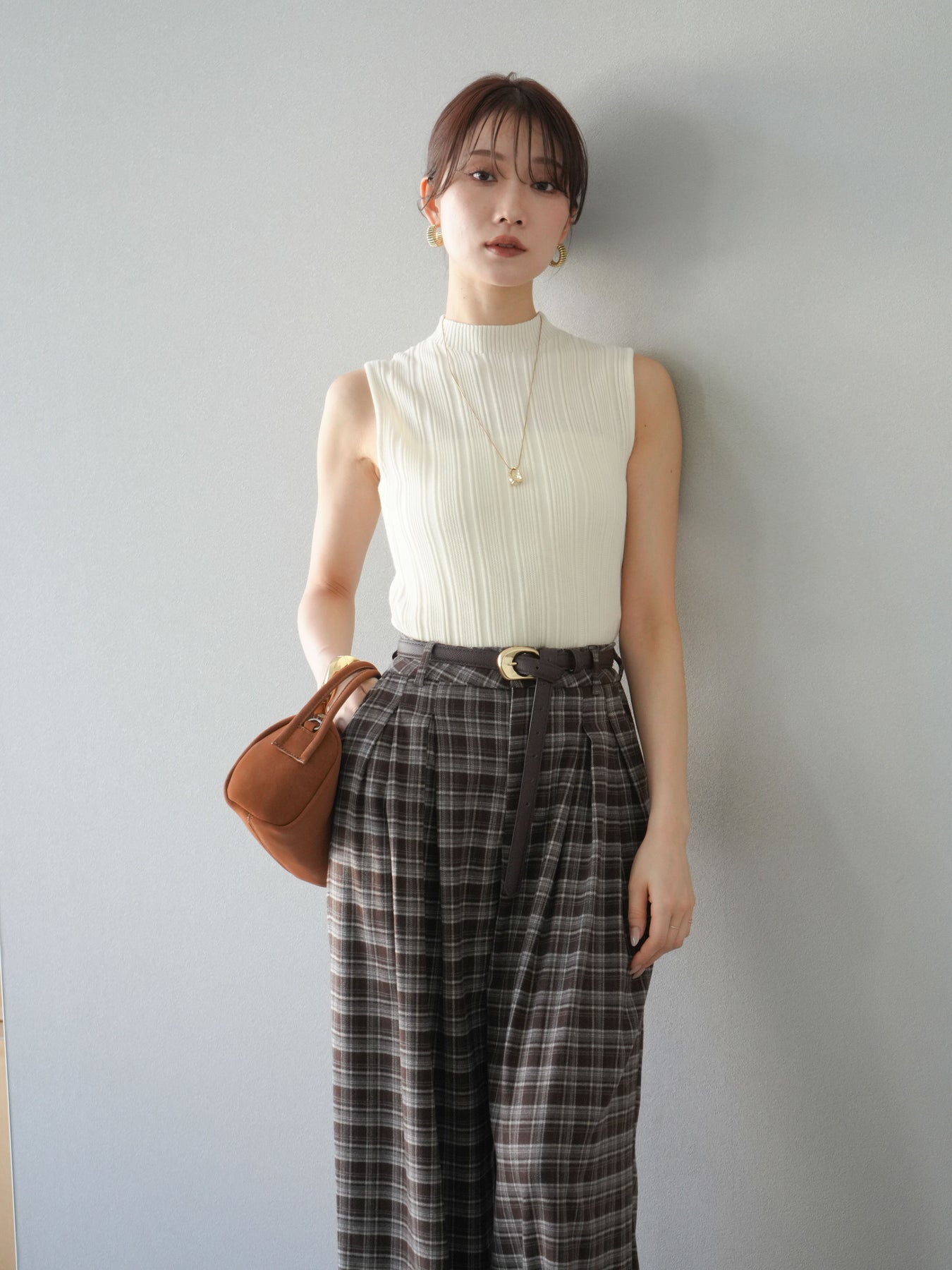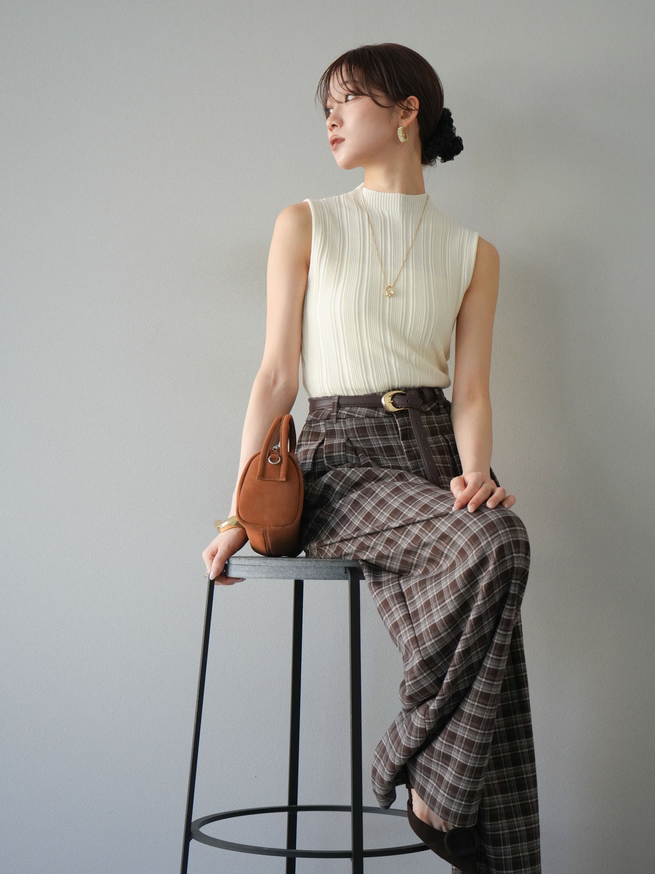 ランダムに編み立てたリブが縦のラインを強調し、すっきりとした印象を与えるスリーブレストップス。程よく身体にフィットするシルエットで、シンプルながらも洗練された雰囲気を演出します。1枚で着るのはもちろん、ジャケットやカーディガンのインナーとしても活躍し、ロングシーズン着回せる万能アイテム。きれいめからカジュアルまで幅広いスタイリングにマッチします。 ※ボトムス、キャミソール(インナー)以外の商品は一律でインナーは付属していません。