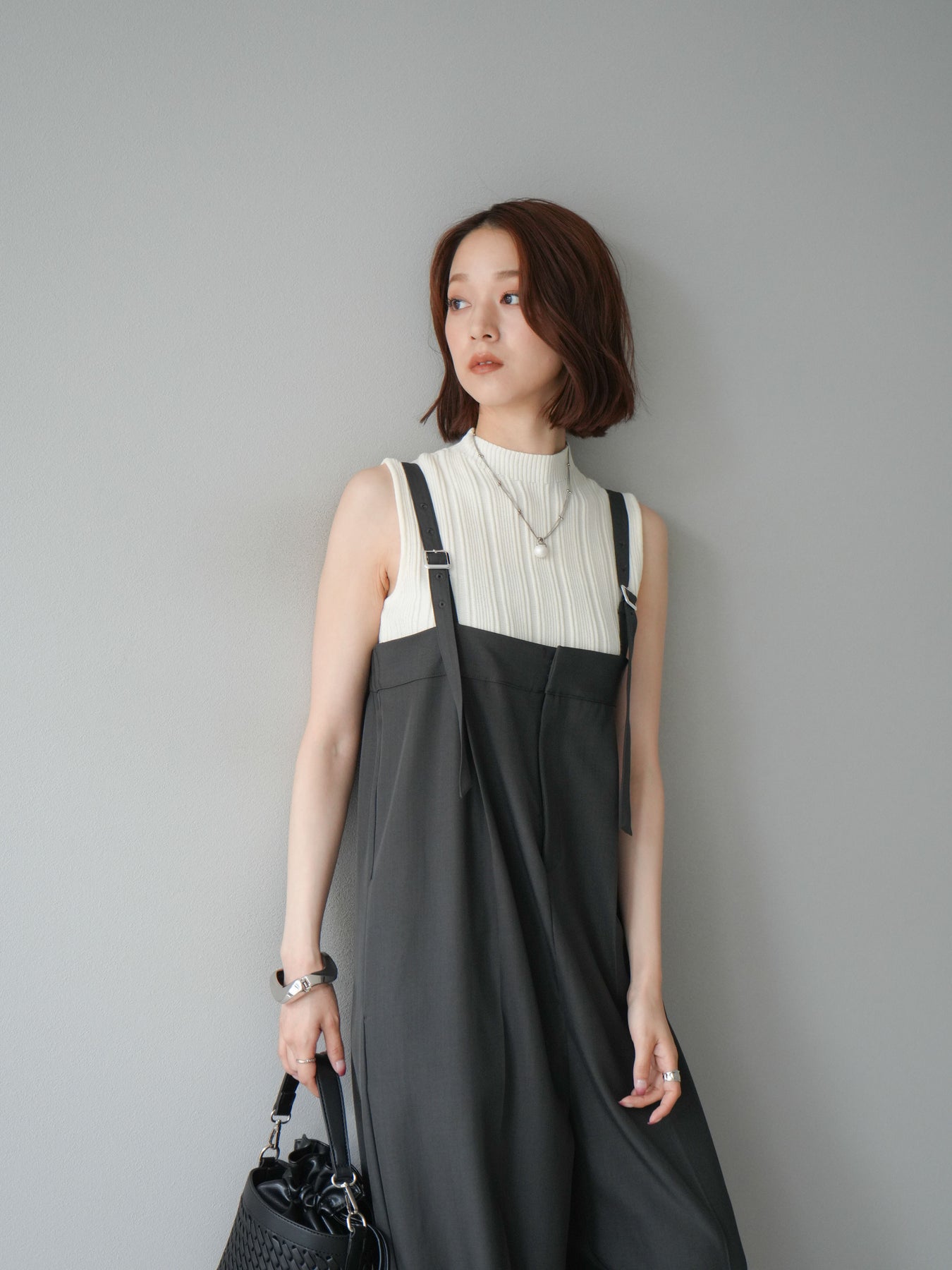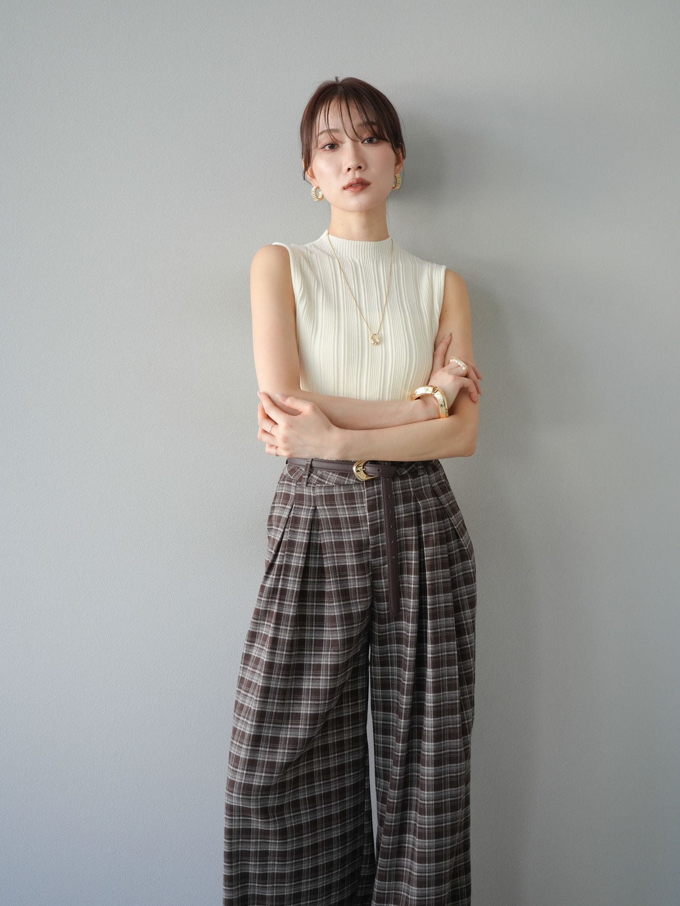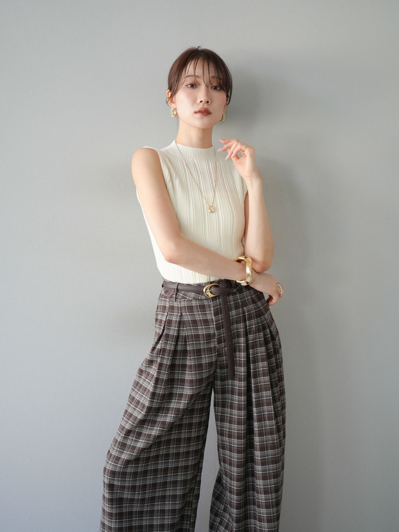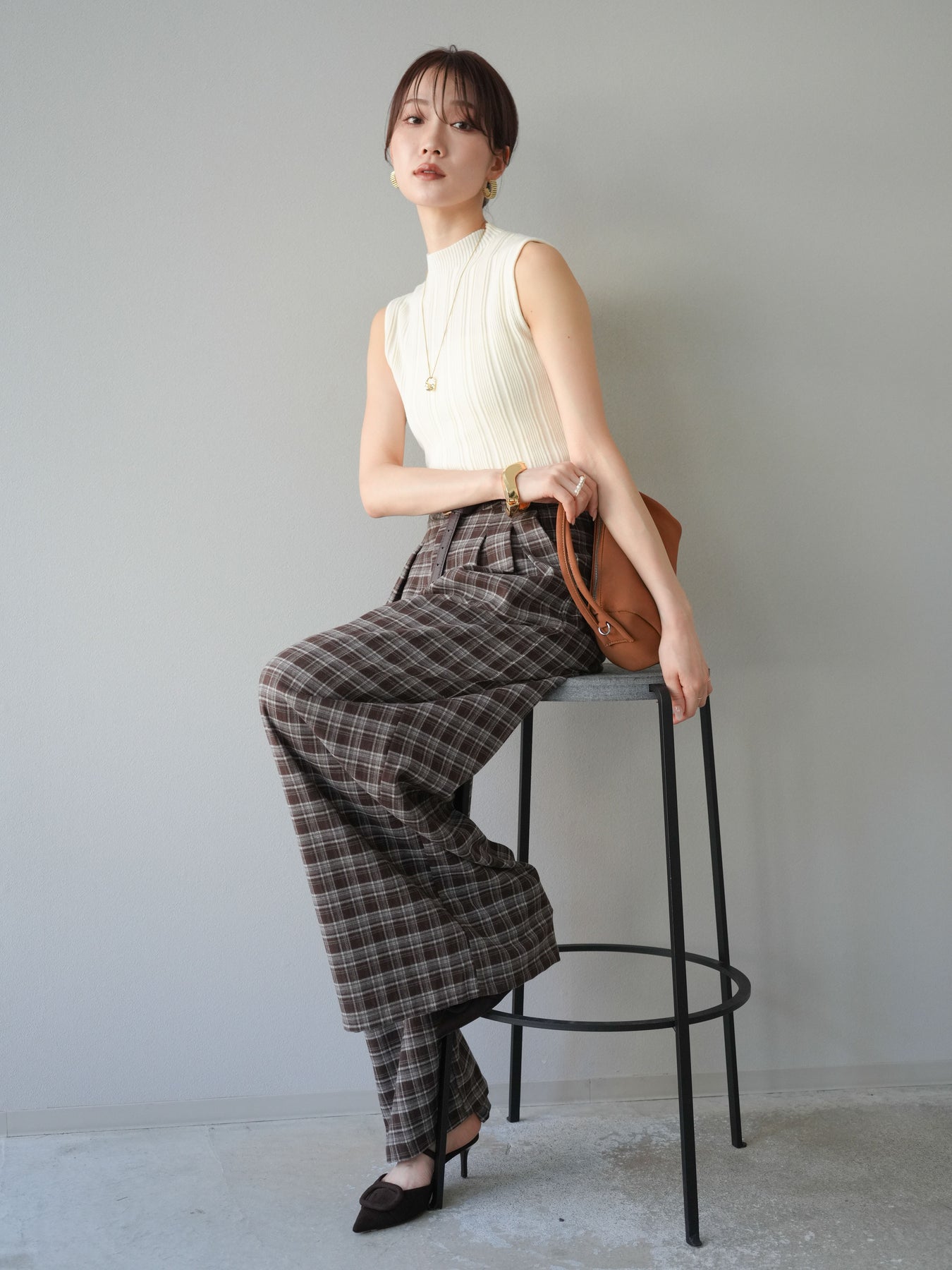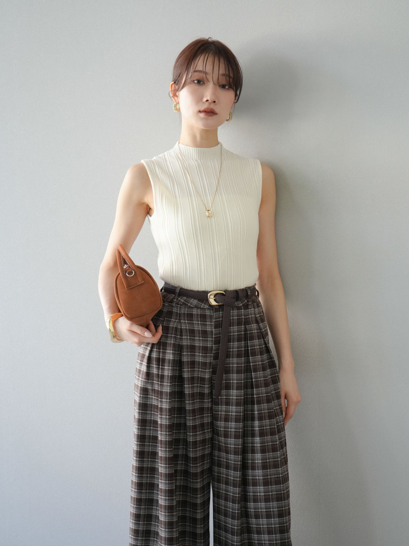 ランダムに編み立てたリブが縦のラインを強調し、すっきりとした印象を与えるスリーブレストップス。程よく身体にフィットするシルエットで、シンプルながらも洗練された雰囲気を演出します。1枚で着るのはもちろん、ジャケットやカーディガンのインナーとしても活躍し、ロングシーズン着回せる万能アイテム。きれいめからカジュアルまで幅広いスタイリングにマッチします。 ※ボトムス、キャミソール(インナー)以外の商品は一律でインナーは付属していません。