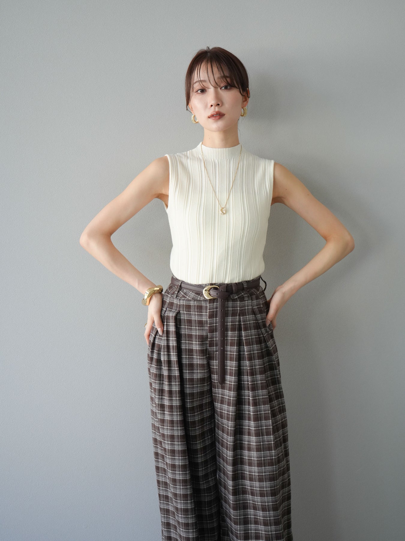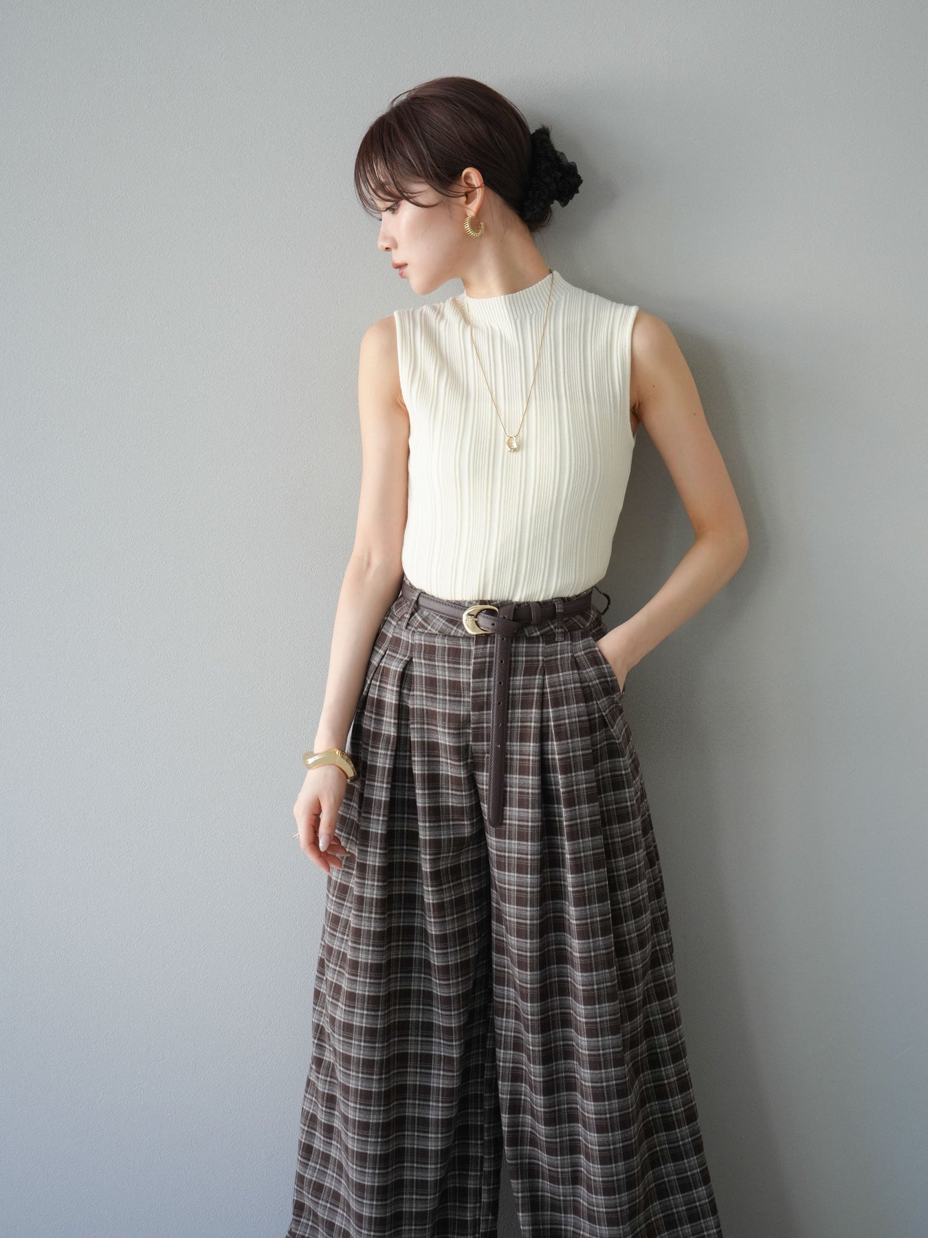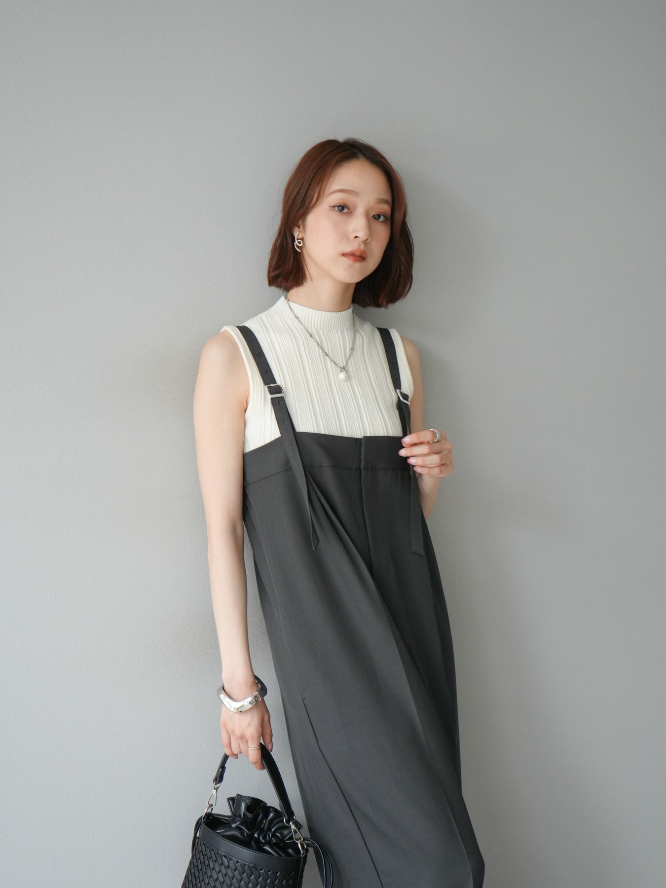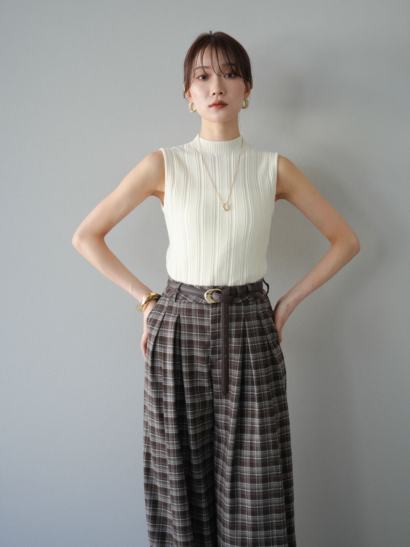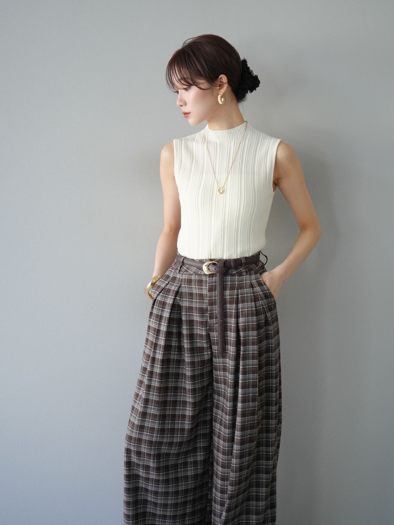 ランダムに編み立てたリブが縦のラインを強調し、すっきりとした印象を与えるスリーブレストップス。程よく身体にフィットするシルエットで、シンプルながらも洗練された雰囲気を演出します。1枚で着るのはもちろん、ジャケットやカーディガンのインナーとしても活躍し、ロングシーズン着回せる万能アイテム。きれいめからカジュアルまで幅広いスタイリングにマッチします。 ※ボトムス、キャミソール(インナー)以外の商品は一律でインナーは付属していません。