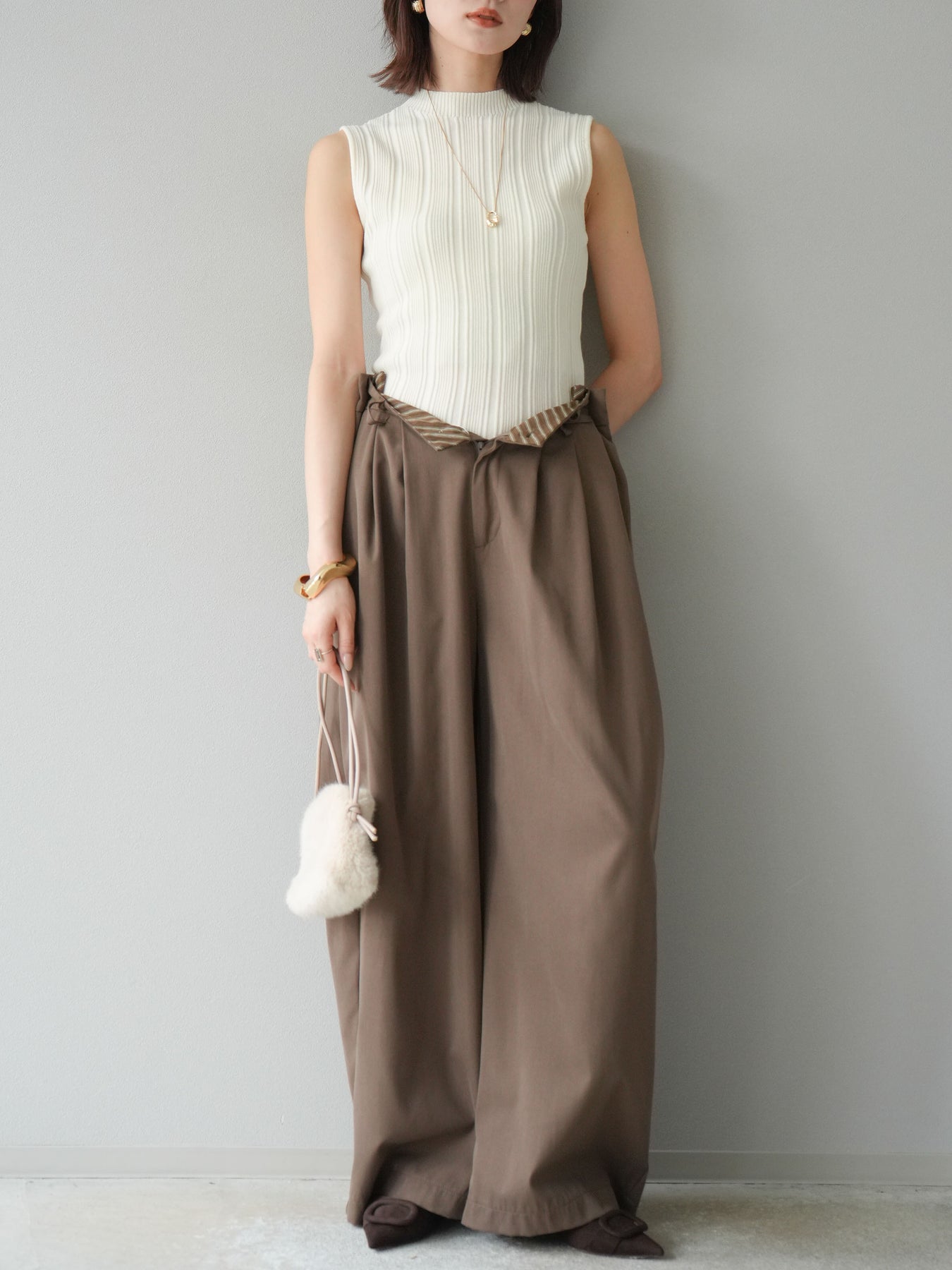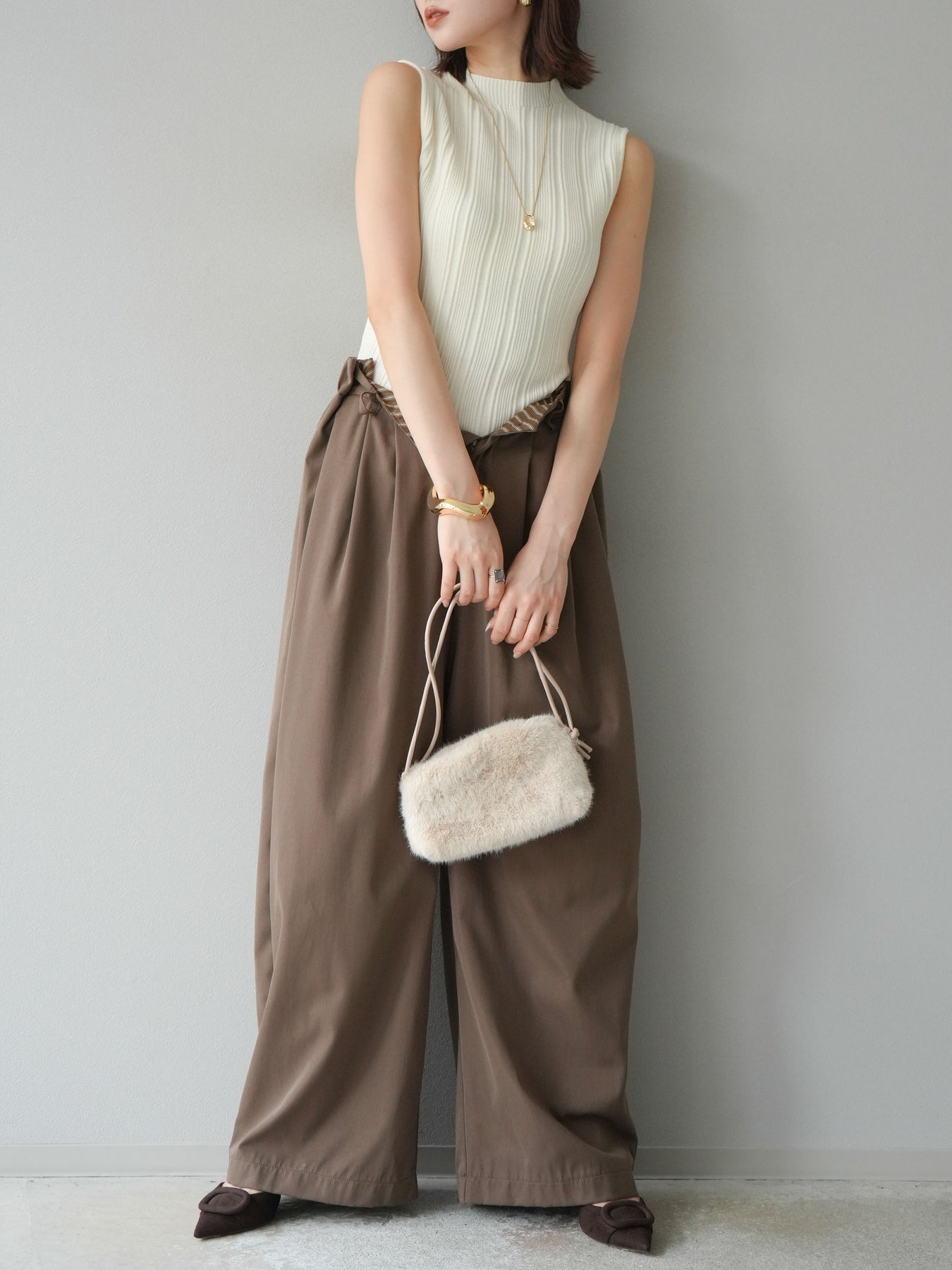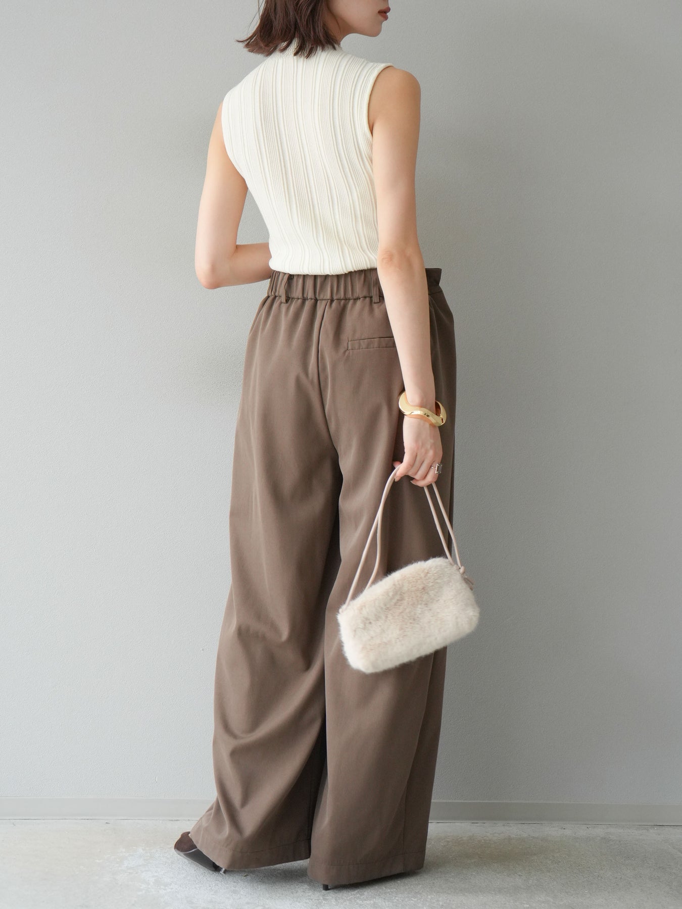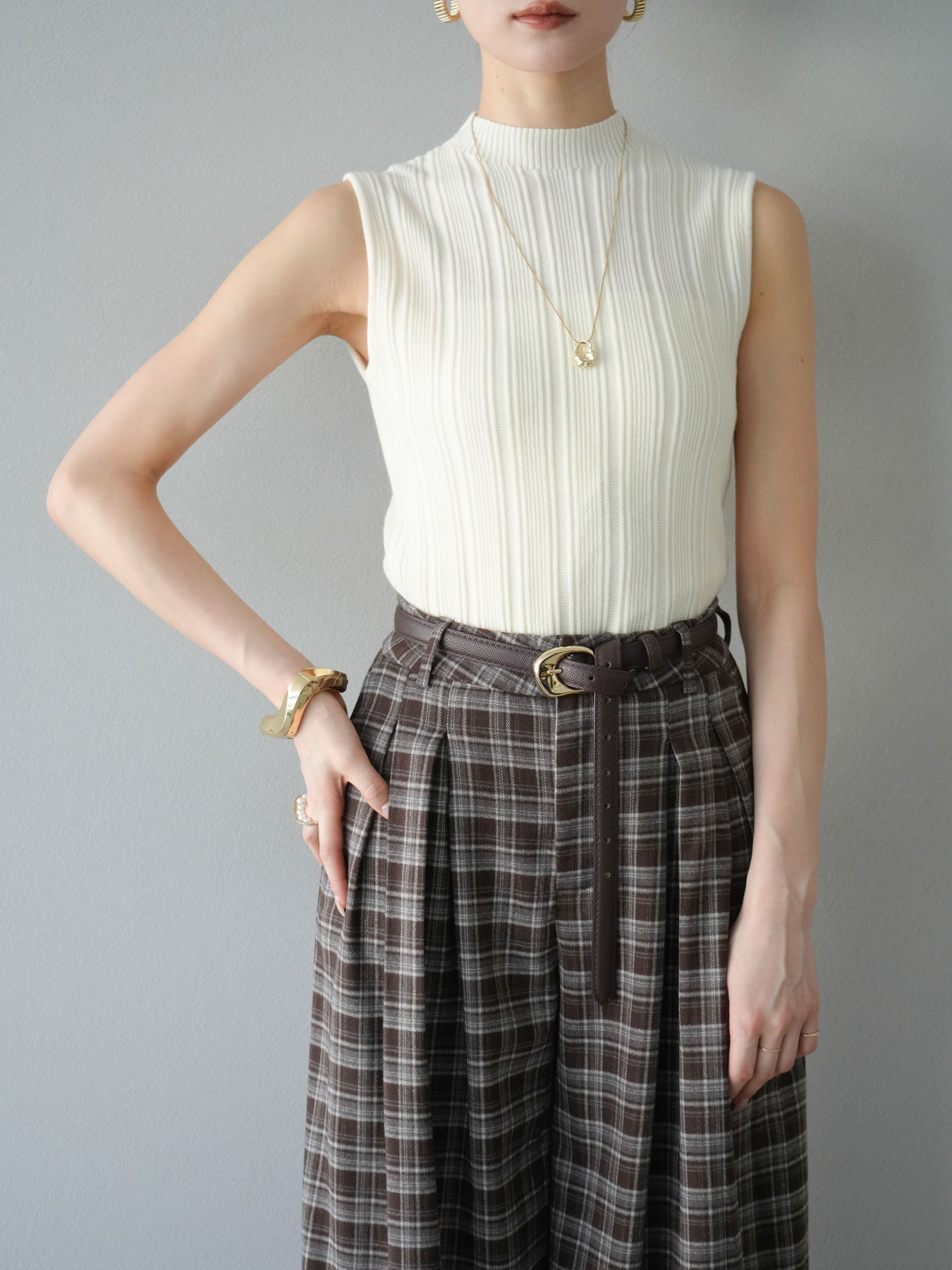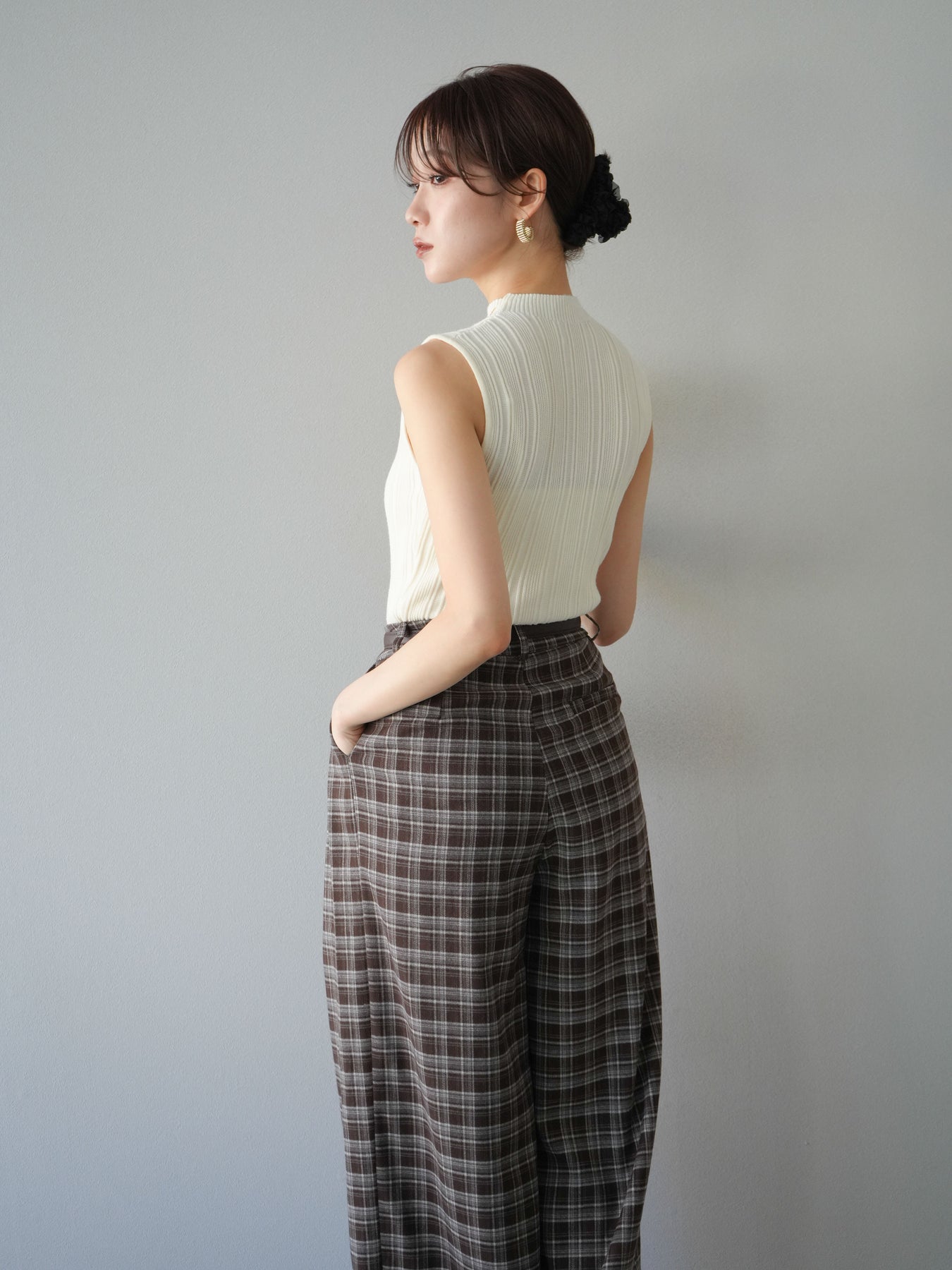 ランダムに編み立てたリブが縦のラインを強調し、すっきりとした印象を与えるスリーブレストップス。程よく身体にフィットするシルエットで、シンプルながらも洗練された雰囲気を演出します。1枚で着るのはもちろん、ジャケットやカーディガンのインナーとしても活躍し、ロングシーズン着回せる万能アイテム。きれいめからカジュアルまで幅広いスタイリングにマッチします。 ※ボトムス、キャミソール(インナー)以外の商品は一律でインナーは付属していません。