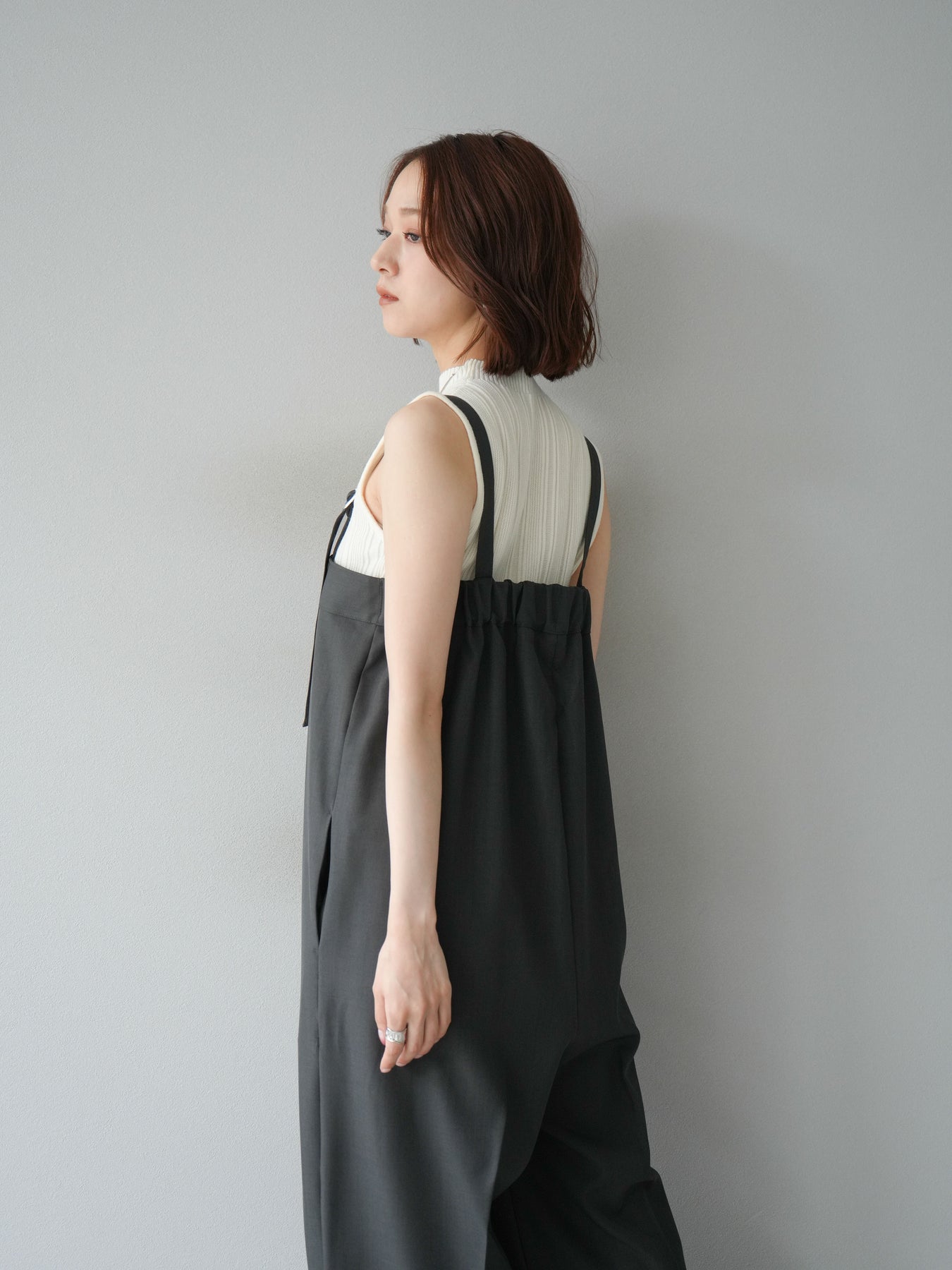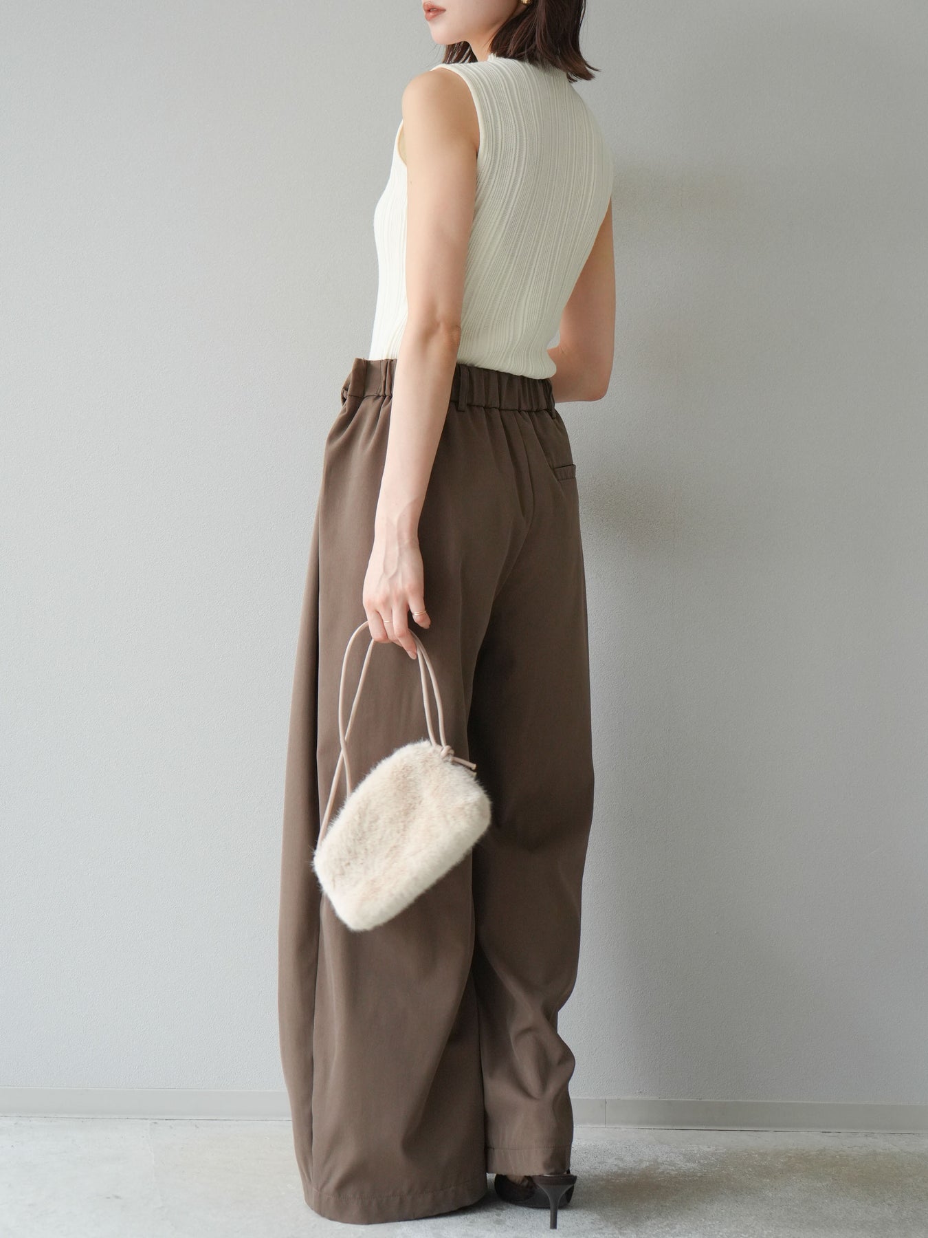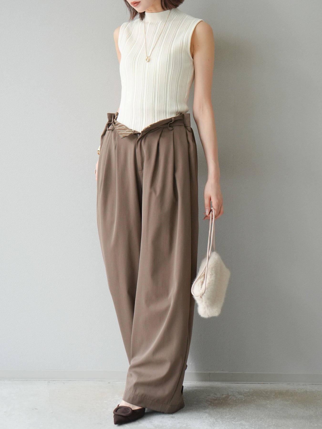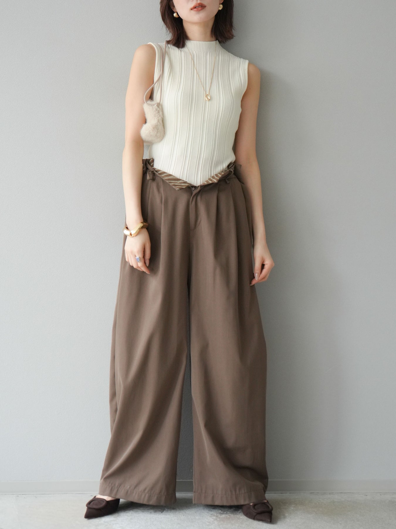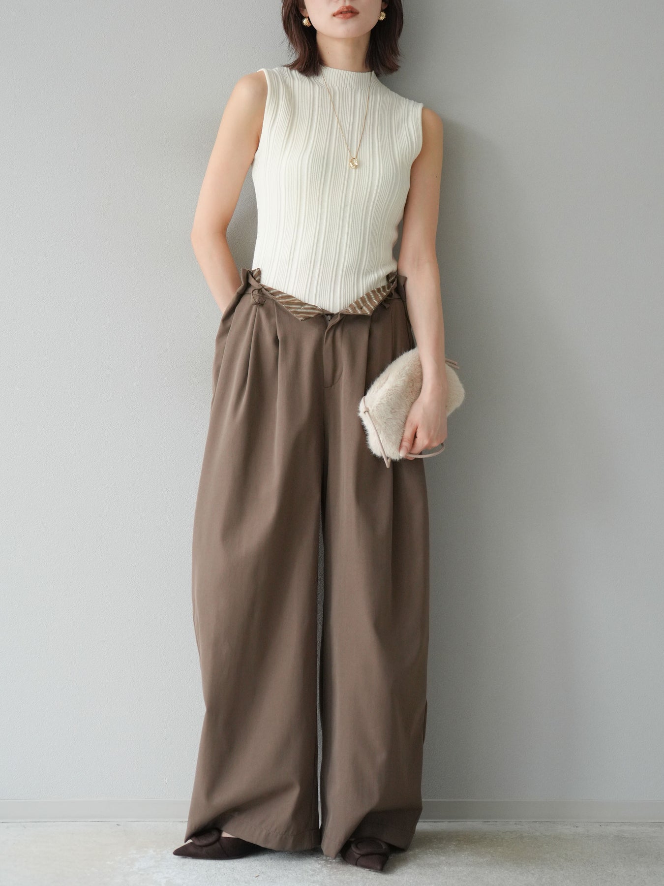 ランダムに編み立てたリブが縦のラインを強調し、すっきりとした印象を与えるスリーブレストップス。程よく身体にフィットするシルエットで、シンプルながらも洗練された雰囲気を演出します。1枚で着るのはもちろん、ジャケットやカーディガンのインナーとしても活躍し、ロングシーズン着回せる万能アイテム。きれいめからカジュアルまで幅広いスタイリングにマッチします。 ※ボトムス、キャミソール(インナー)以外の商品は一律でインナーは付属していません。
