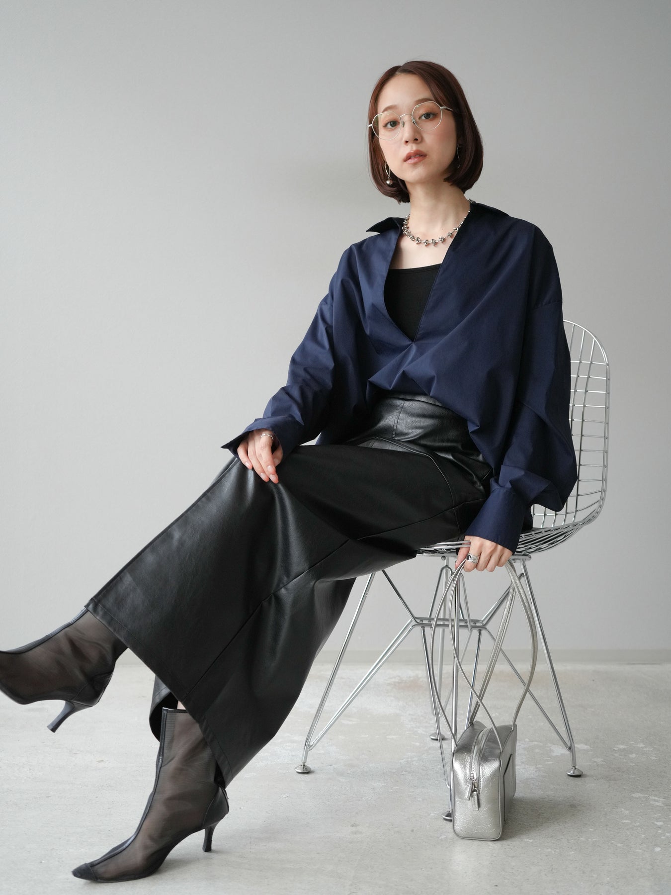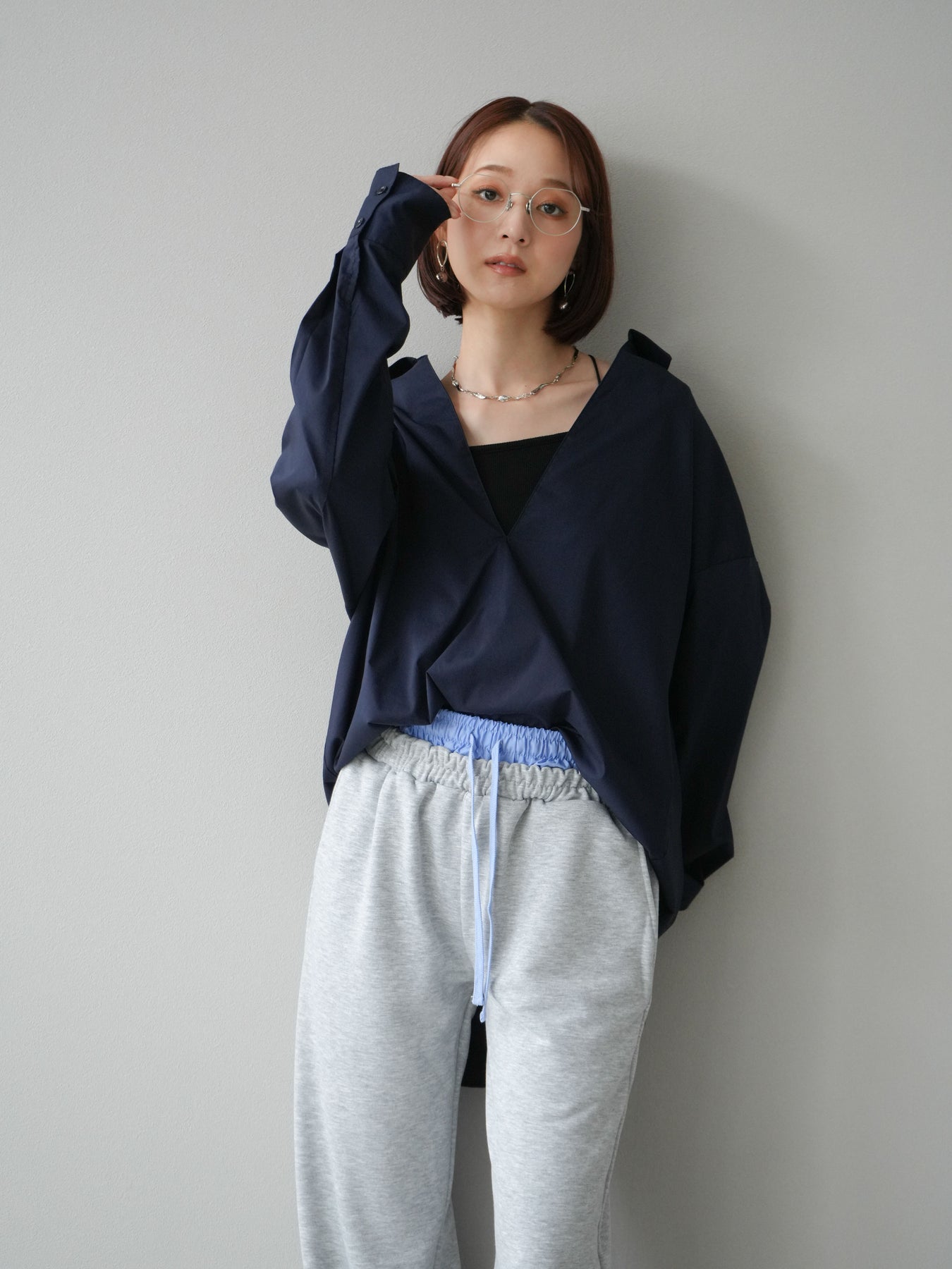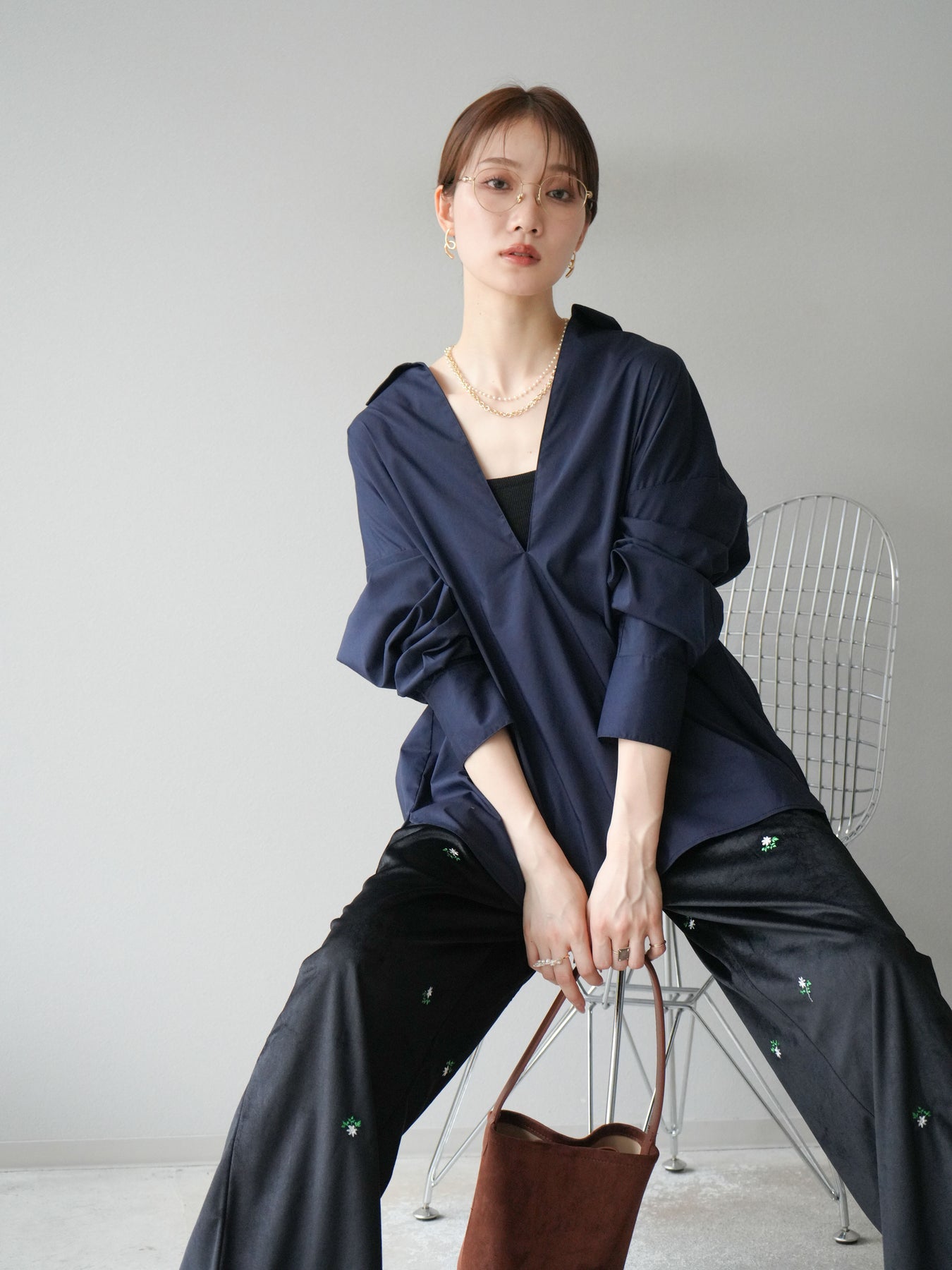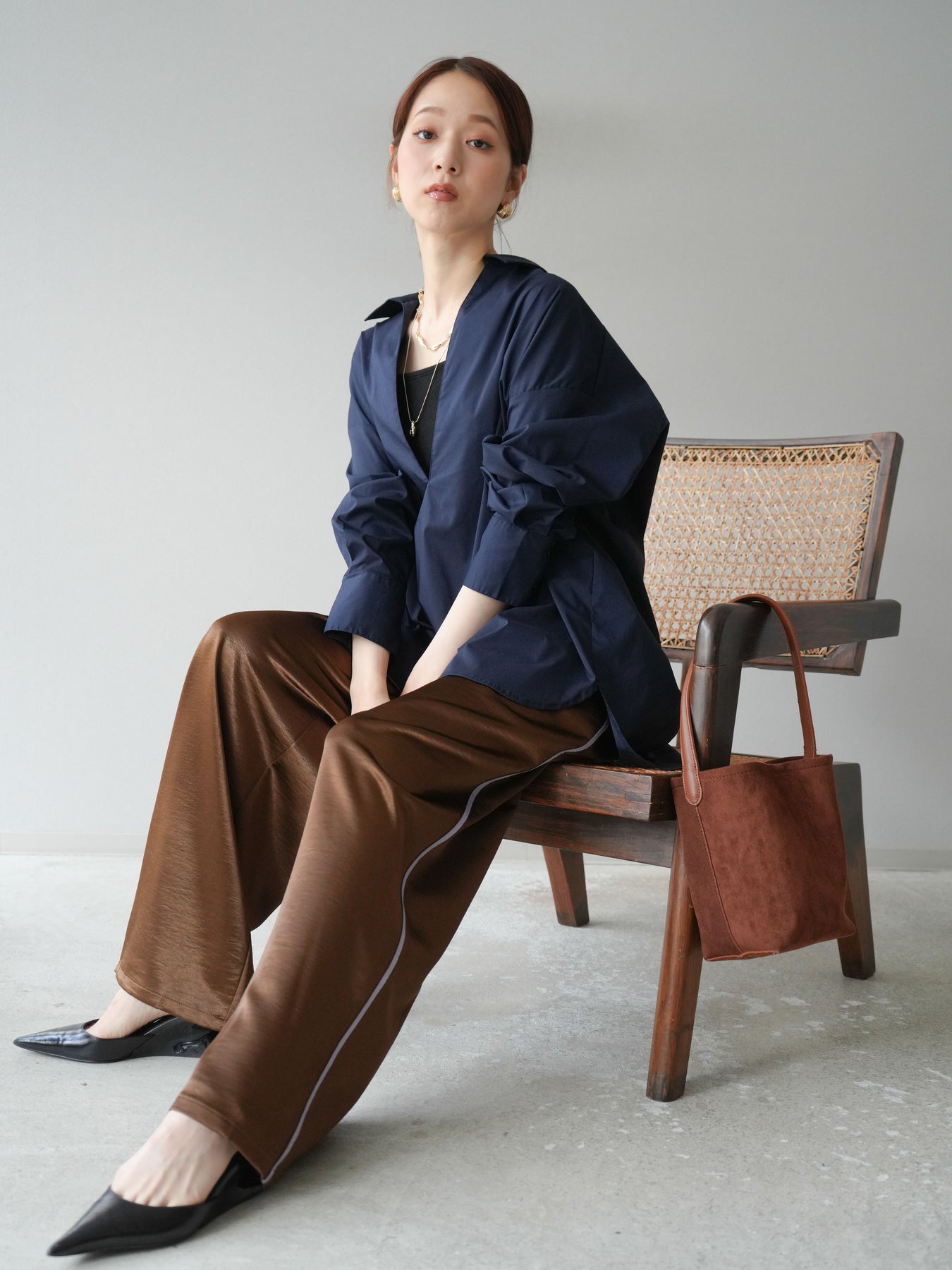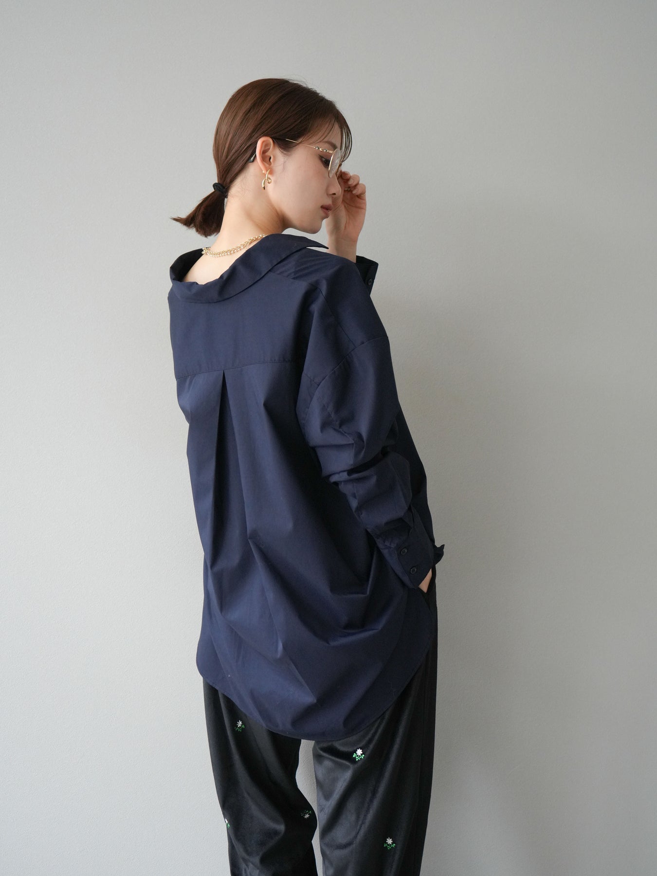ハリ感のあるブロード素材を使用したディープスキッパーブラウス。深めに開いたスキッパーネックが抜け感を演出し、シンプルながらも洗練された大人の雰囲気に仕上げています。ゆったりとしたオーバーシルエットがリラックス感を与えつつ、前後差のある着丈でスタイルアップ効果も期待できる一枚。パンツと合わせてシャープにまとめるのはもちろん、スカートと合わせれば女性らしいバランスに。インナーにキャミソールやシアートップスを重ねることで、表情豊かなレイヤードスタイルも楽しめます。 ※ボトムス、キャミソール(インナー)以外の商品は一律でインナーは付属していません。