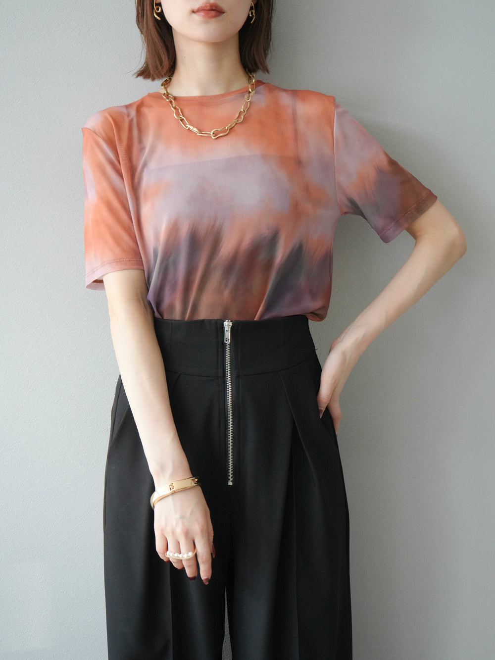 [予約]タイダイ柄シアーハーフトップス/オレンジ