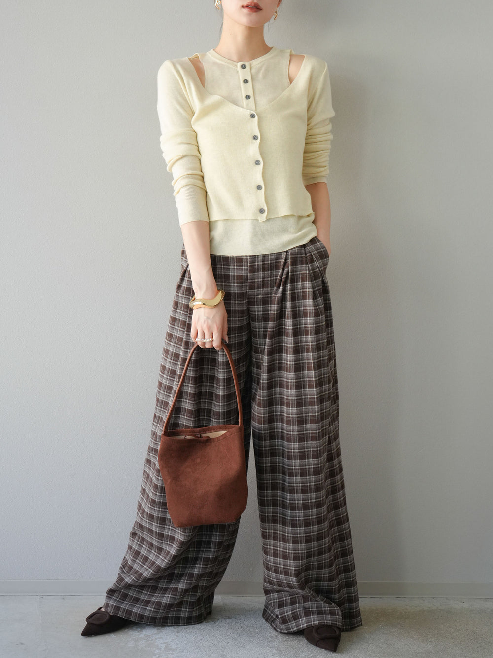 [予約]チェックタックフレアロングスカート/ ブラウン