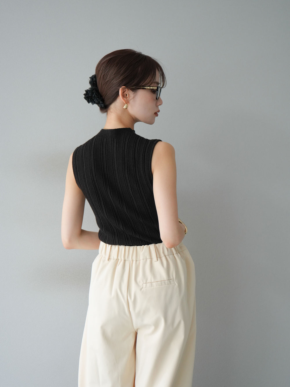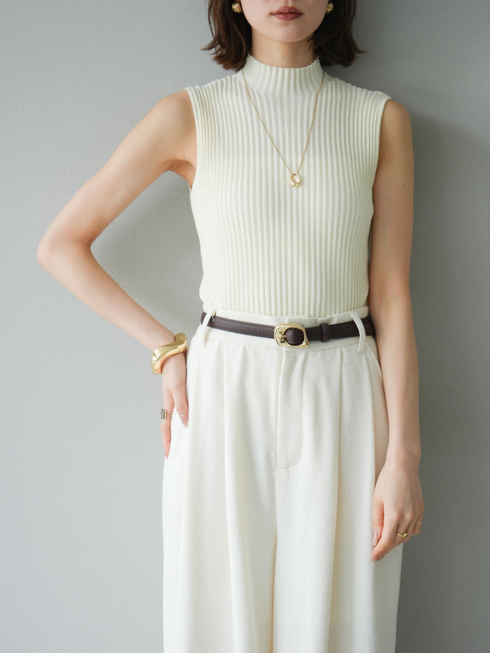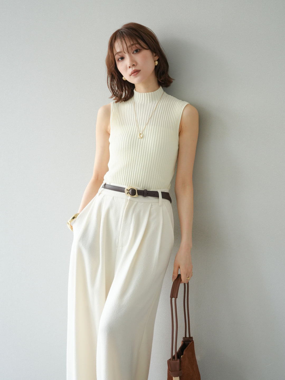 [予約]ボトルネックワッフル編みノースリーブニットトップス/オフホワイト