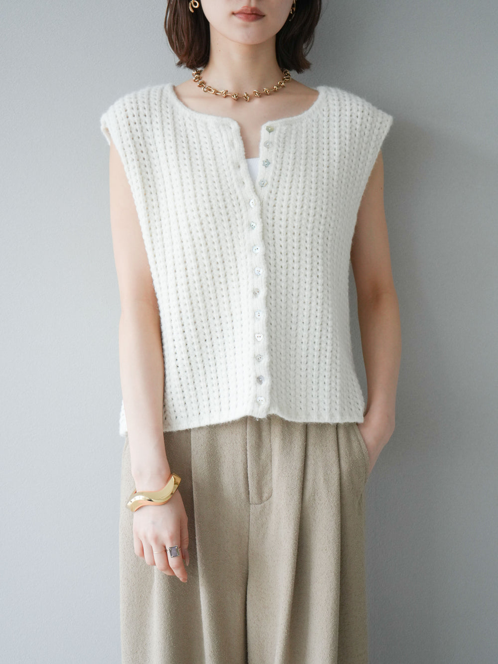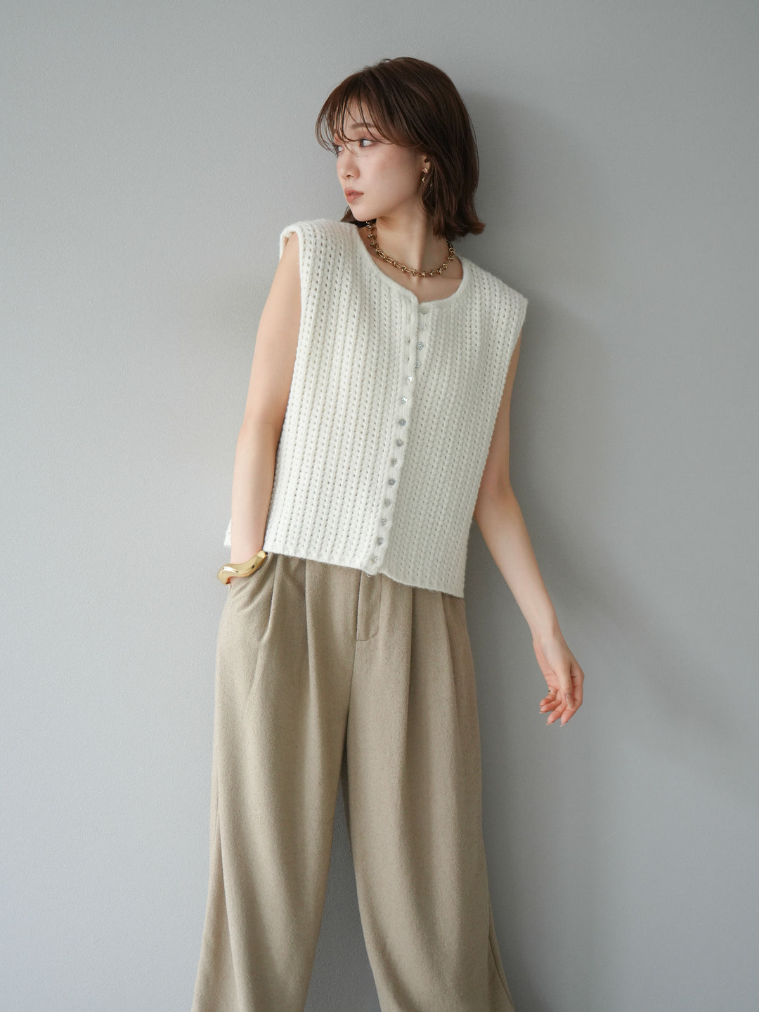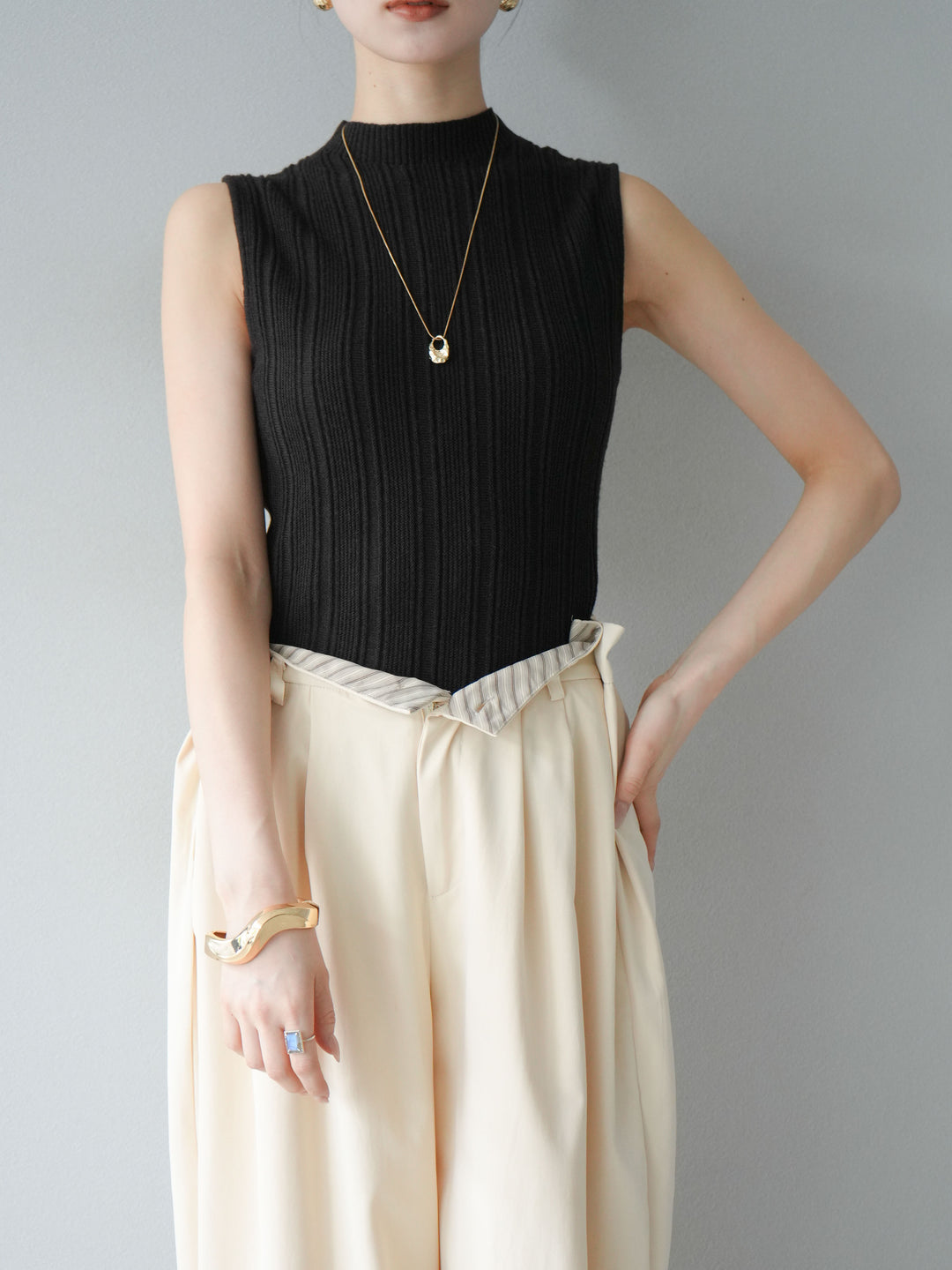 [予約]ボトルネックワッフル編みノースリーブニットトップス/オフホワイト