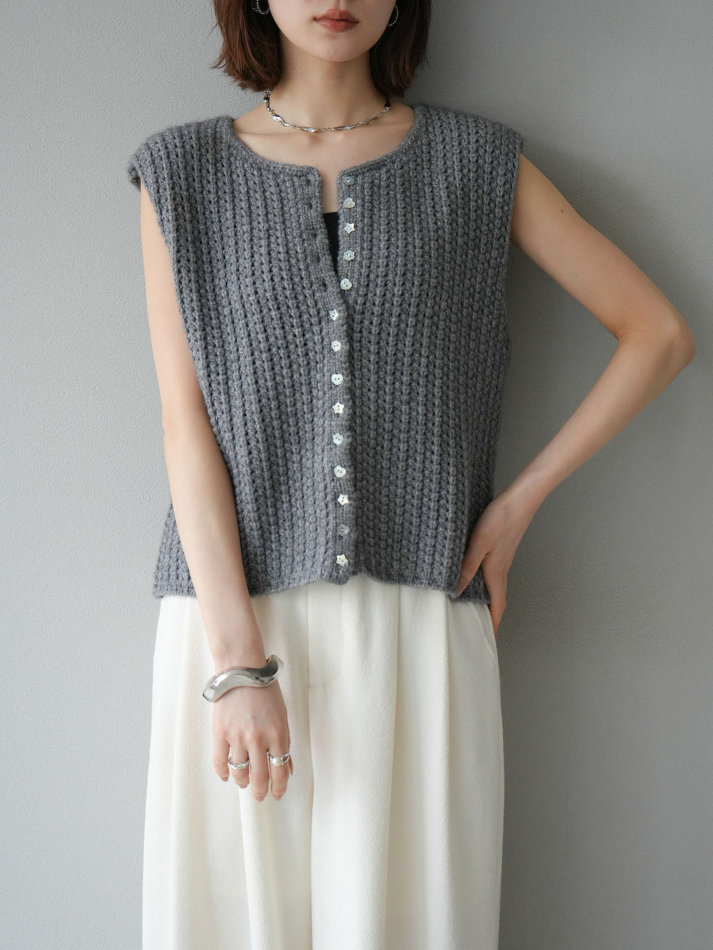 [予約]スリーブレスランダムリブニットトップス/グレー