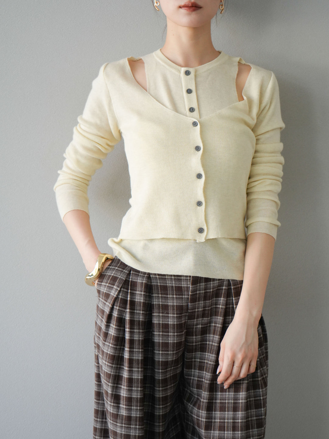[予約]レイヤードデザインニットカーディガン/アイボリー