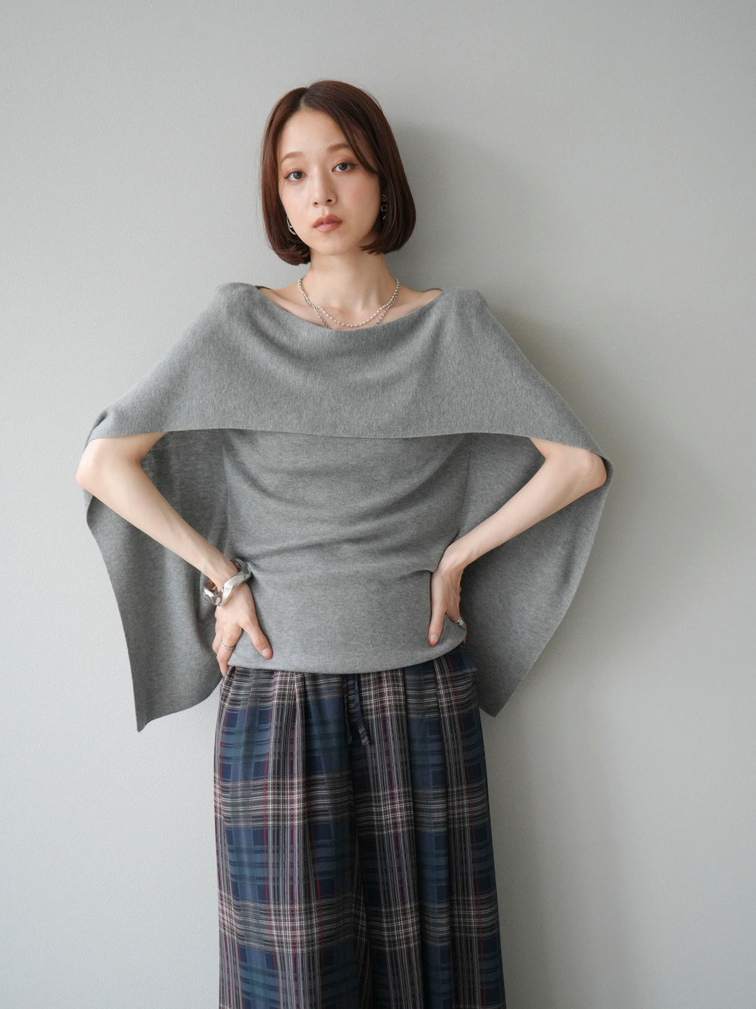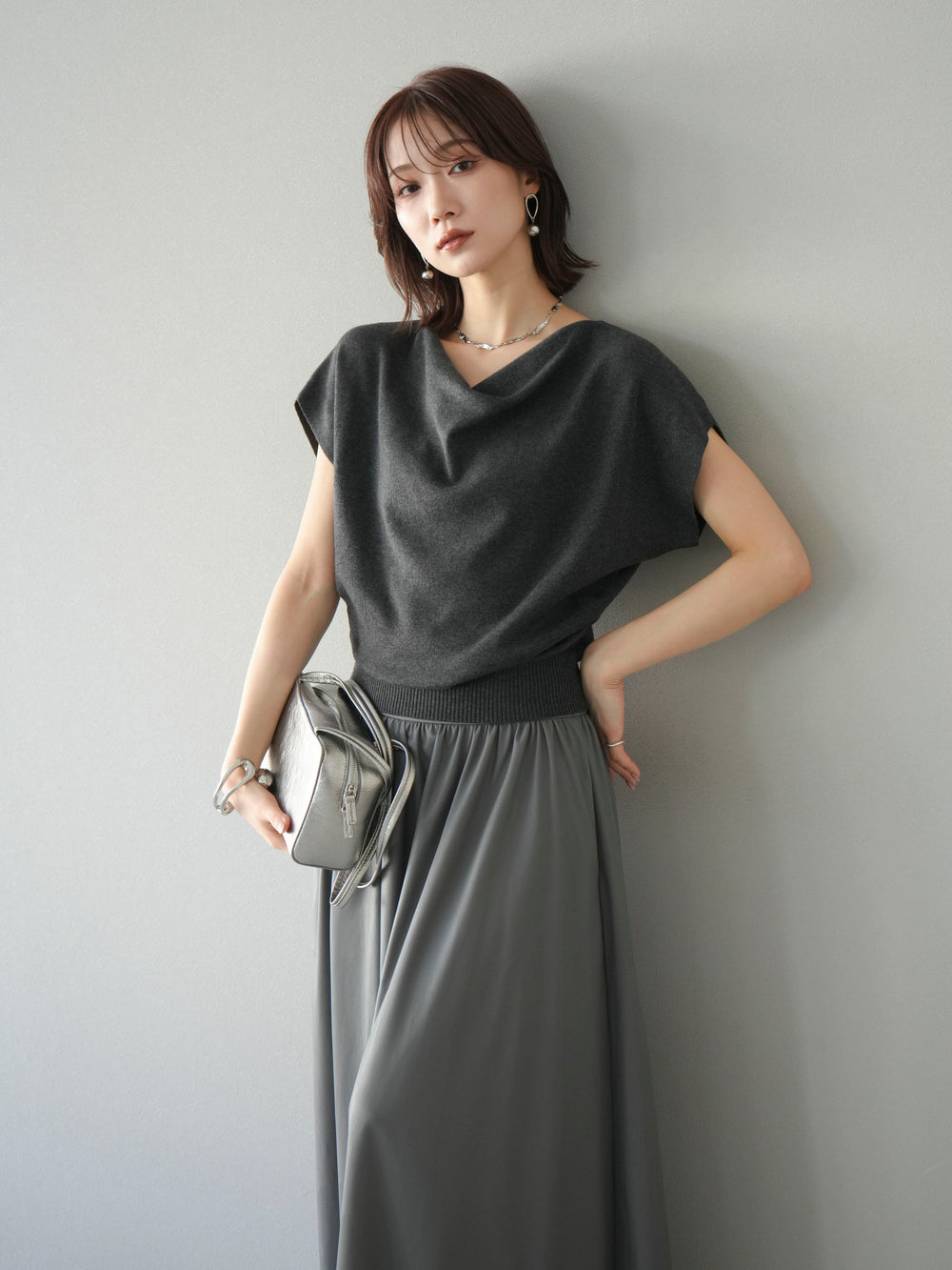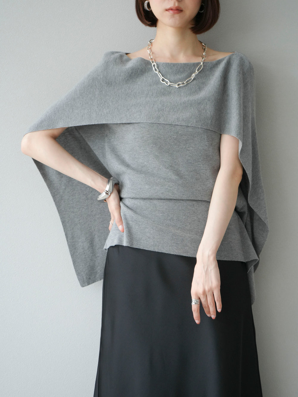 [予約]ドレープドルマンフレンチスリーブニットトップス/グレー