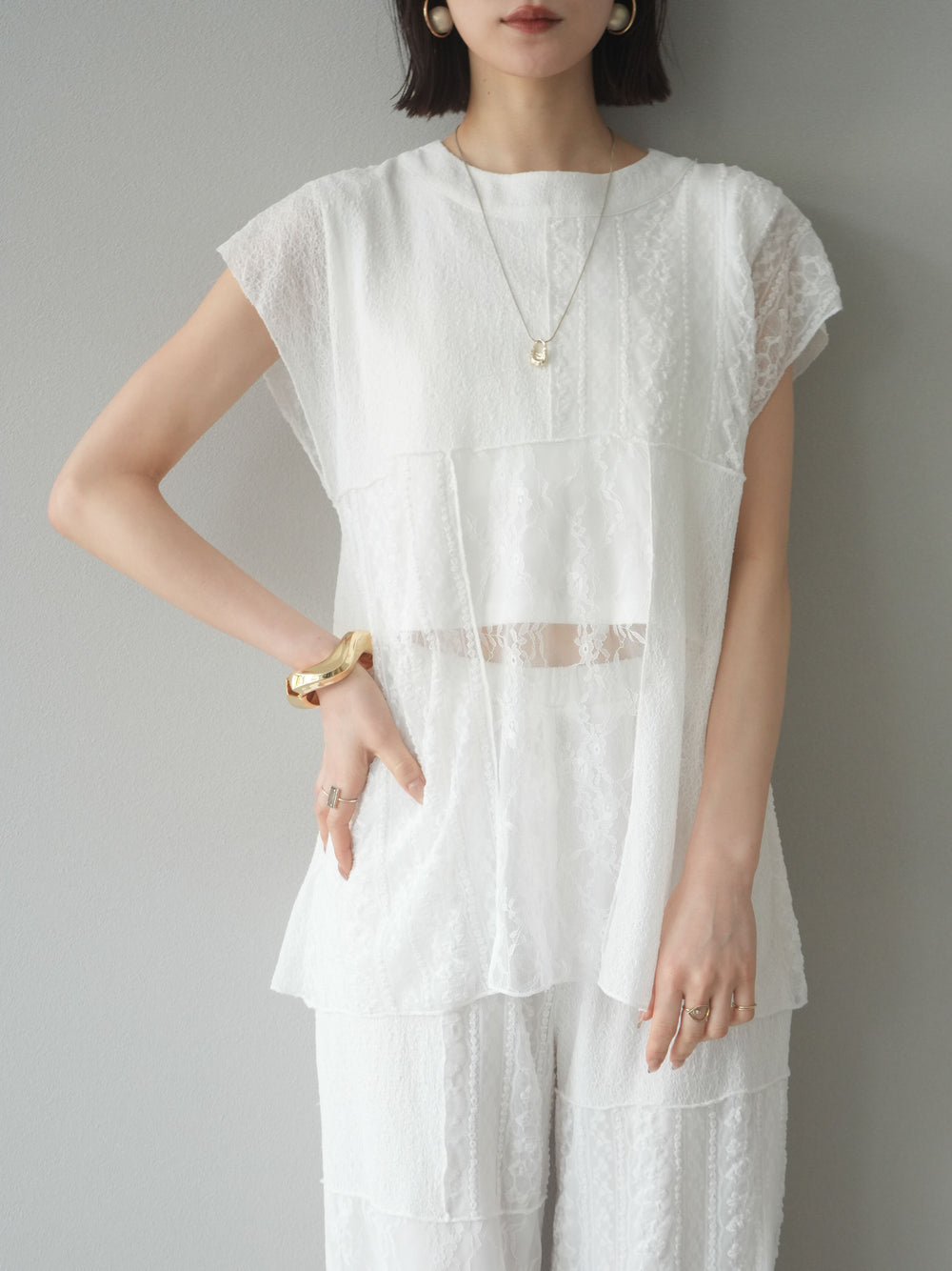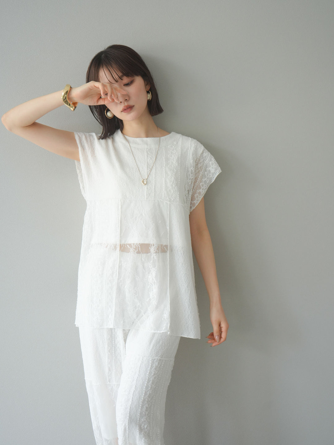 [預購] 花卉印花水洗褶飾上衣/象牙白
