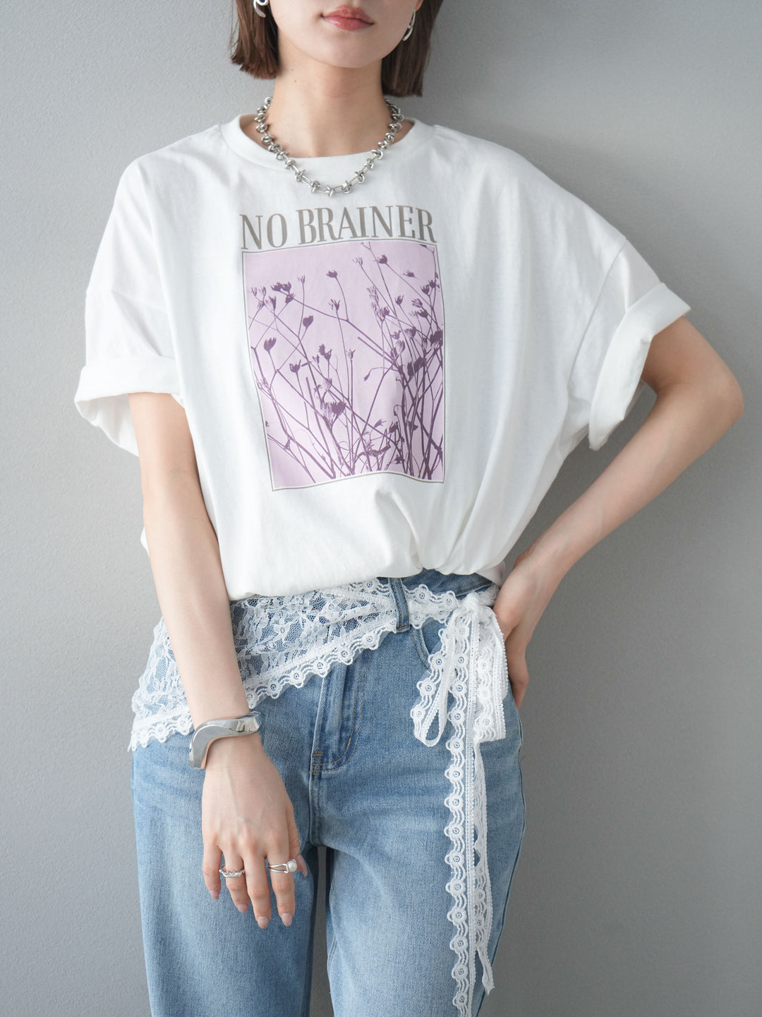 [予約]Vネックレースニットプルオーバー/gray