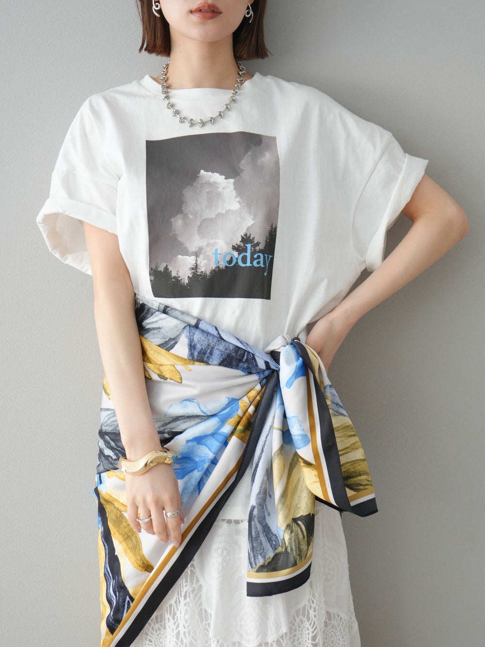 [予約]フロントツイストホールリブニットトップス/gray