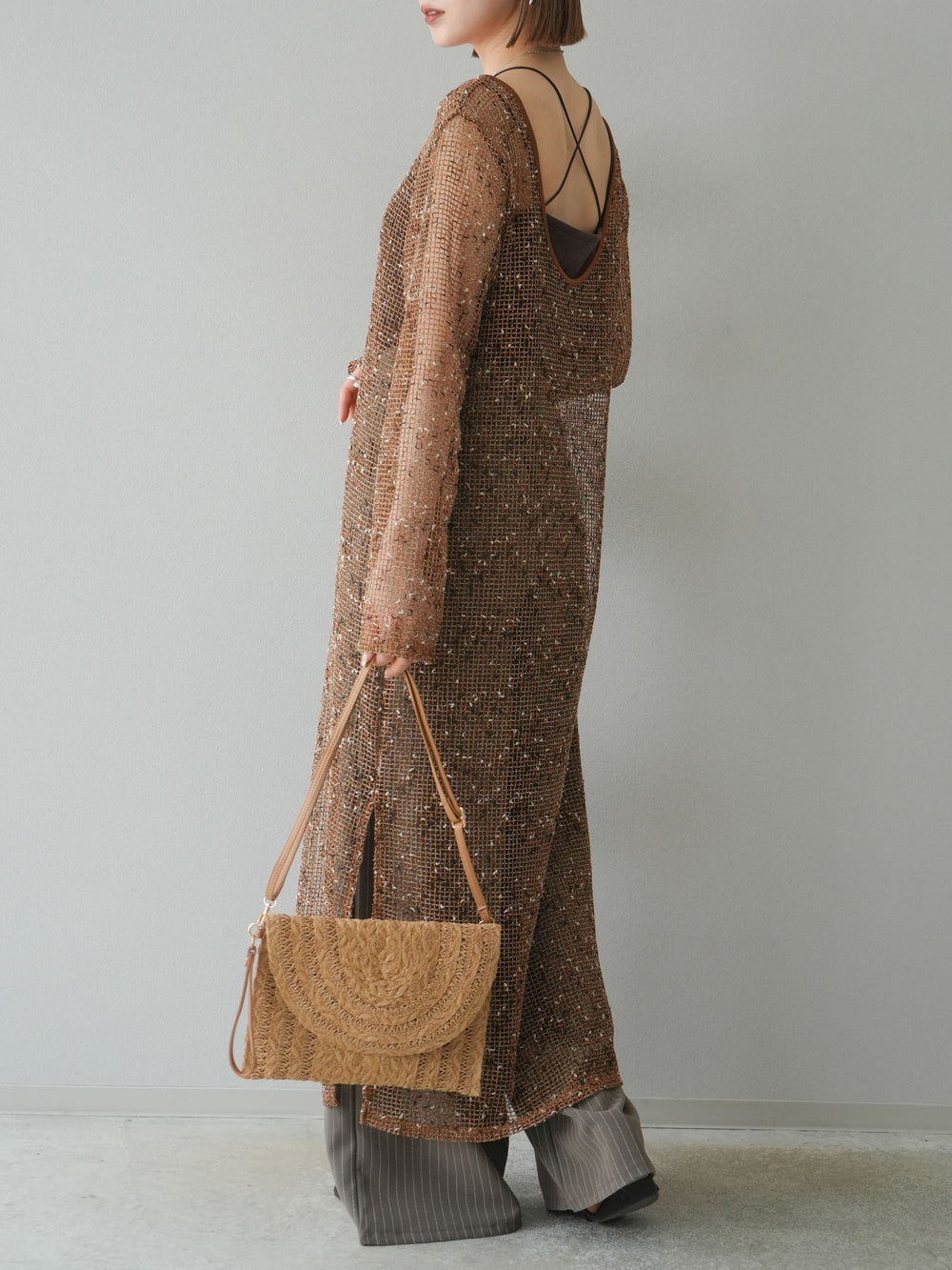 [予約]リブ襟ブークレZIPニットカーディガン/brown